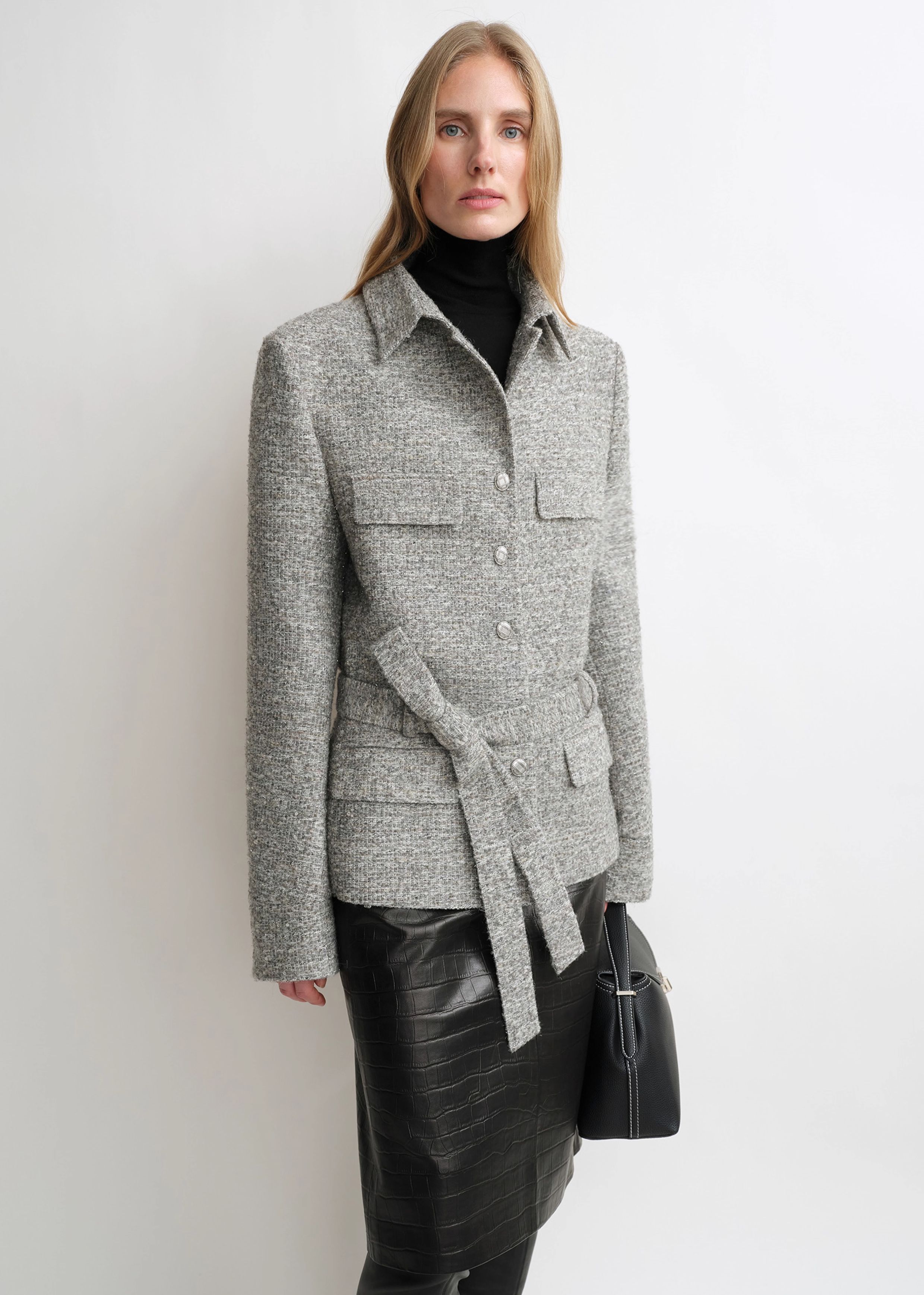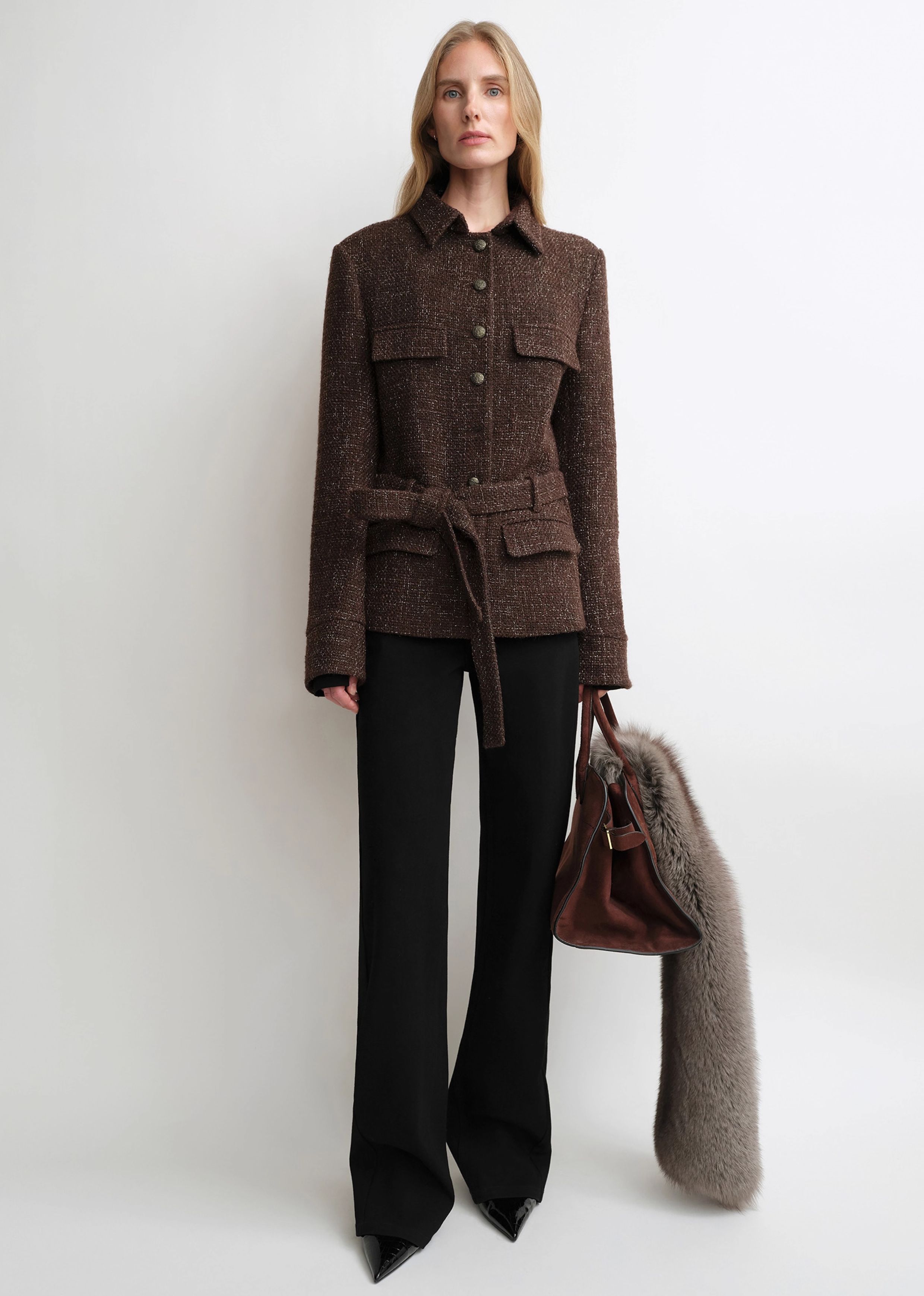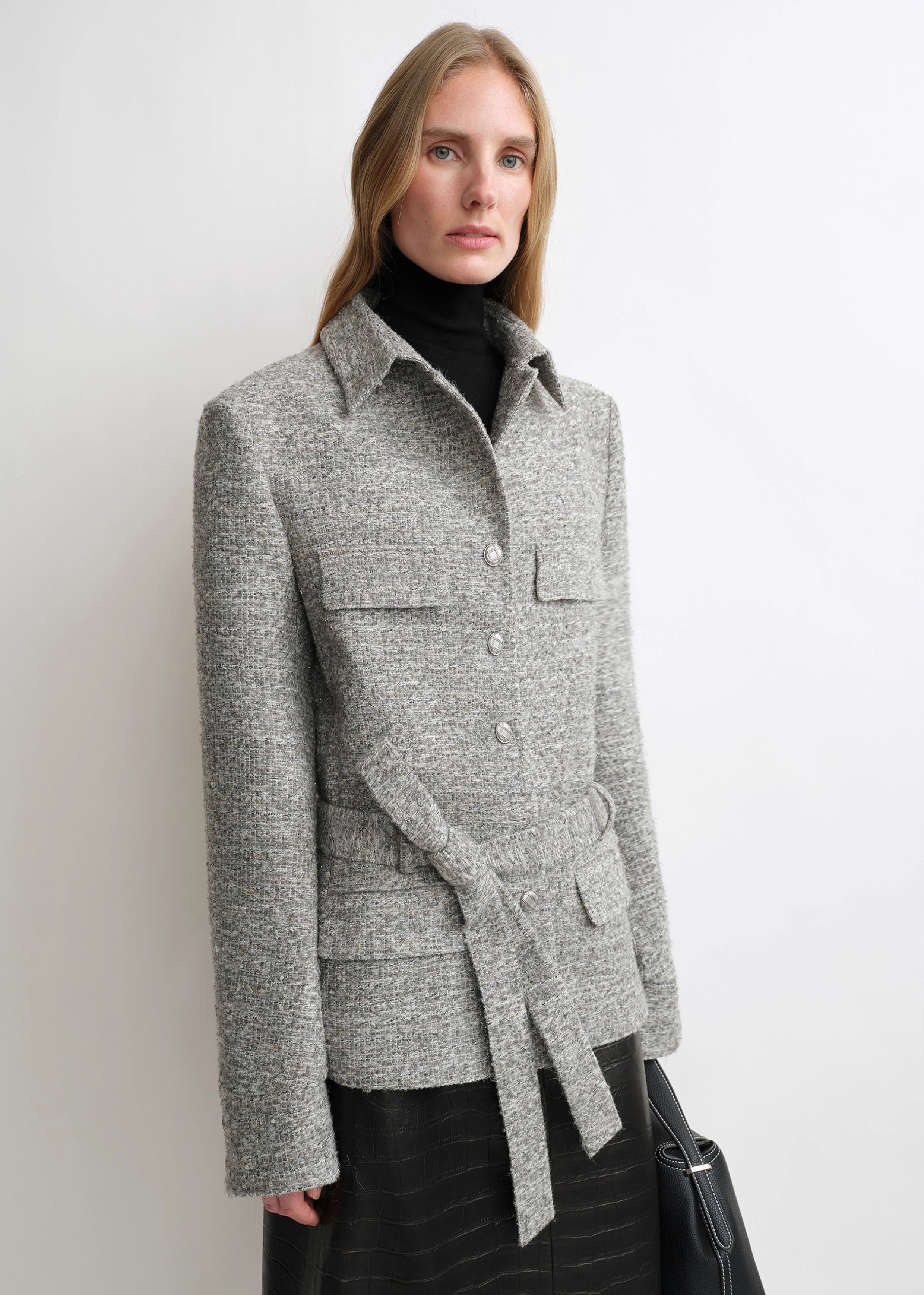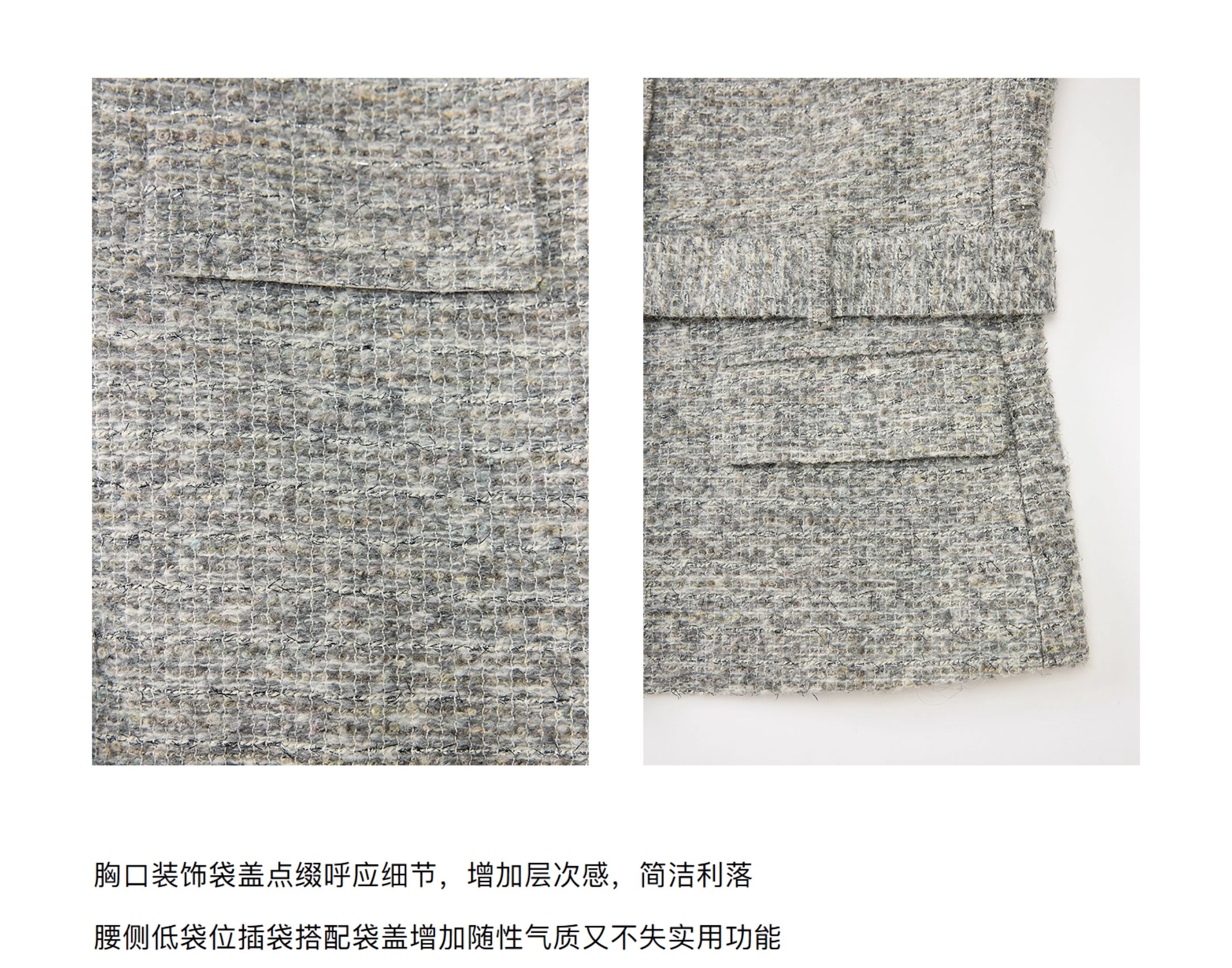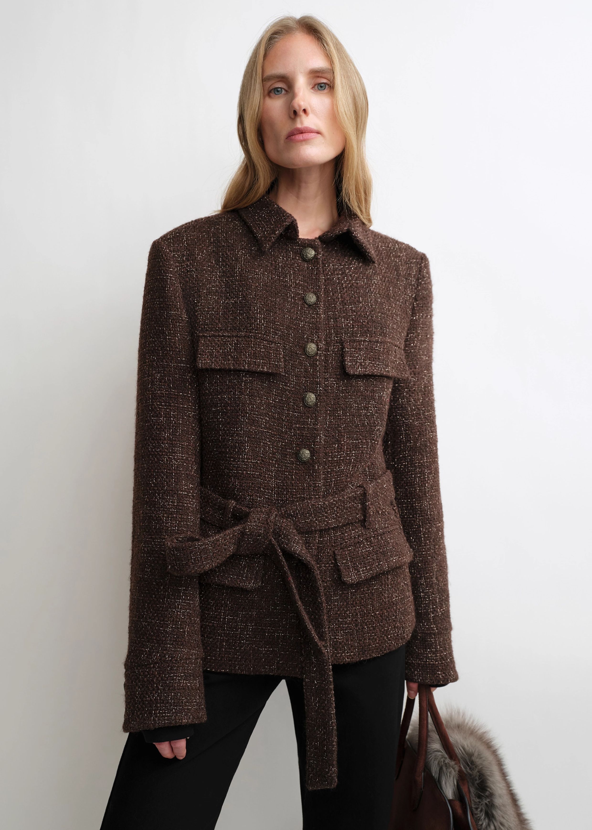 The Artm Waist-Cinching Shirt-Style Tweed Jacket with Wool and Belt, Autumn and Winter Short Coat for Women, New Model 25