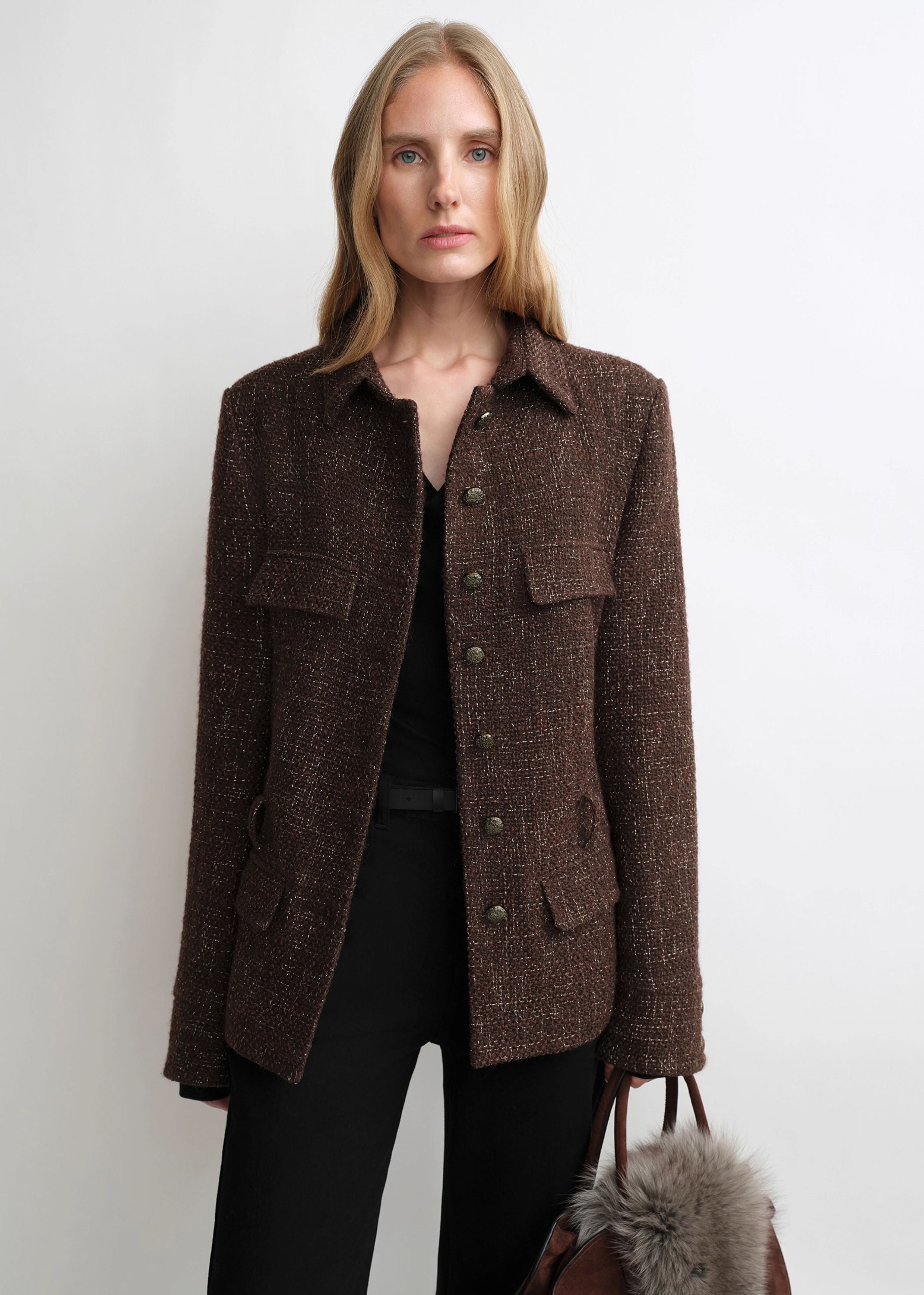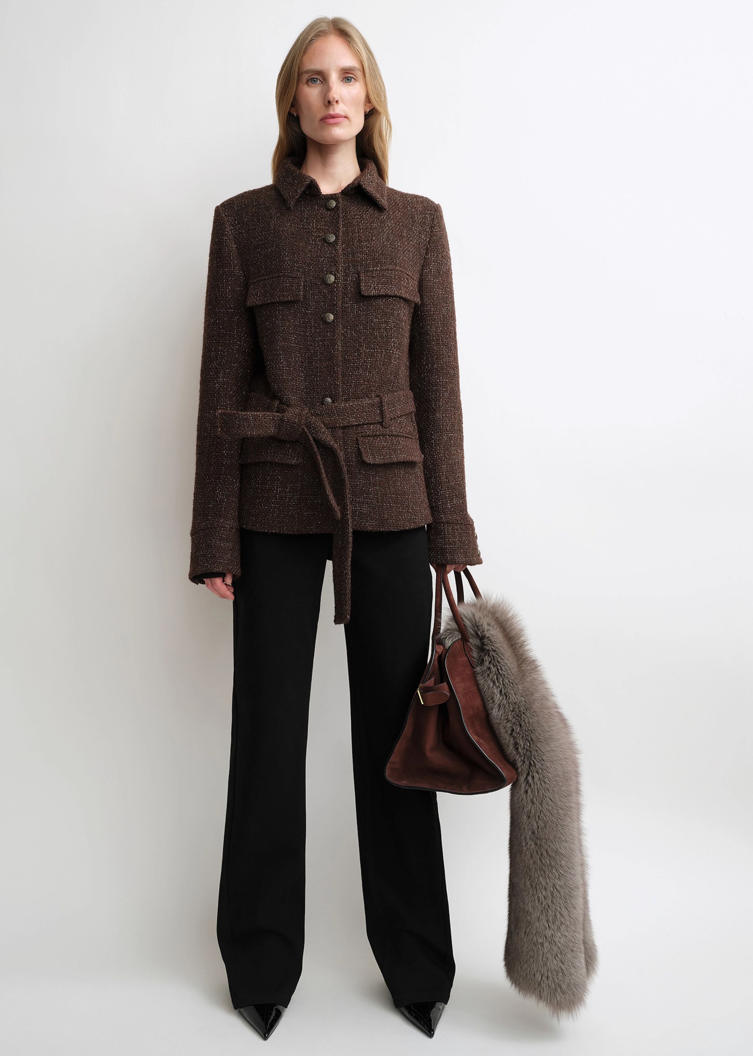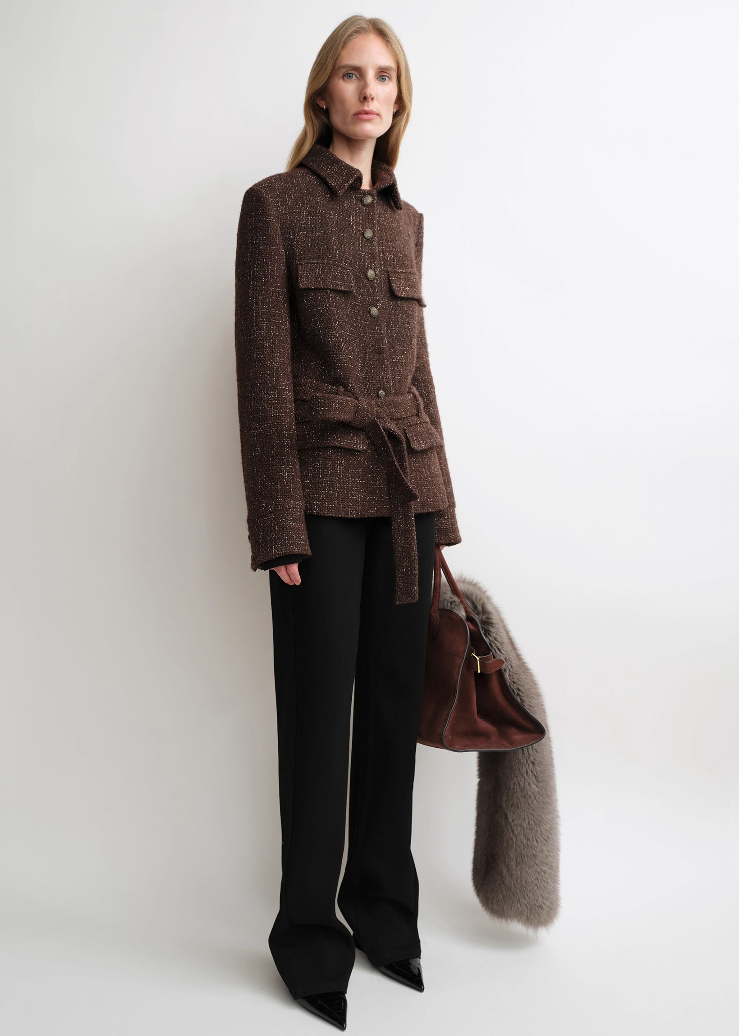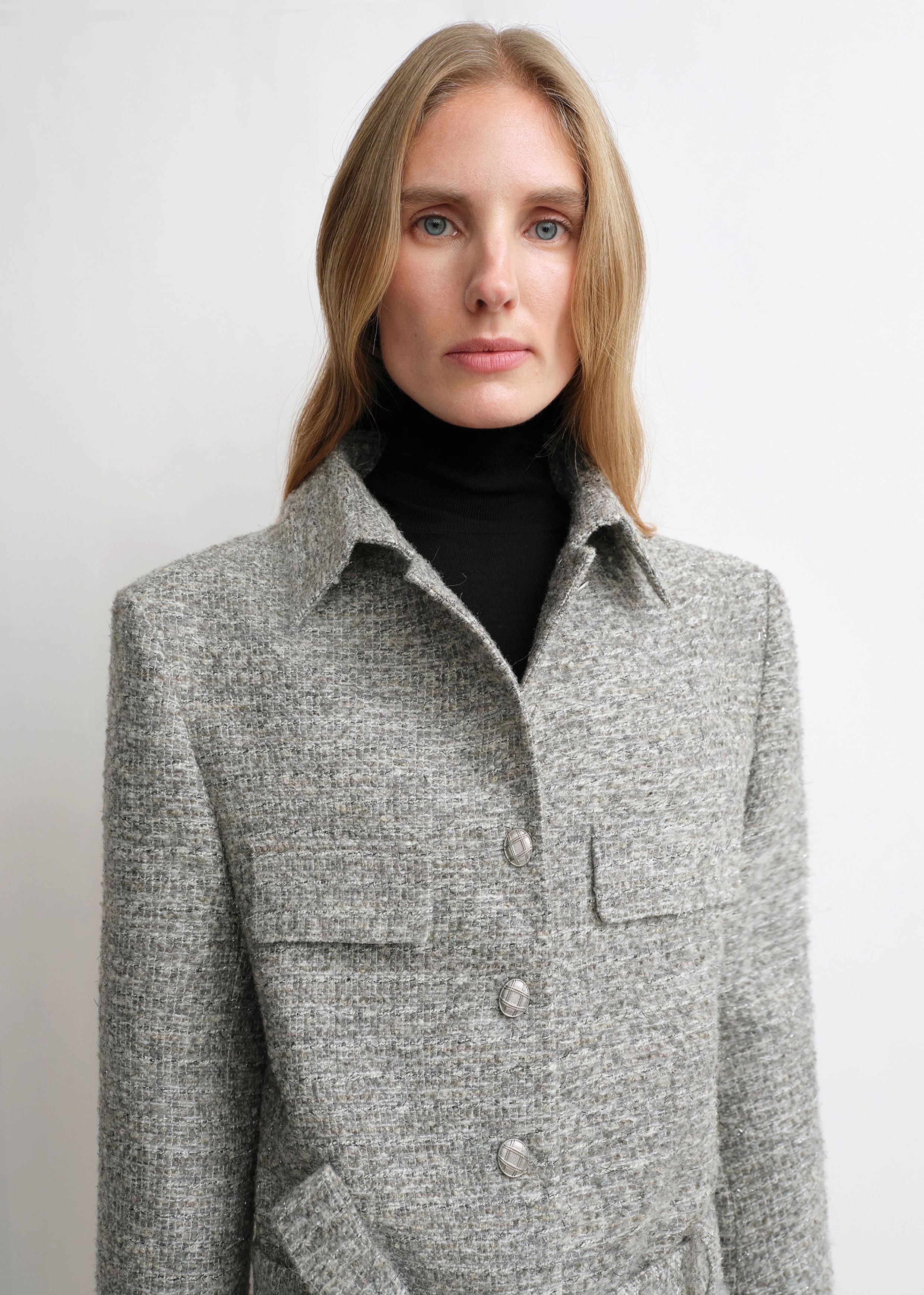 The Artm Waist-Cinching Shirt-Style Tweed Jacket with Wool and Belt, Autumn and Winter Short Coat for Women, New Model 25