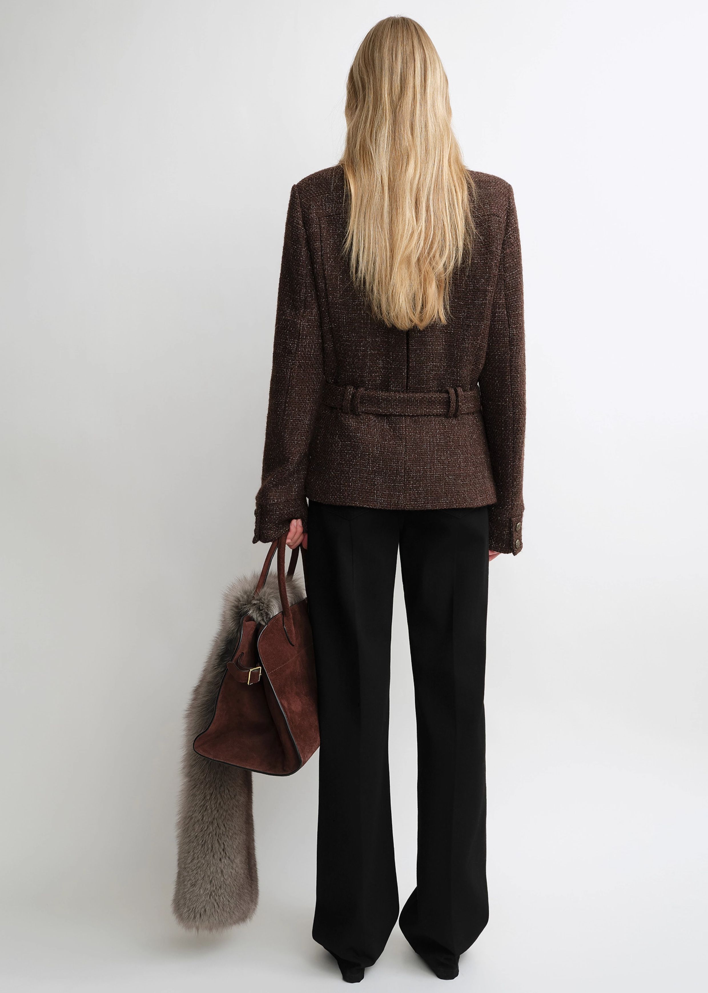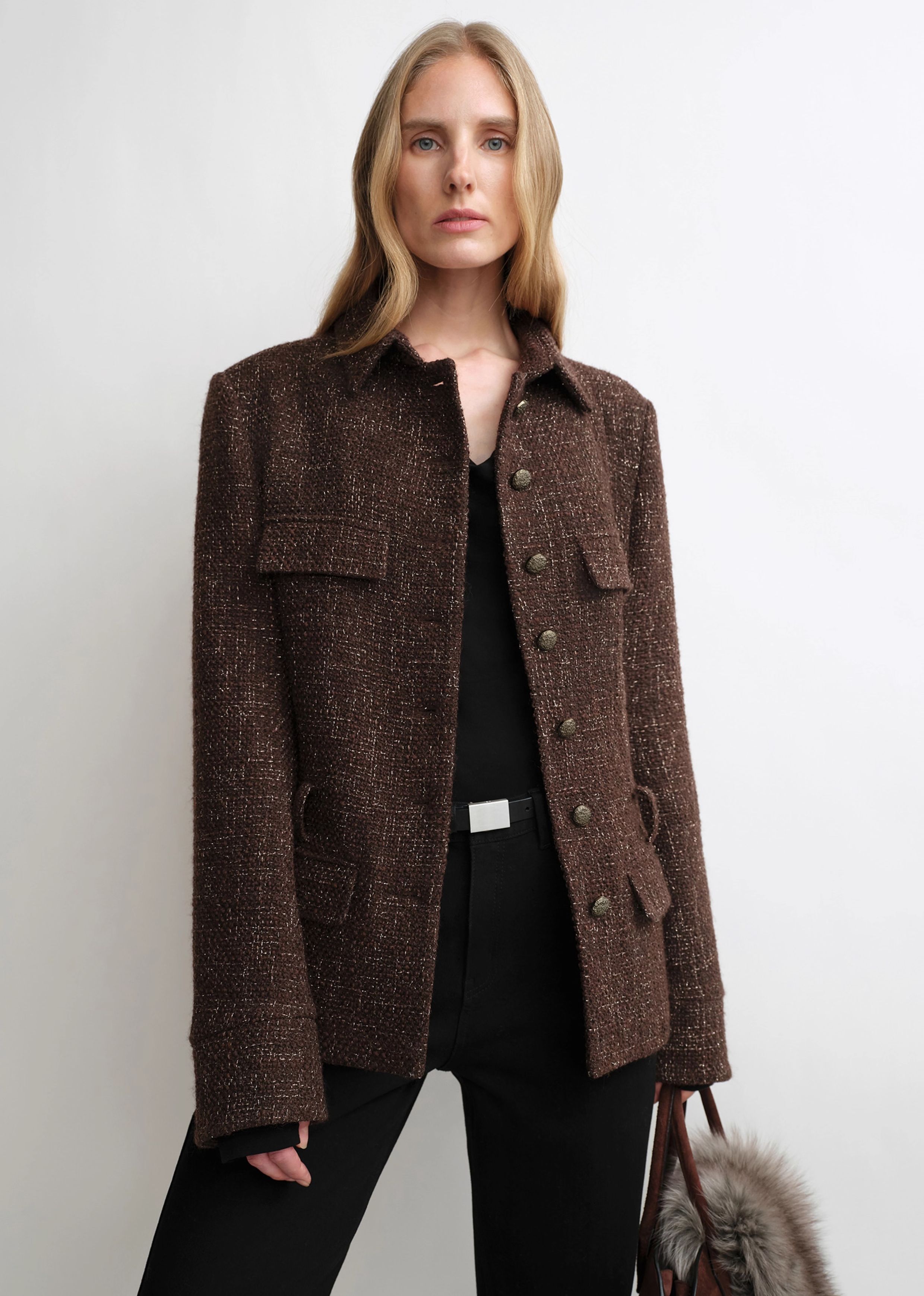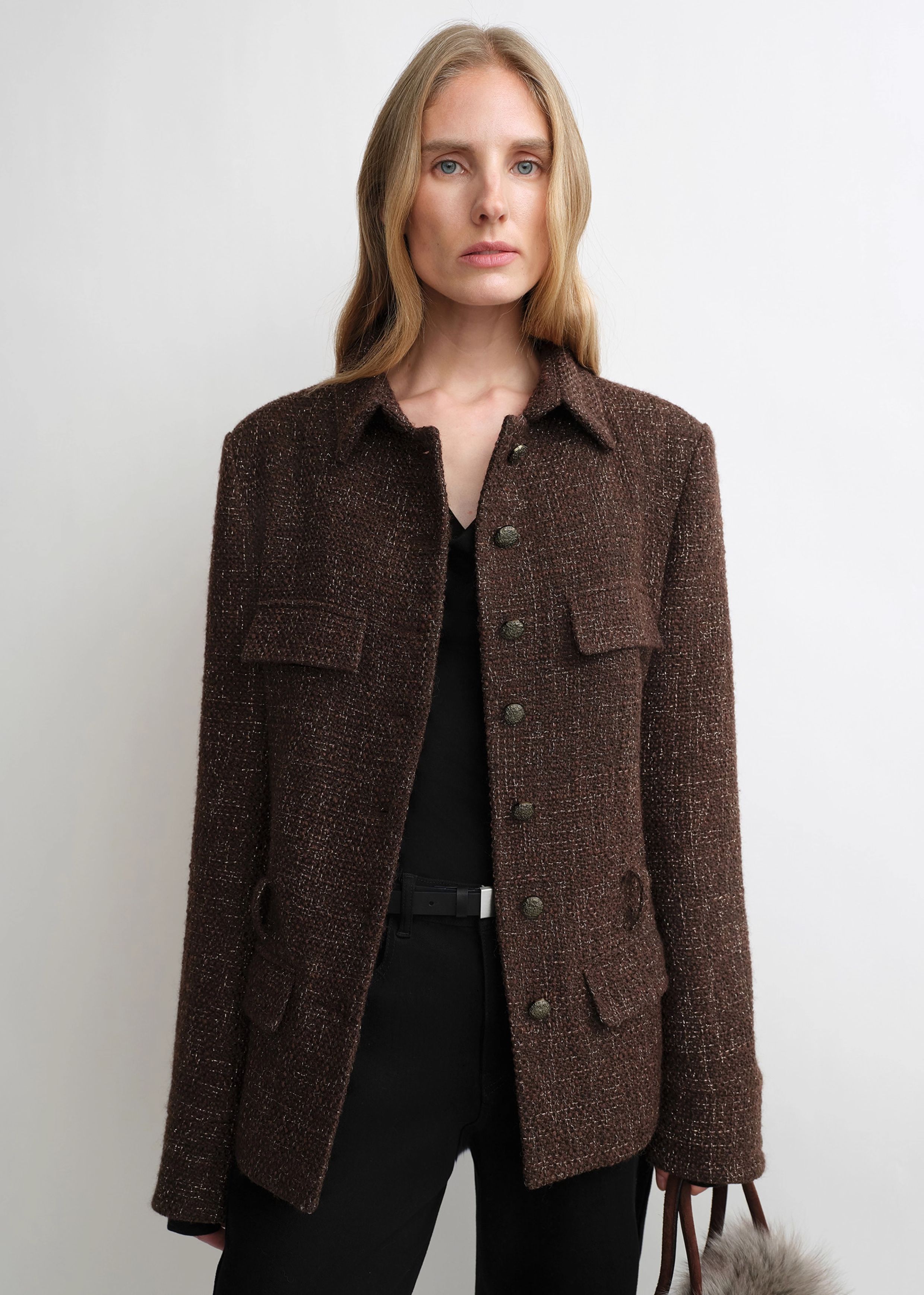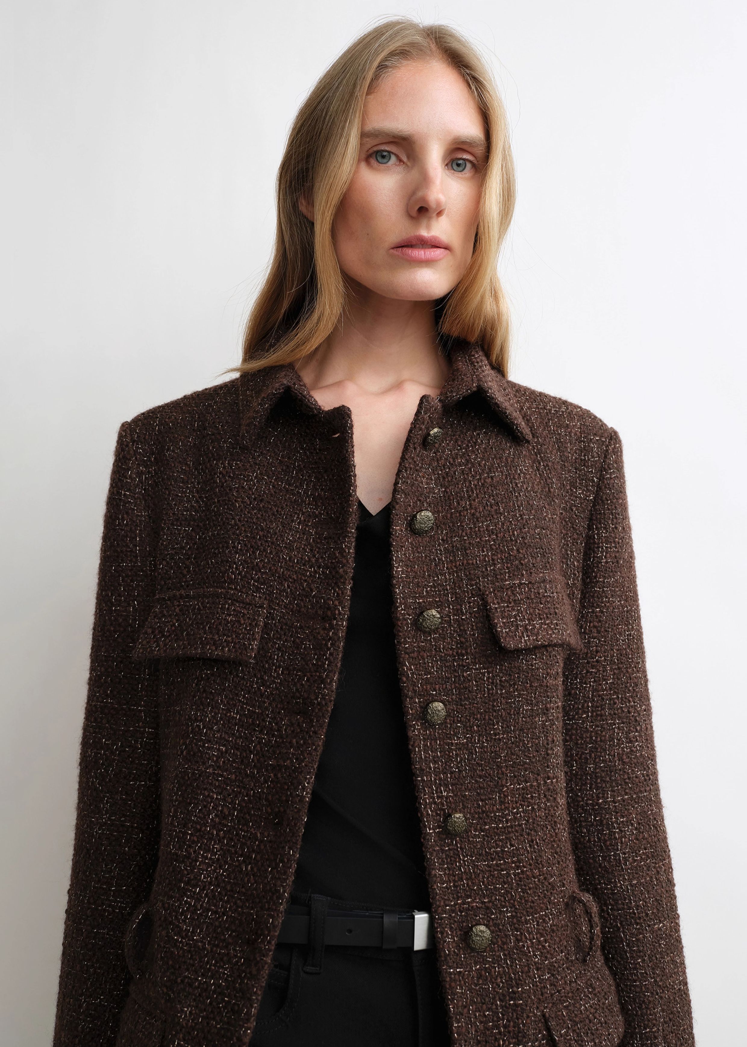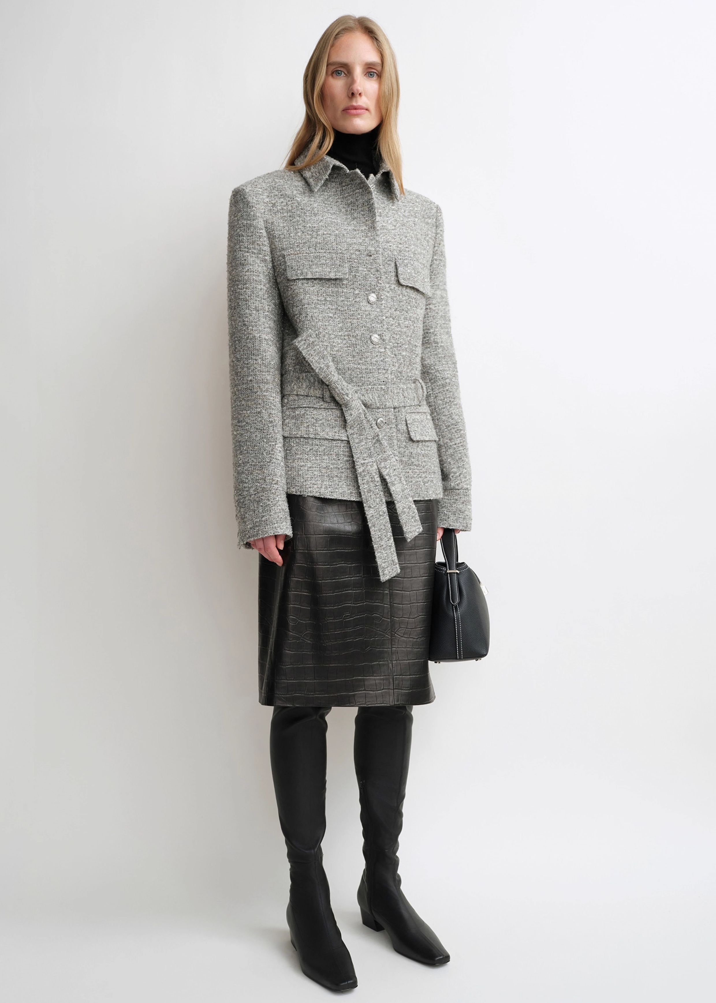 The Artm Waist-Cinching Shirt-Style Tweed Jacket with Wool and Belt, Autumn and Winter Short Coat for Women, New Model 25