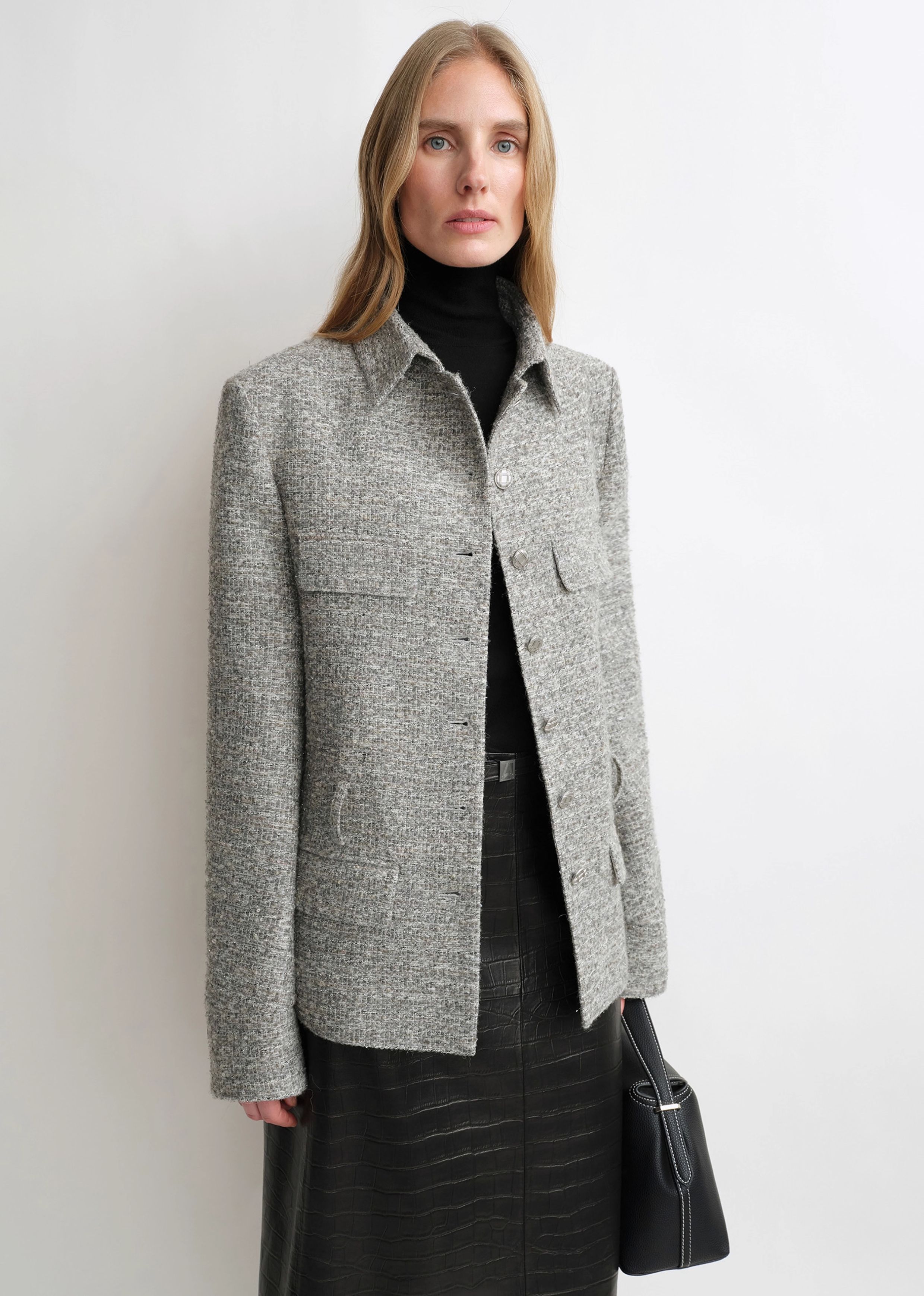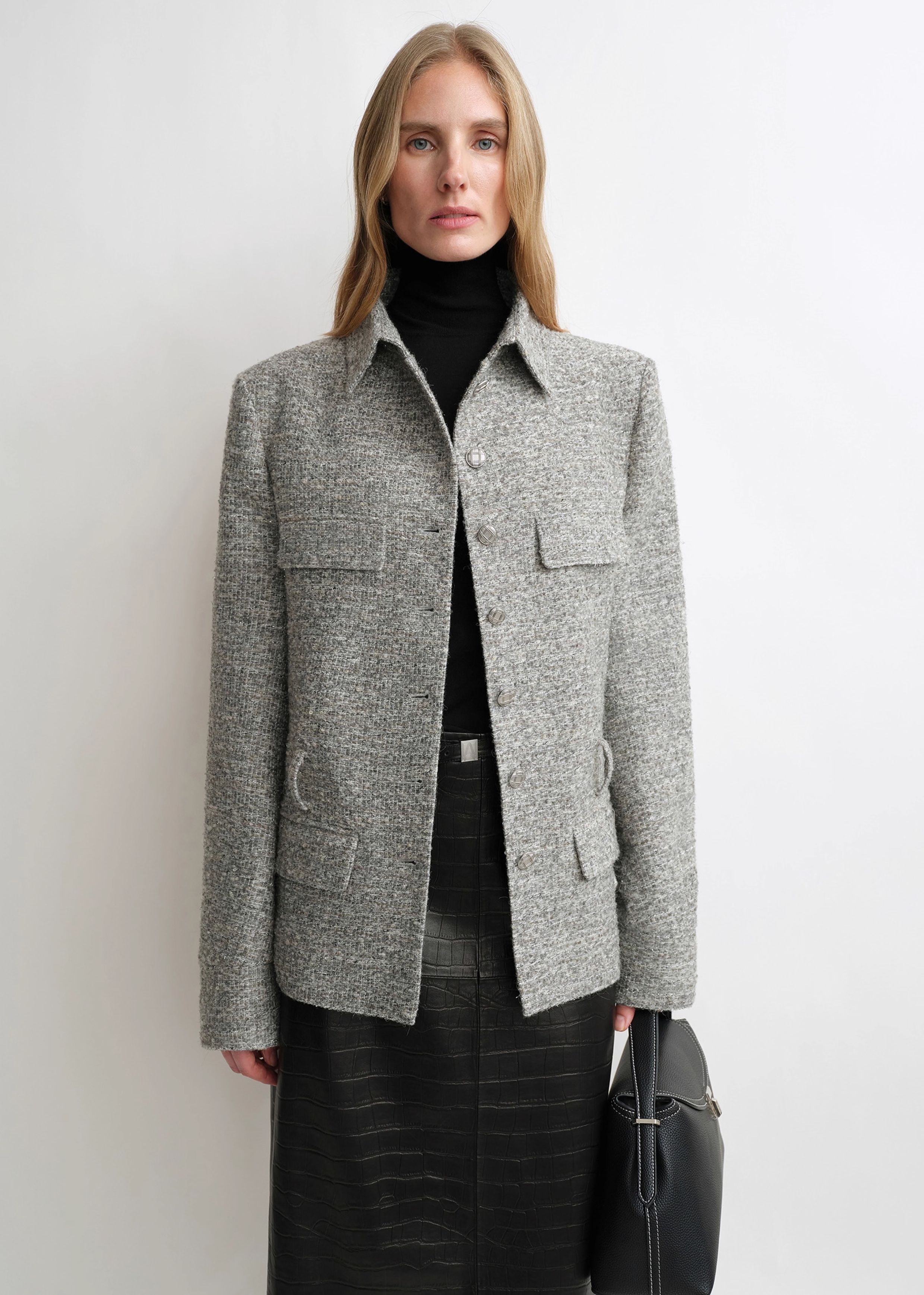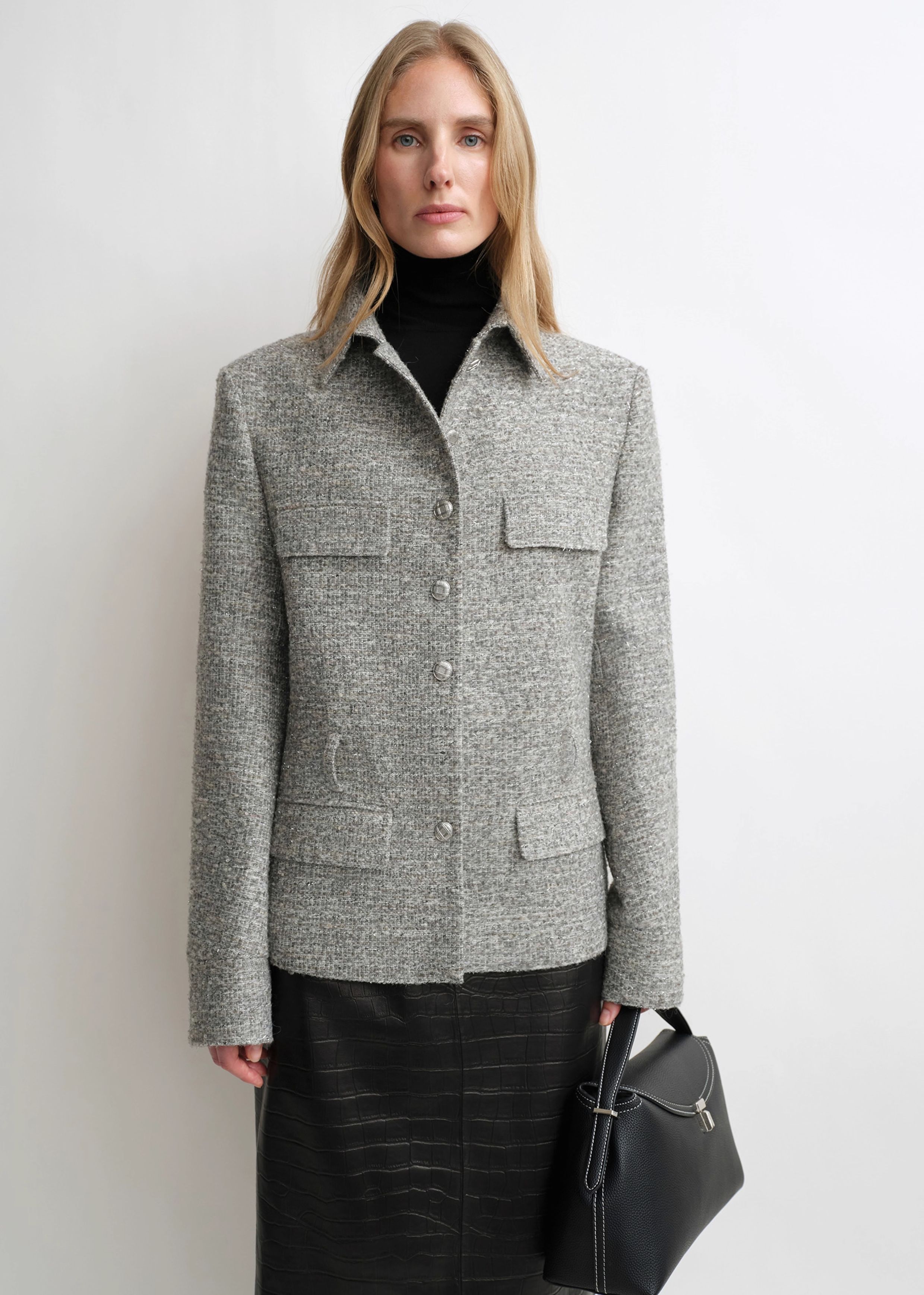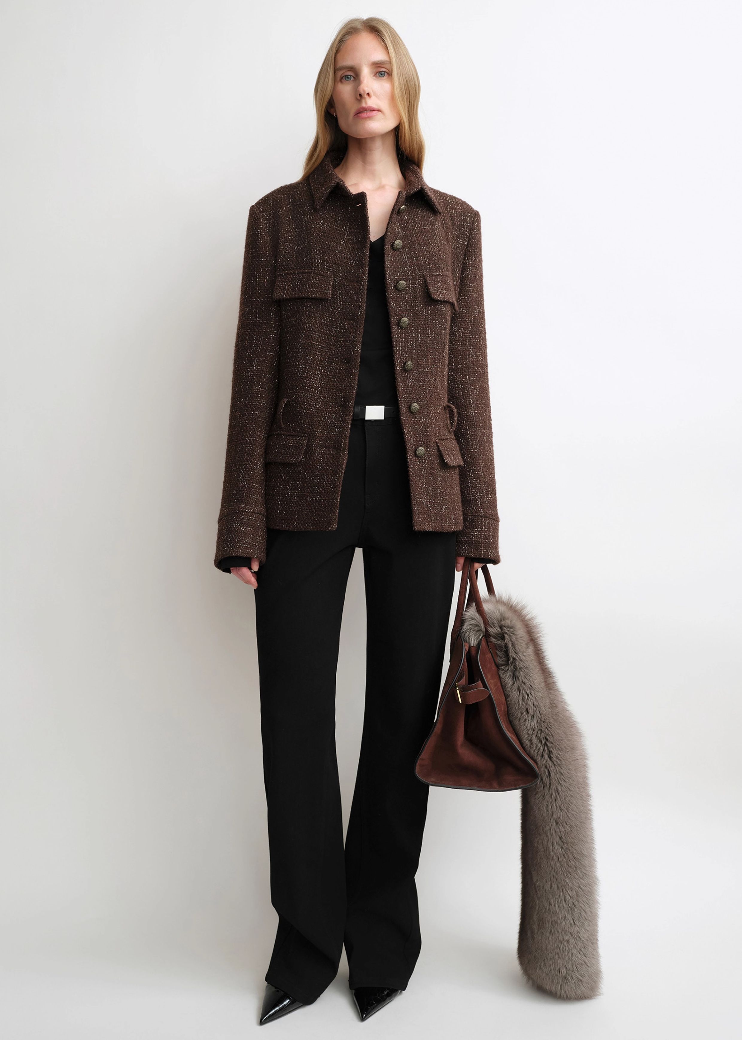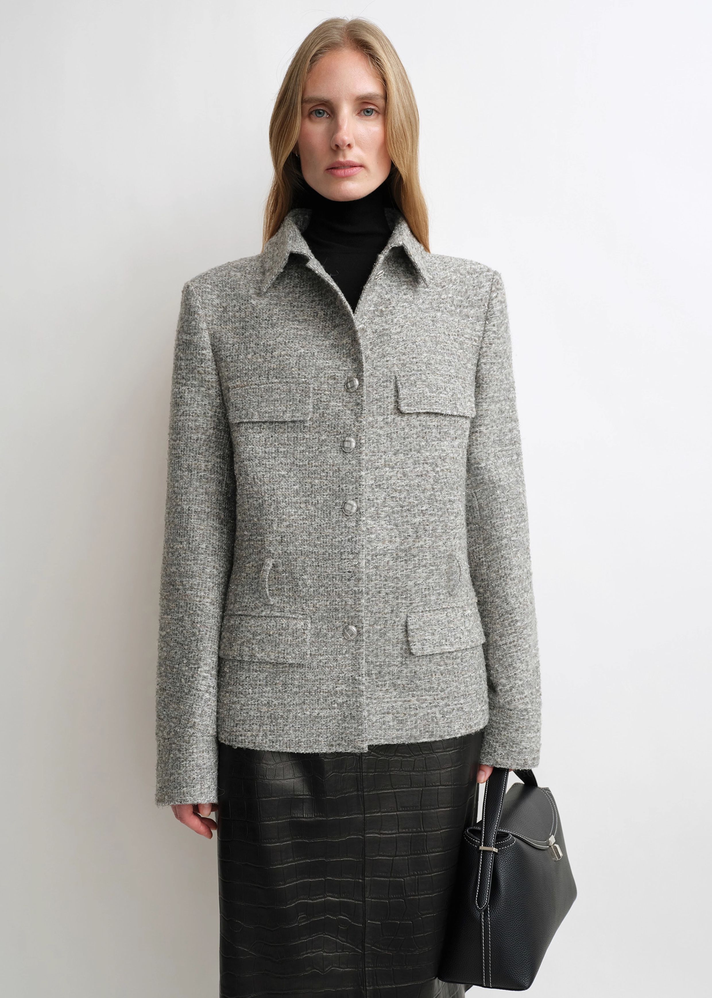 The Artm Waist-Cinching Shirt-Style Tweed Jacket with Wool and Belt, Autumn and Winter Short Coat for Women, New Model 25