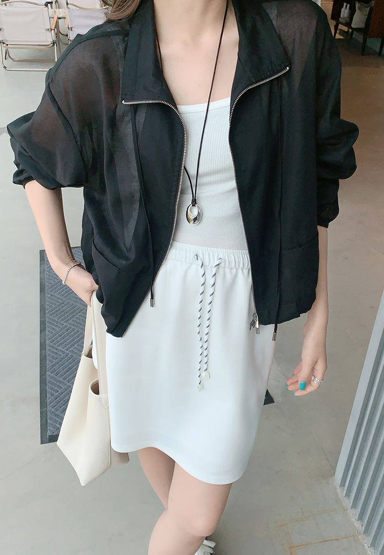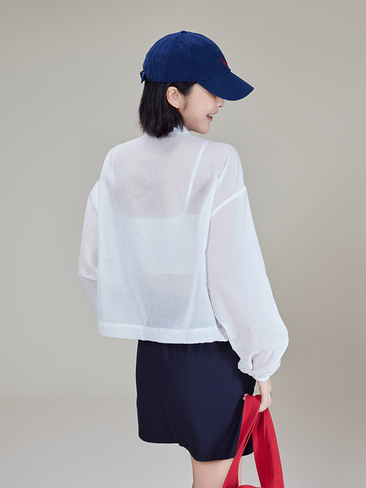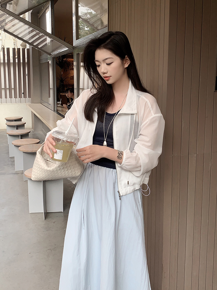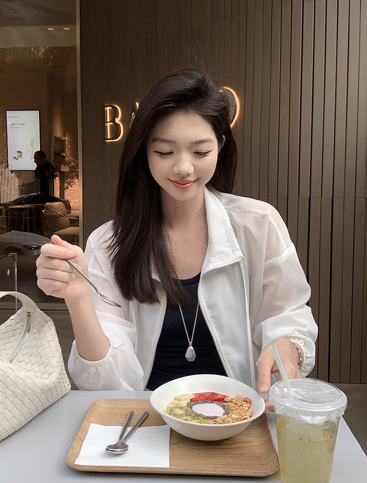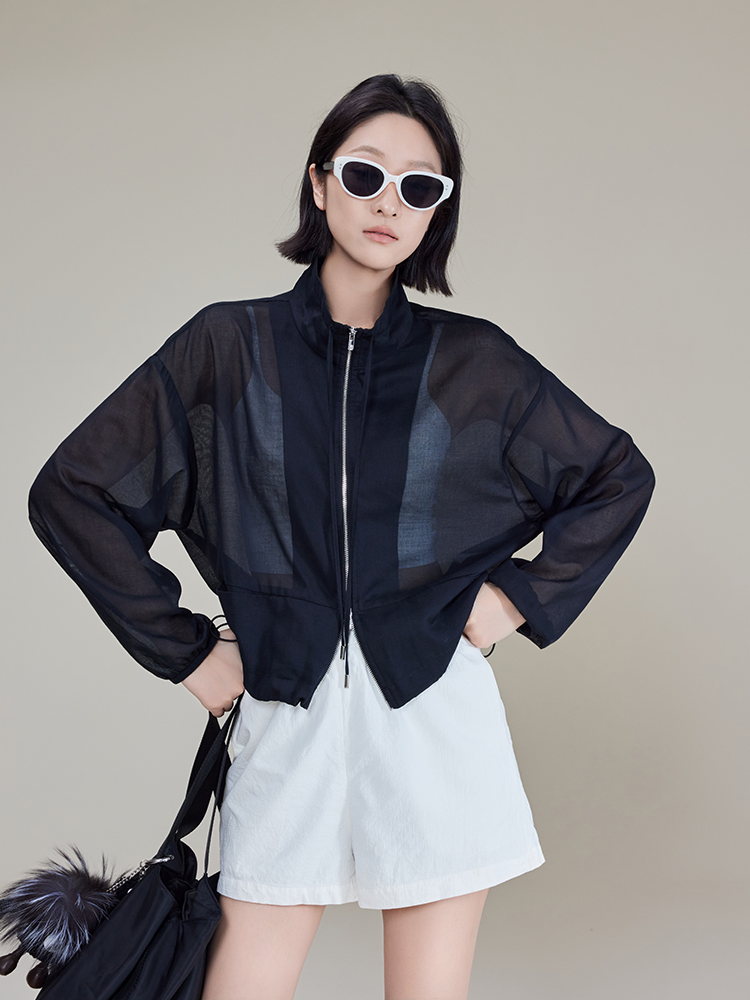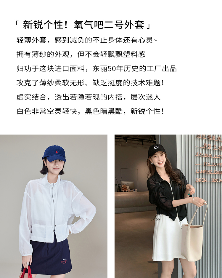Meiyang【In Stock】Oxygen Bar No. 2 Jacket Stand Collar Sheer Loose Zipper Long Sleeve Top