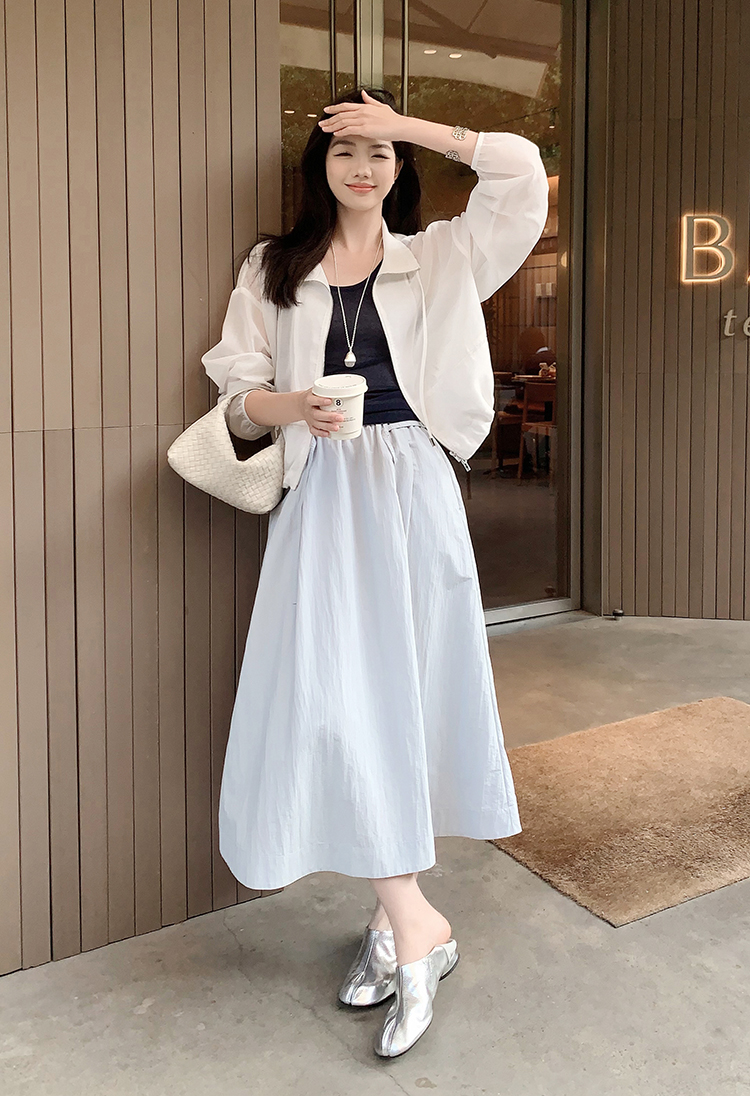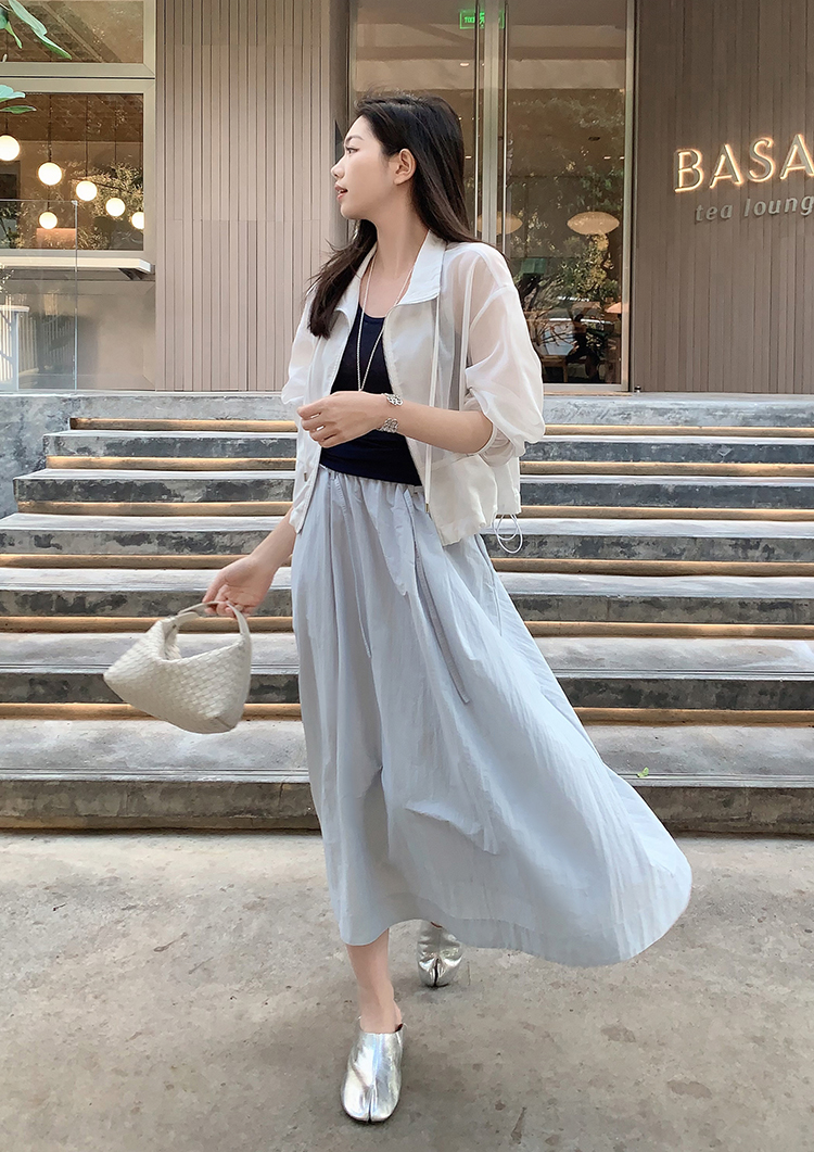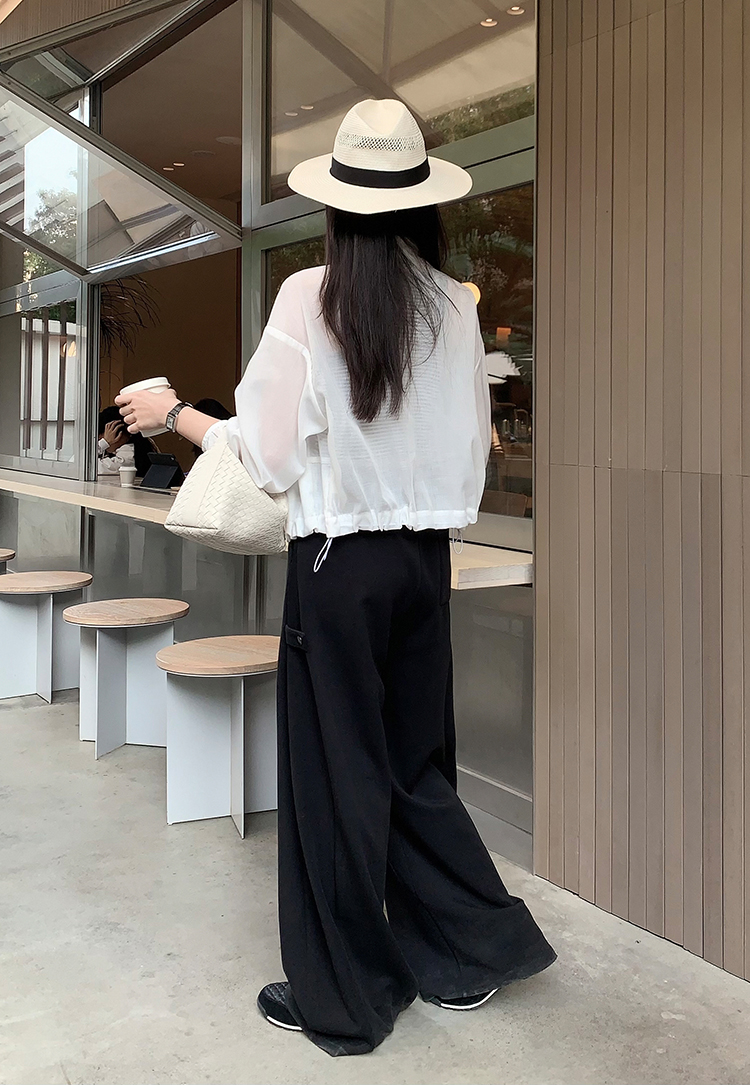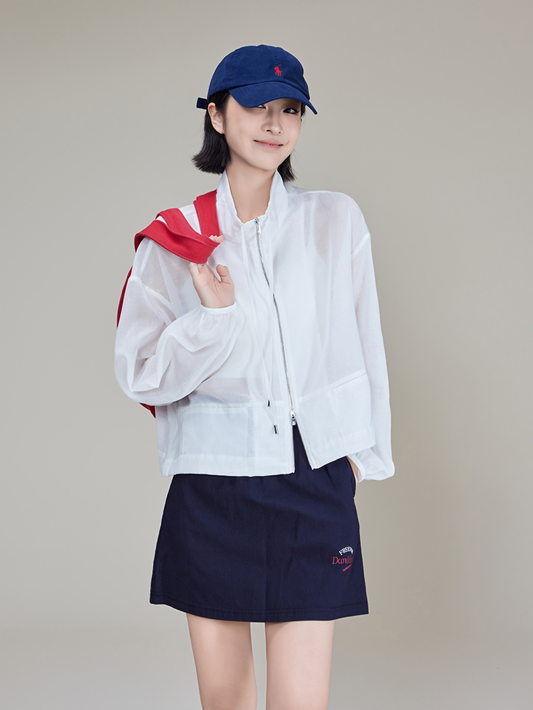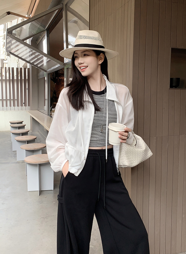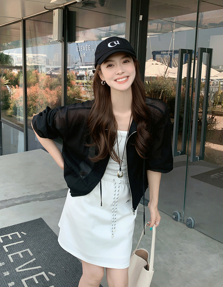 Meiyang【In Stock】Oxygen Bar No. 2 Jacket Stand Collar Sheer Loose Zipper Long Sleeve Top