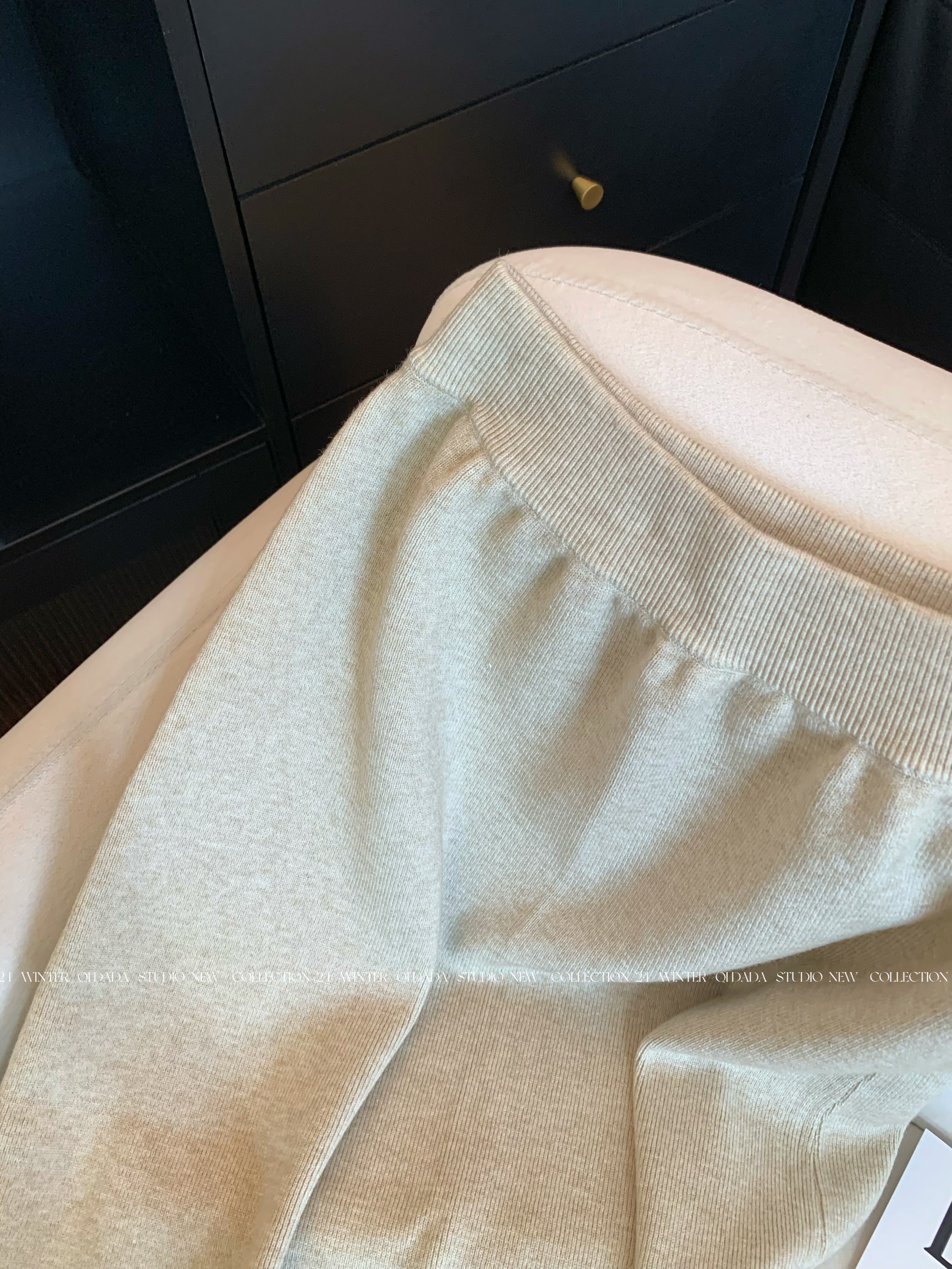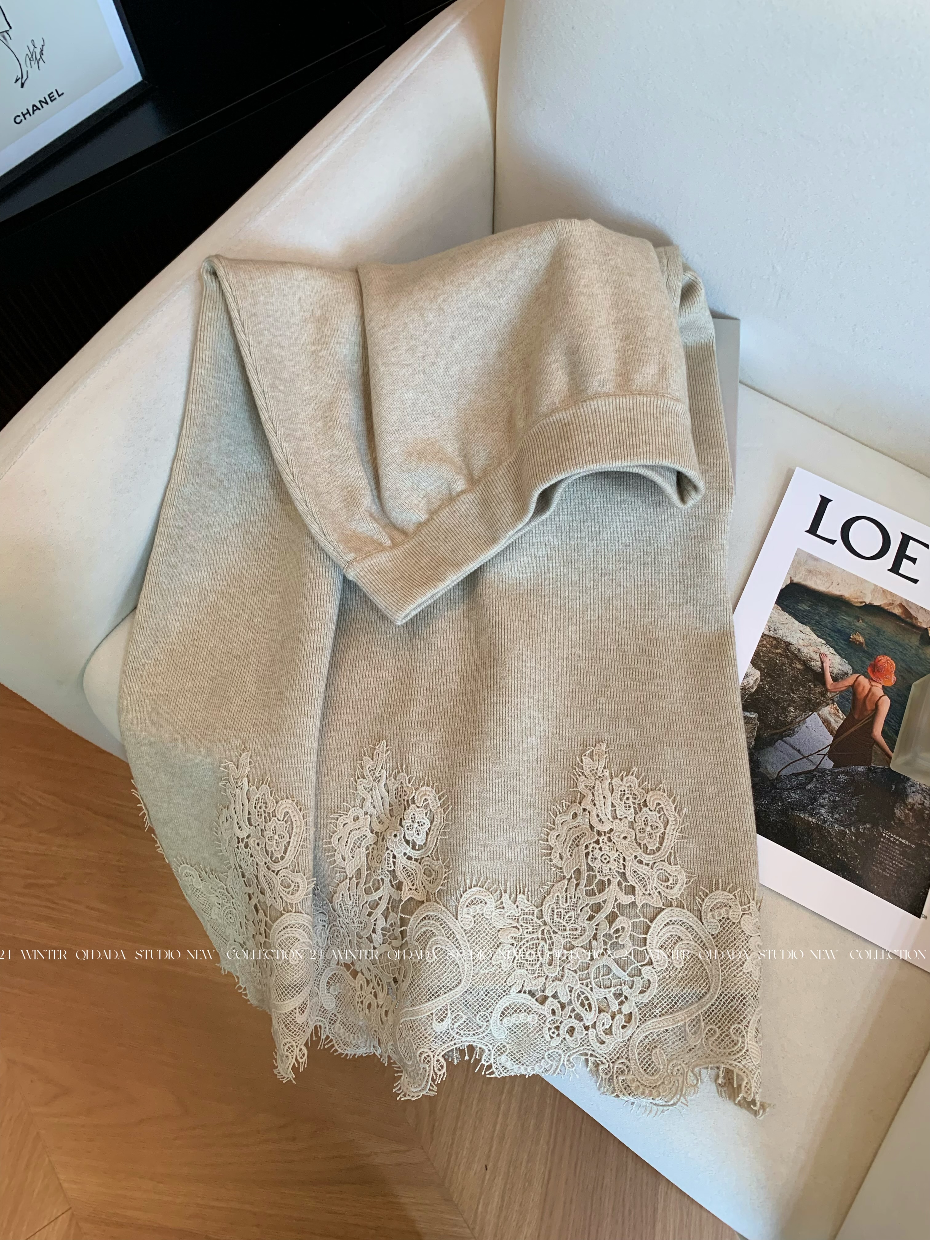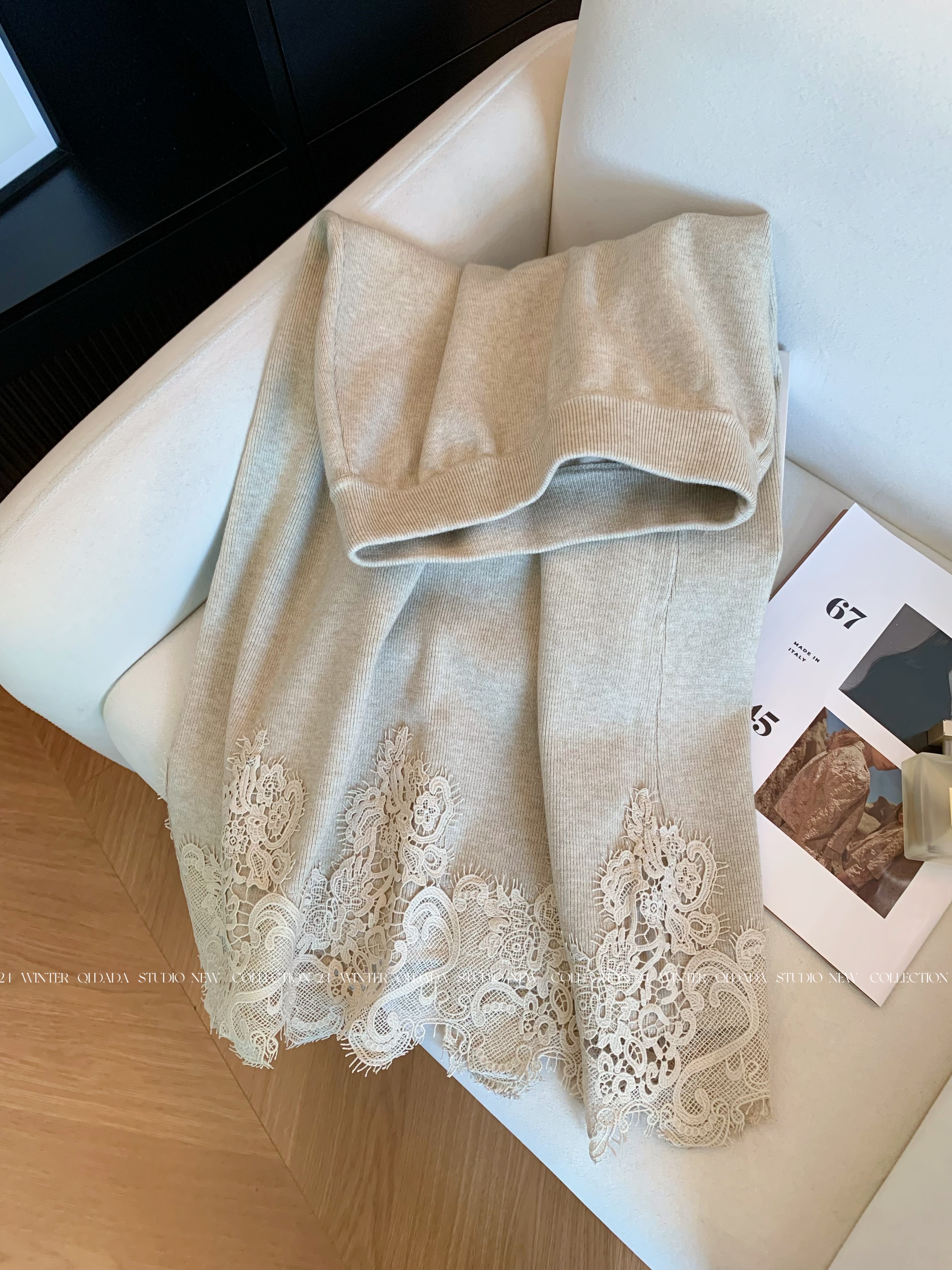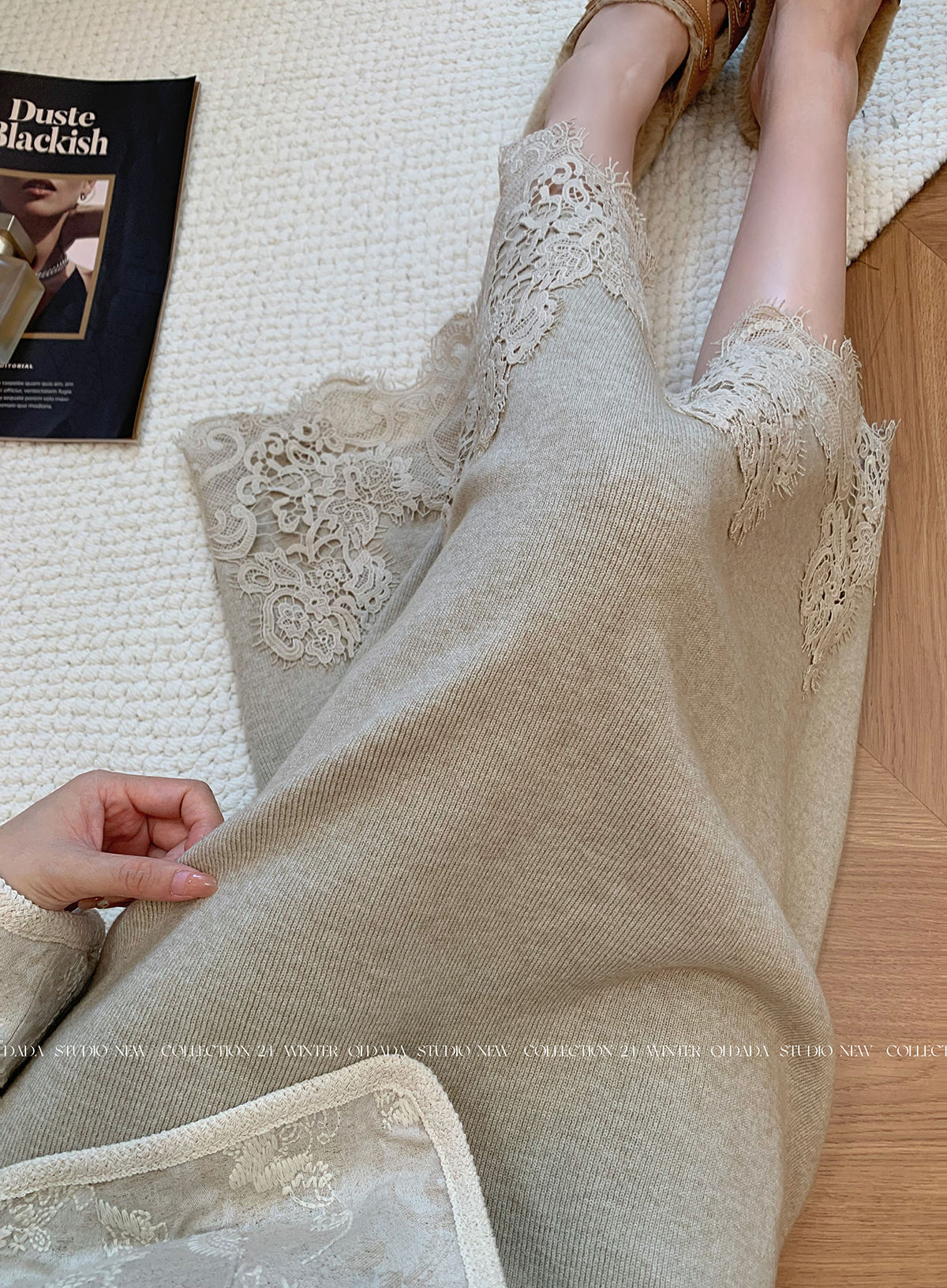 Oatmeal-Colored Lace Spliced A-Line Knitted Skirt for Women 2025 New Autumn Fashion Stylish High-End Long Skirt