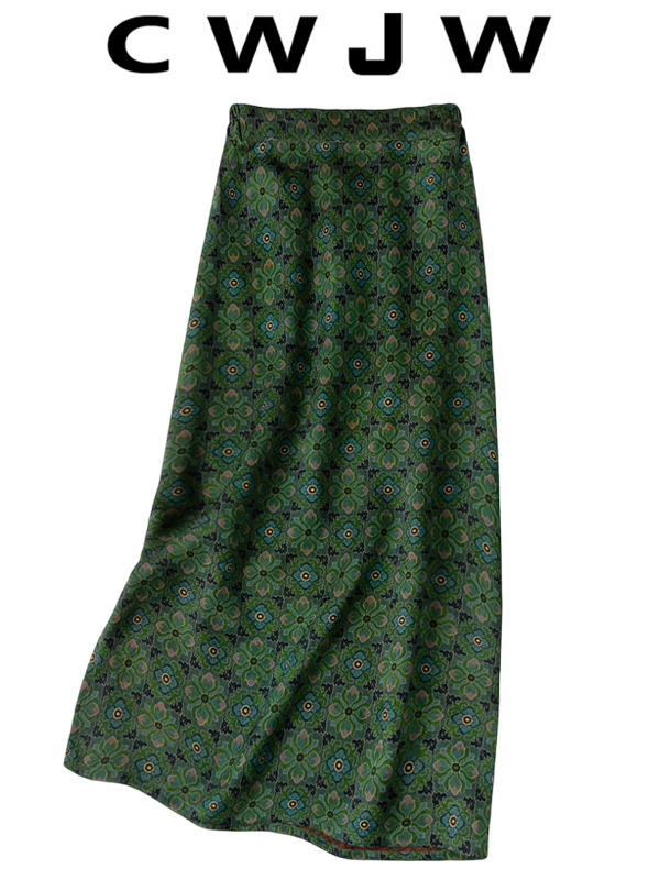 [in Stock] Silk Floral Xiangyun Gauze Elastic Waist Skirt 2025 Summer New Long Skirt with Slit and Hip-Hugging Design