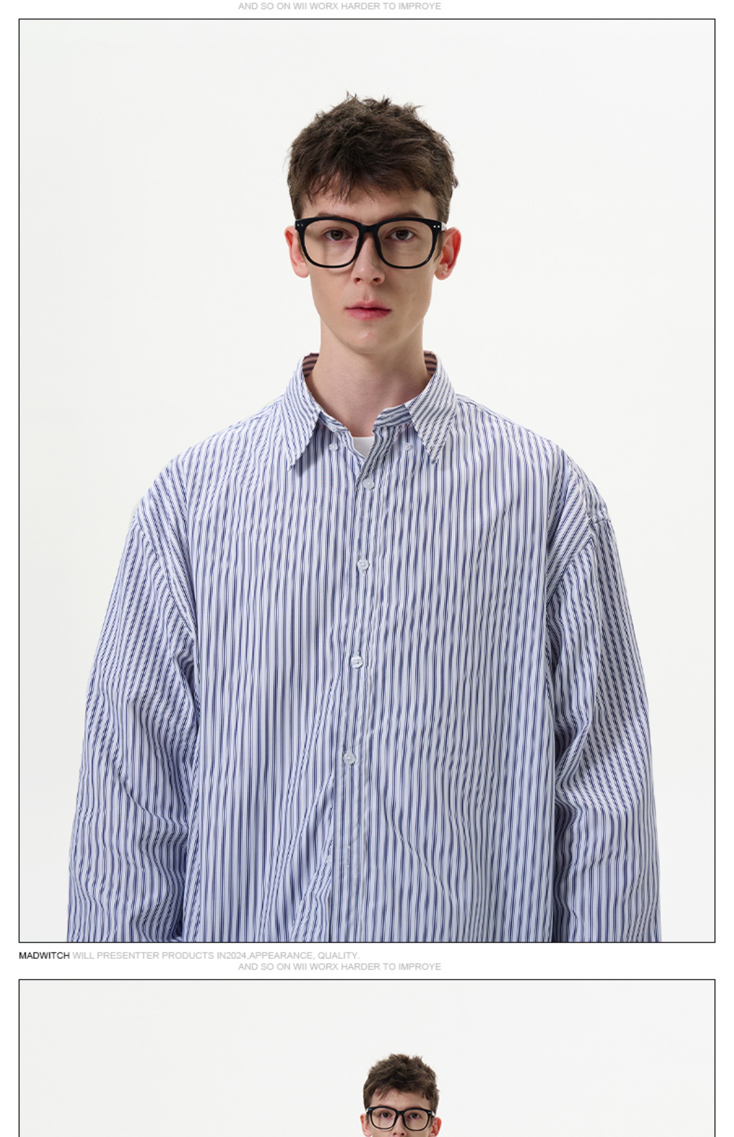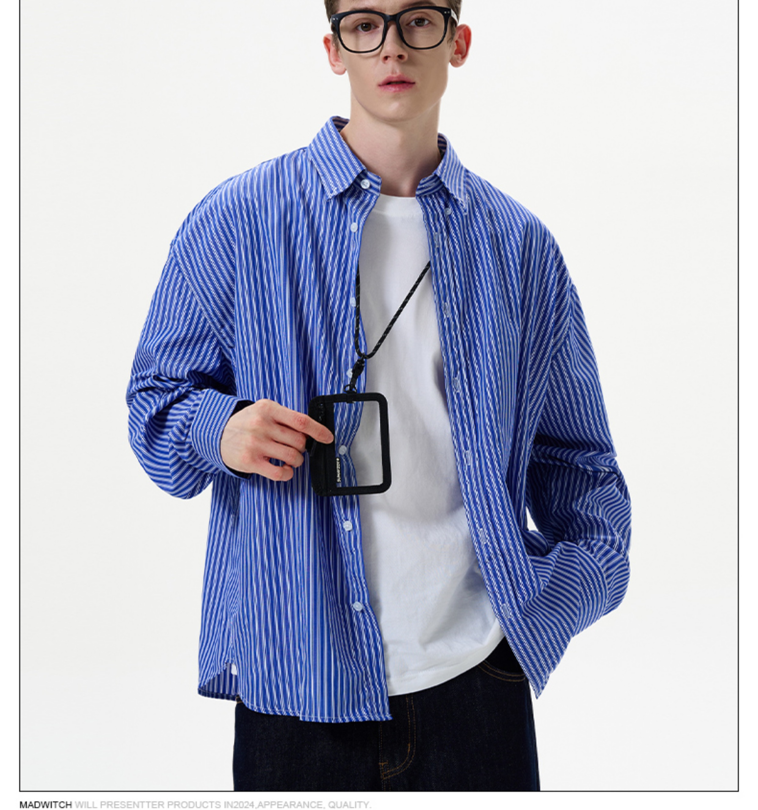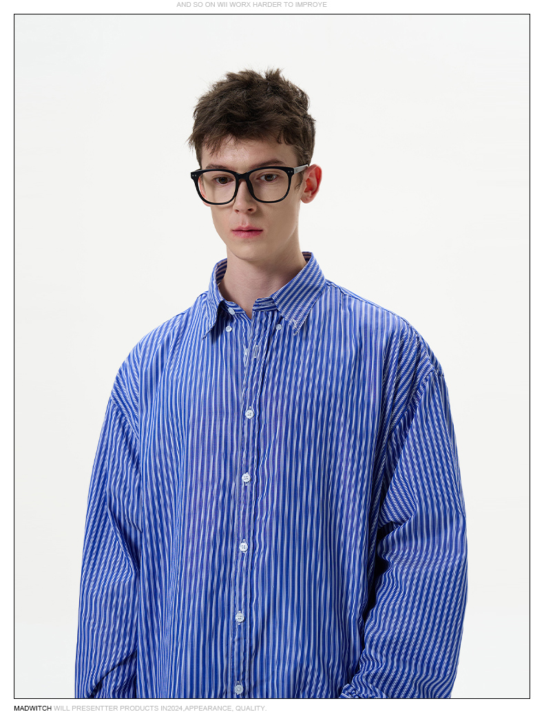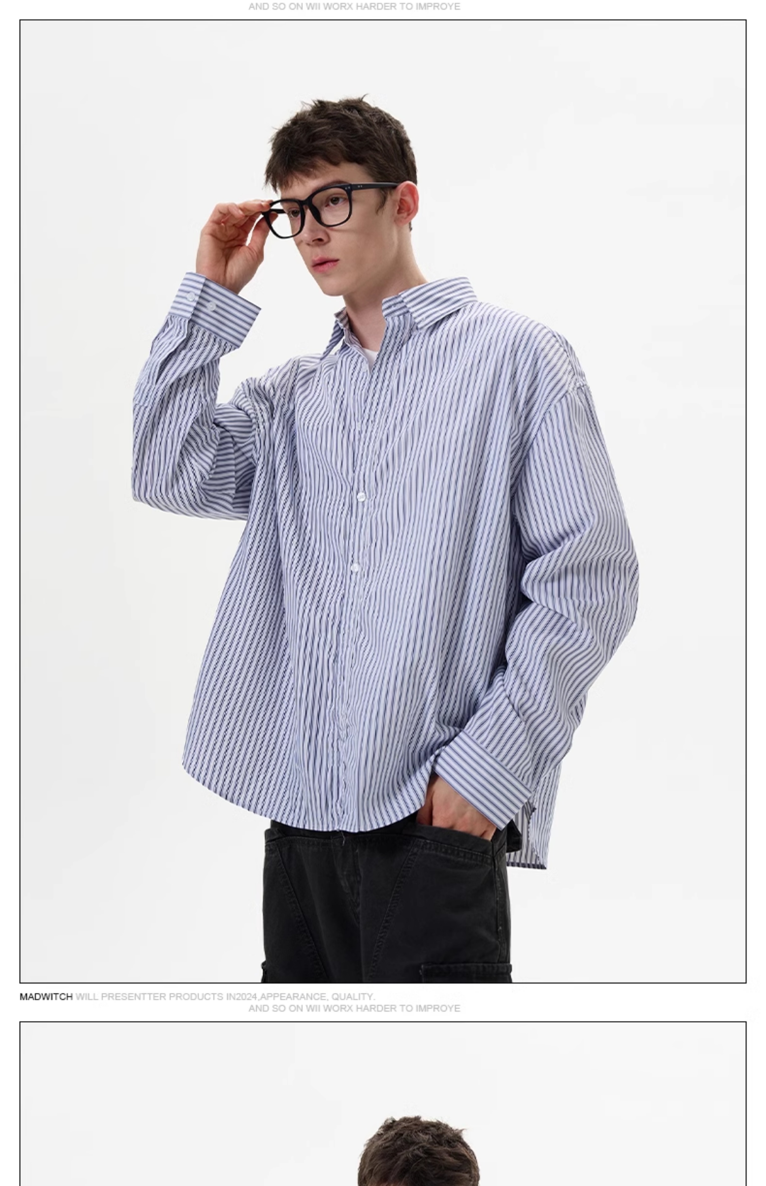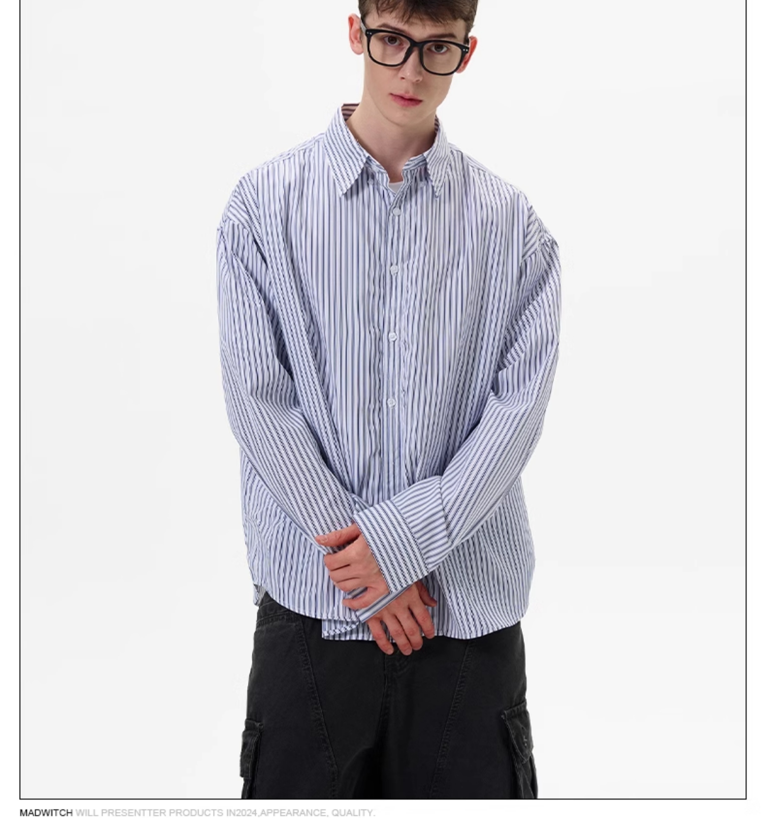 Madwitch American Retro High-Fashion Striped Shirt for Men and Women, Loose Casual Cleanfit New Top Trendy