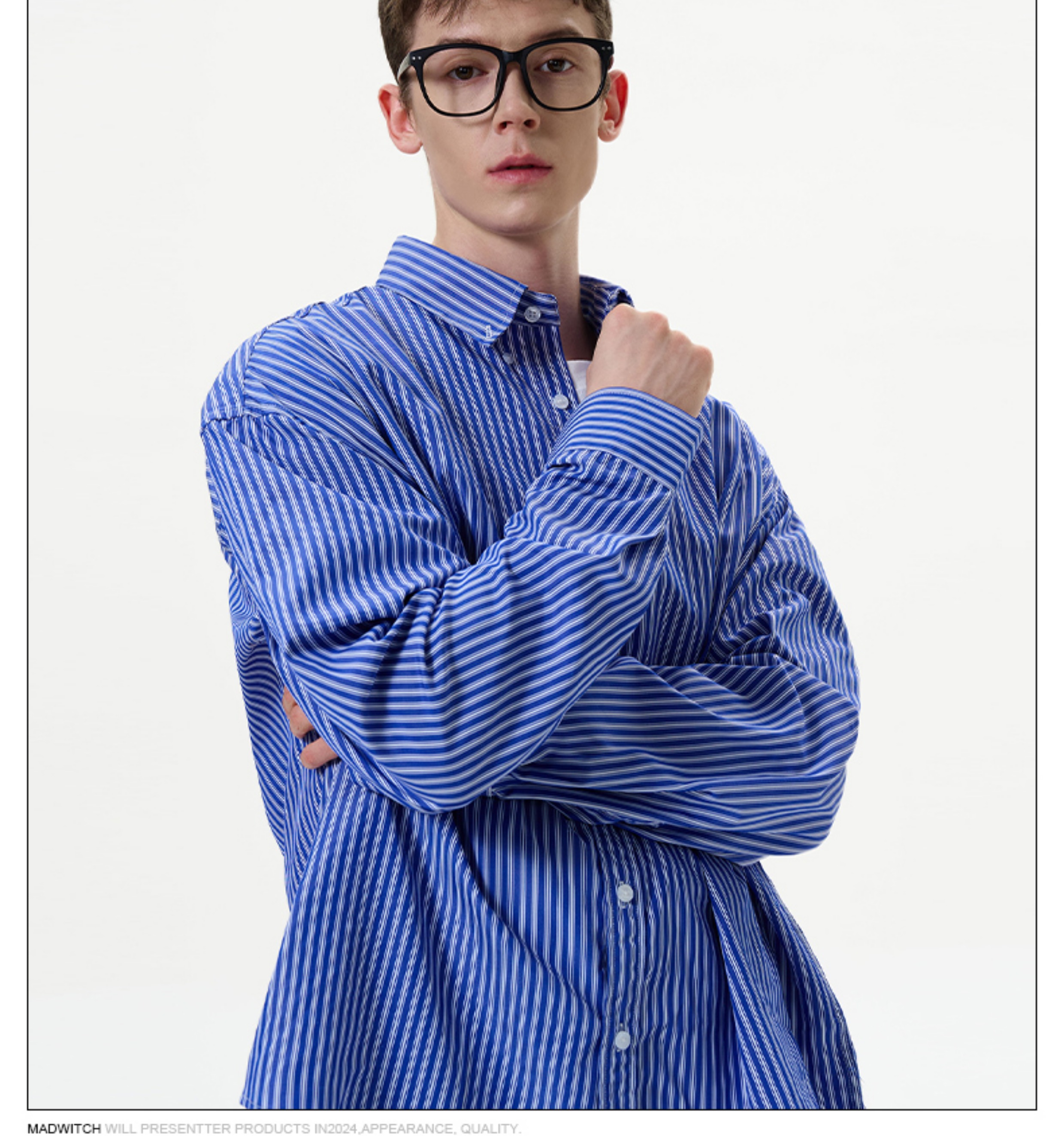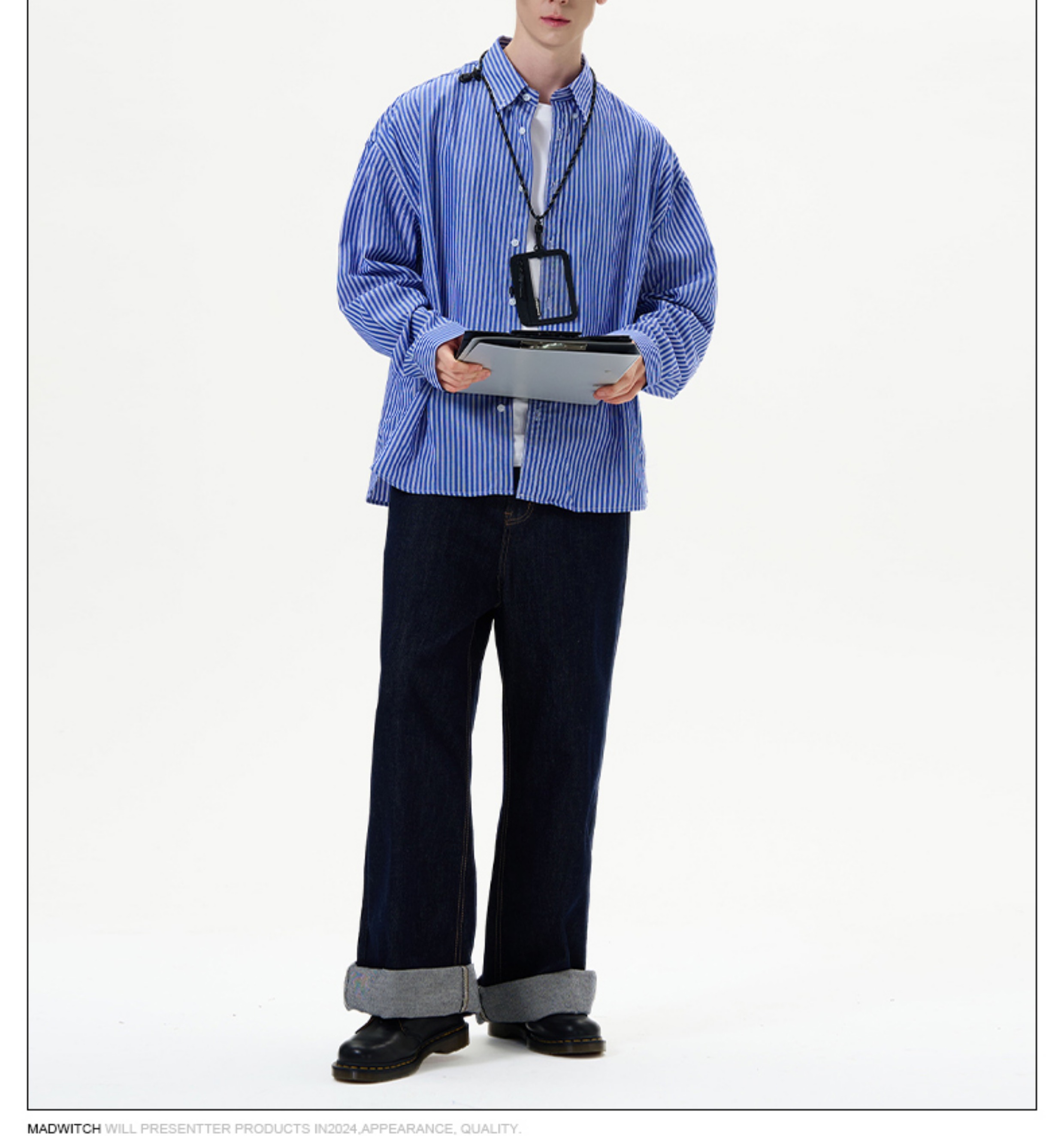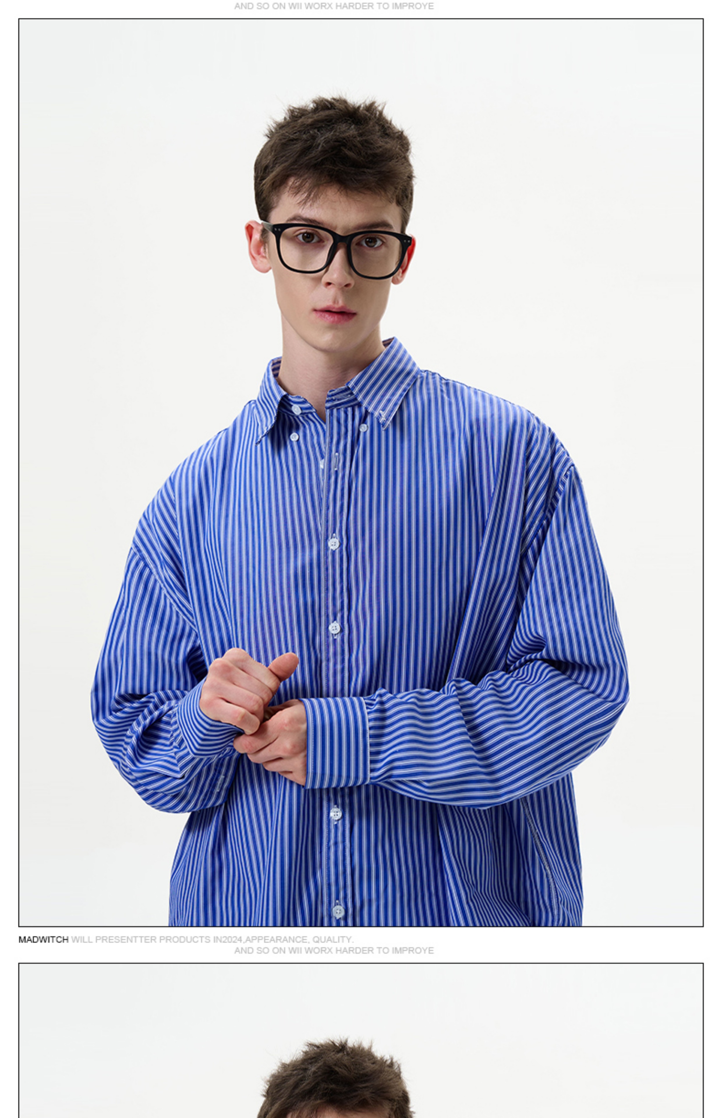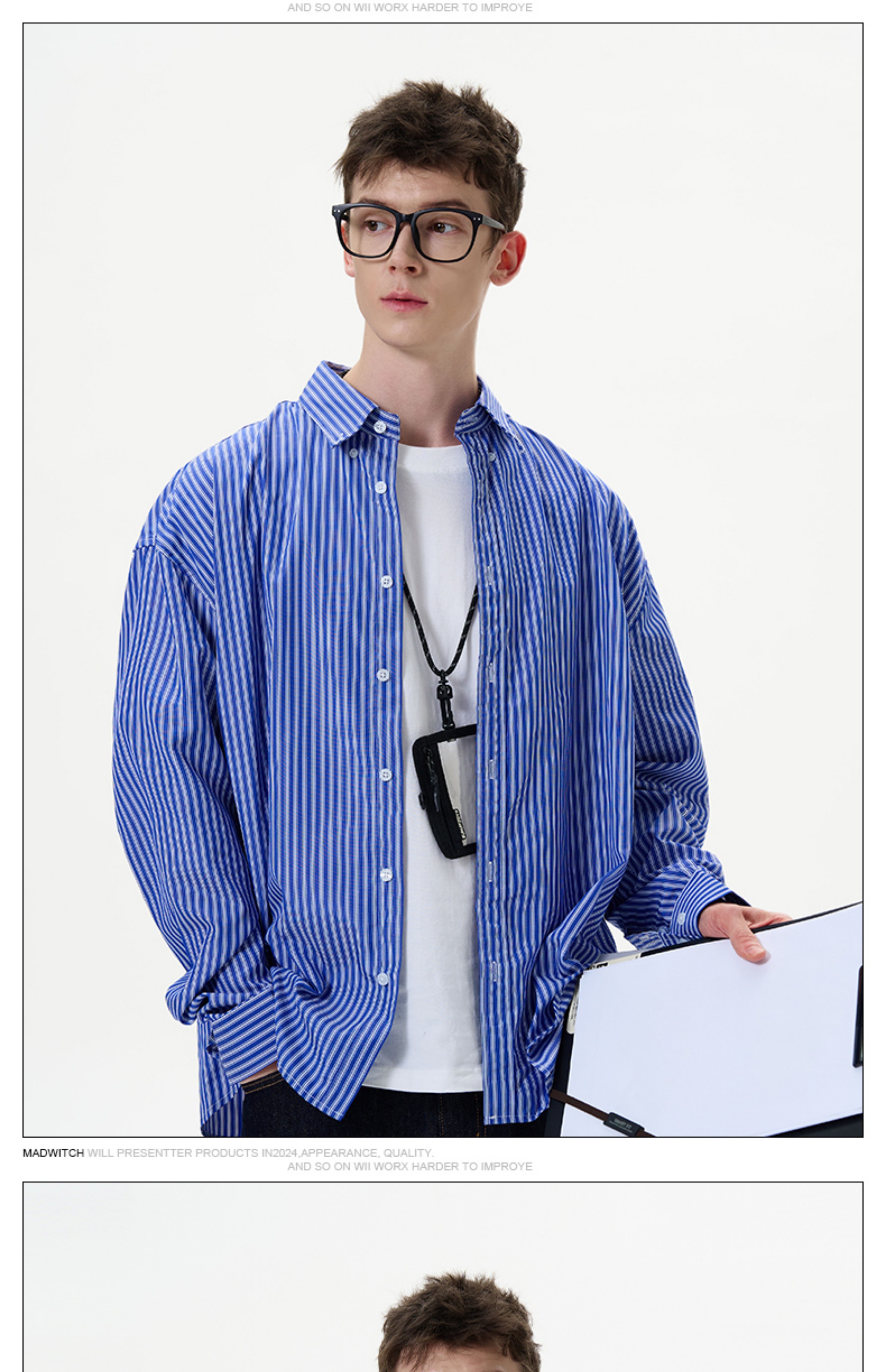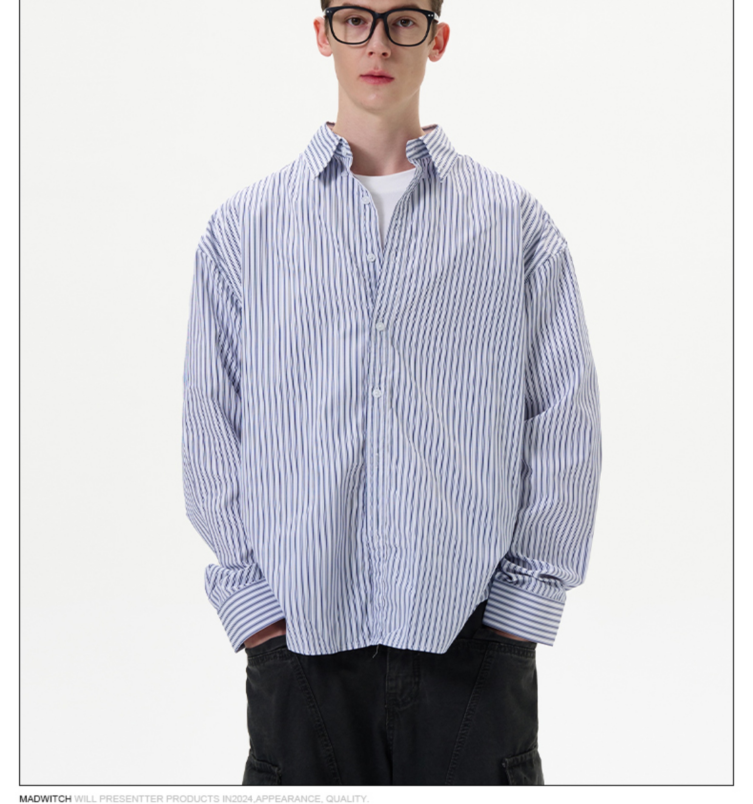 Madwitch American Retro High-Fashion Striped Shirt for Men and Women, Loose Casual Cleanfit New Top Trendy