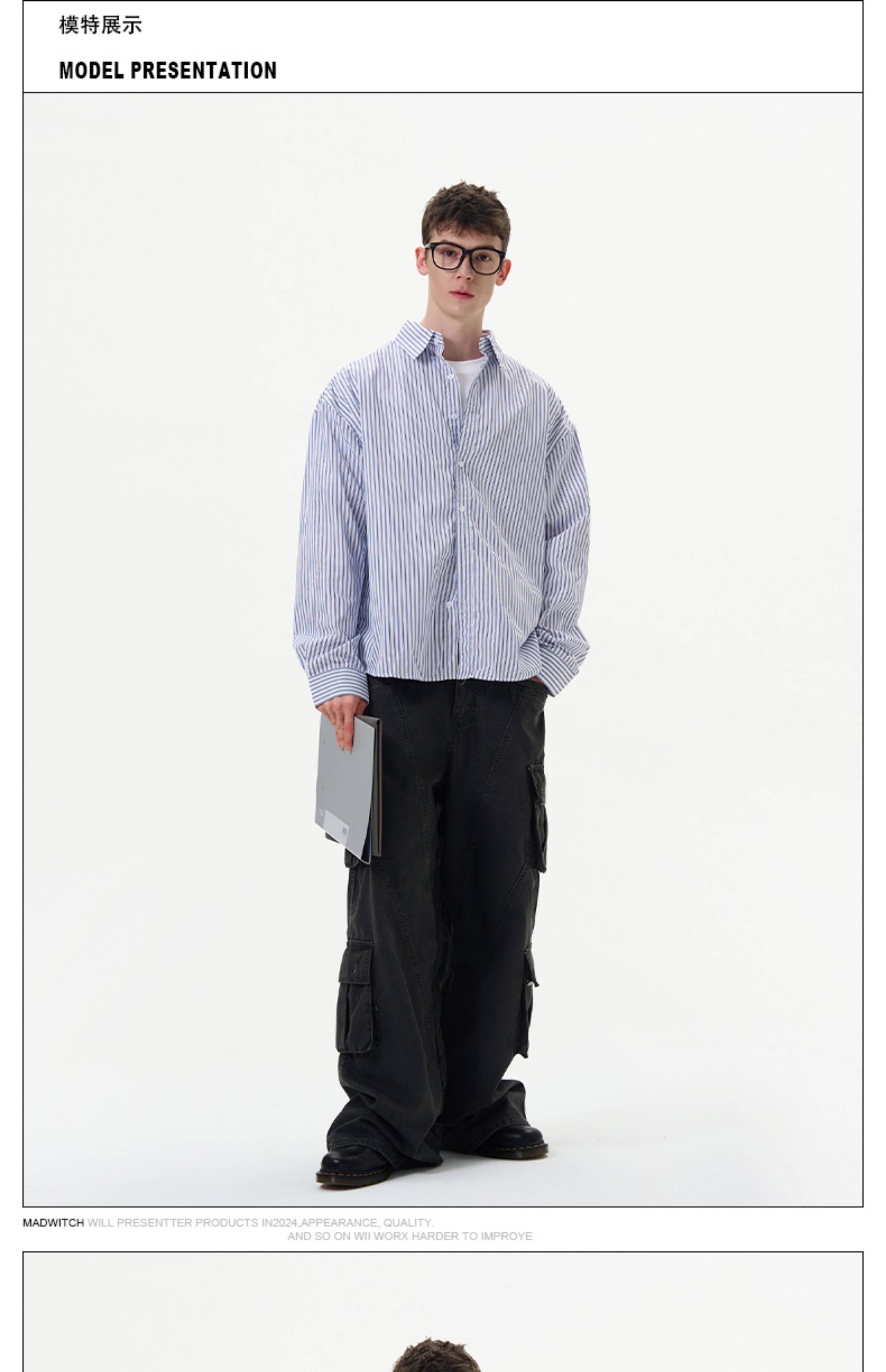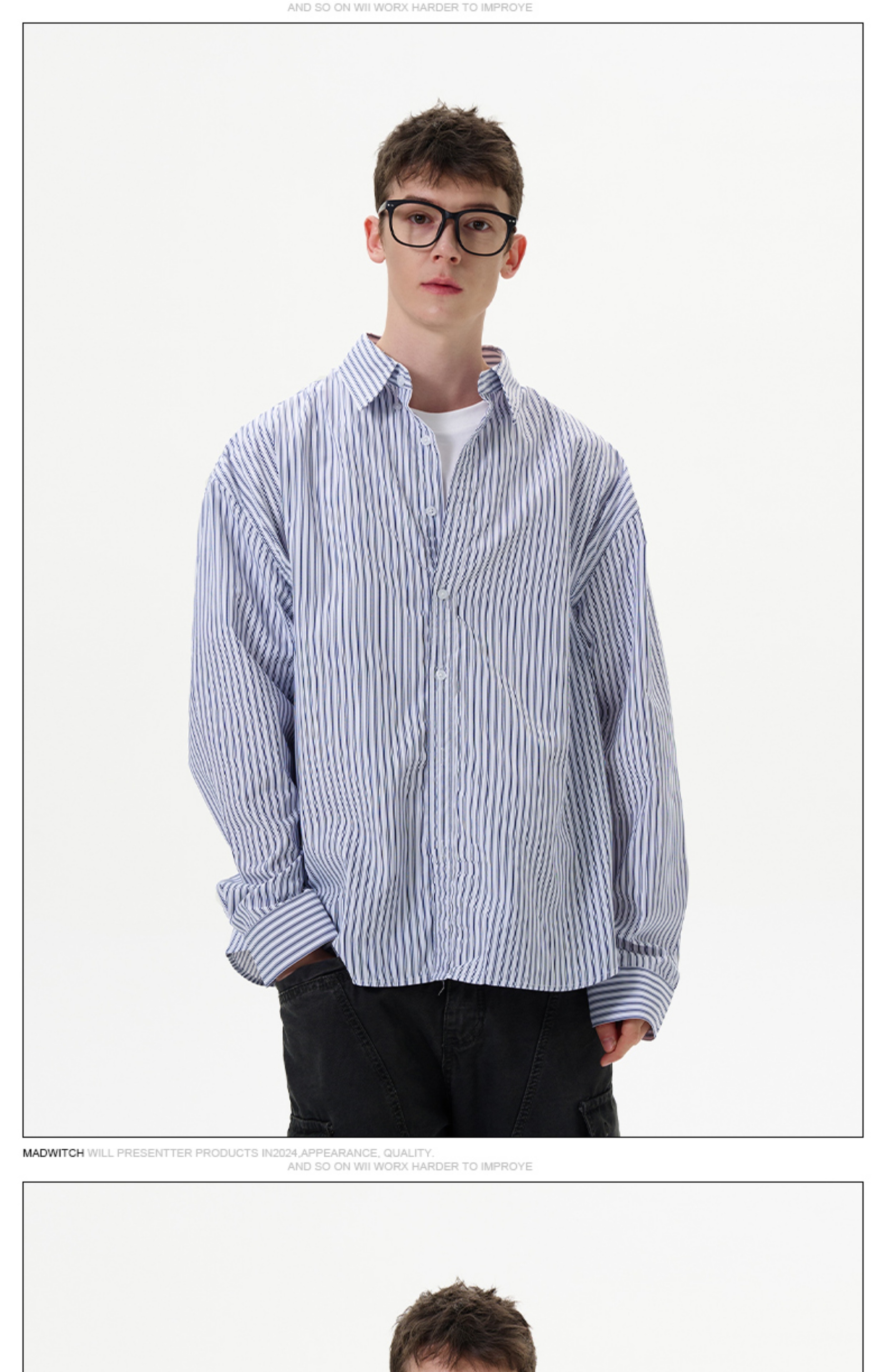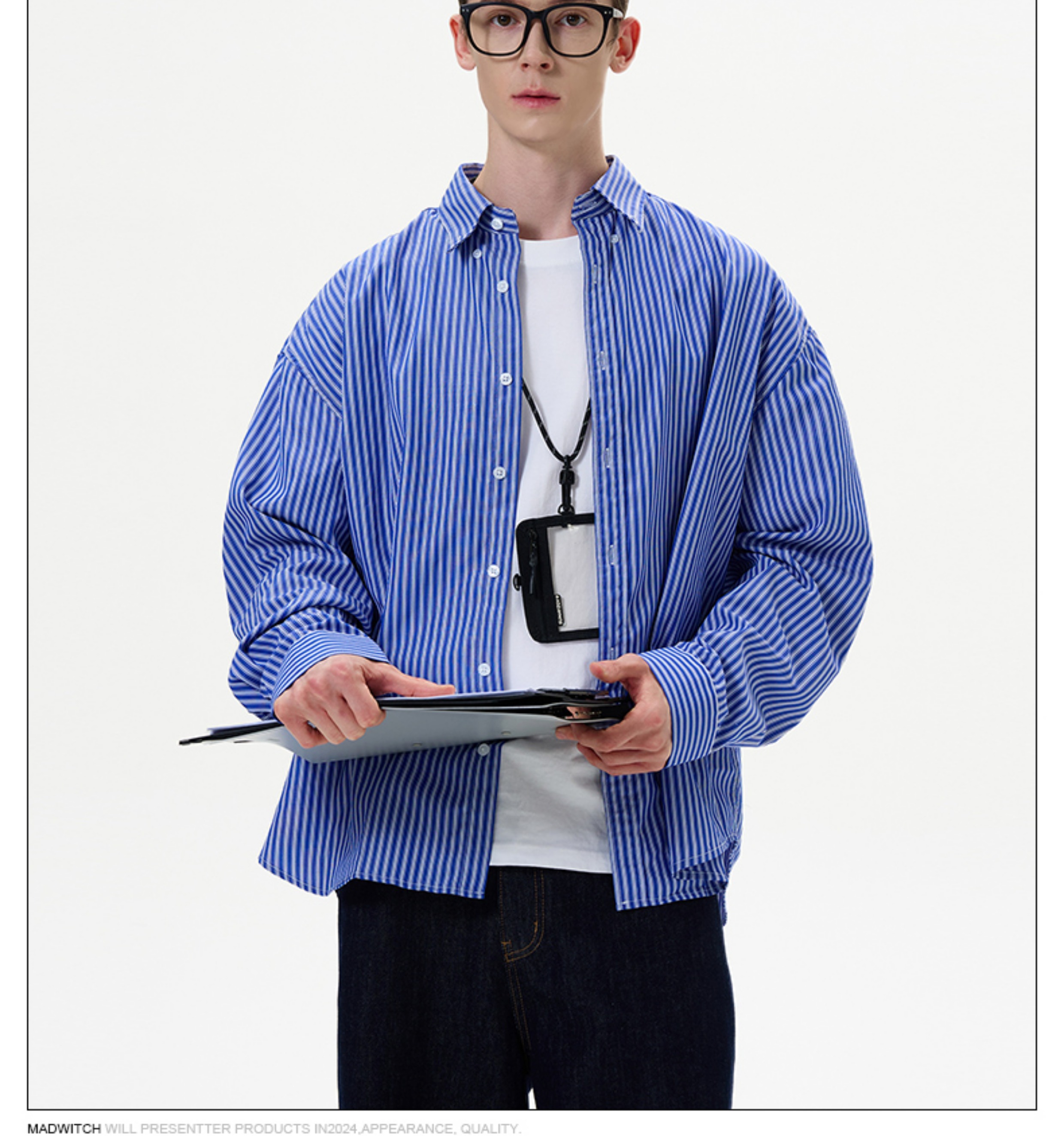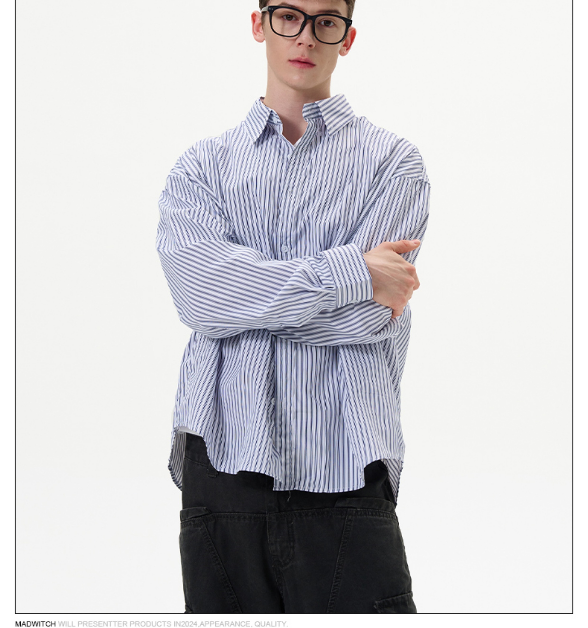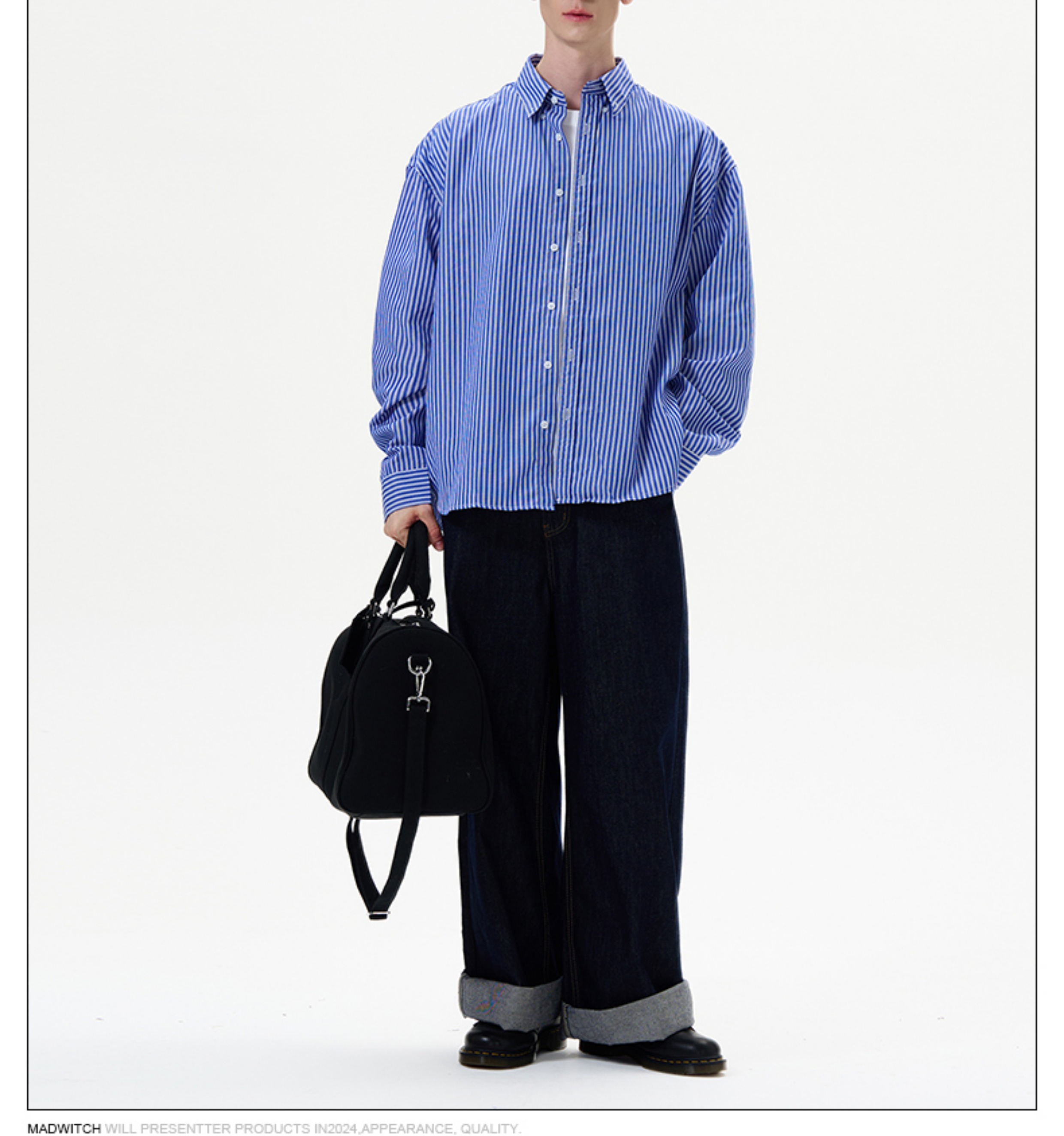 Madwitch American Retro High-Fashion Striped Shirt for Men and Women, Loose Casual Cleanfit New Top Trendy