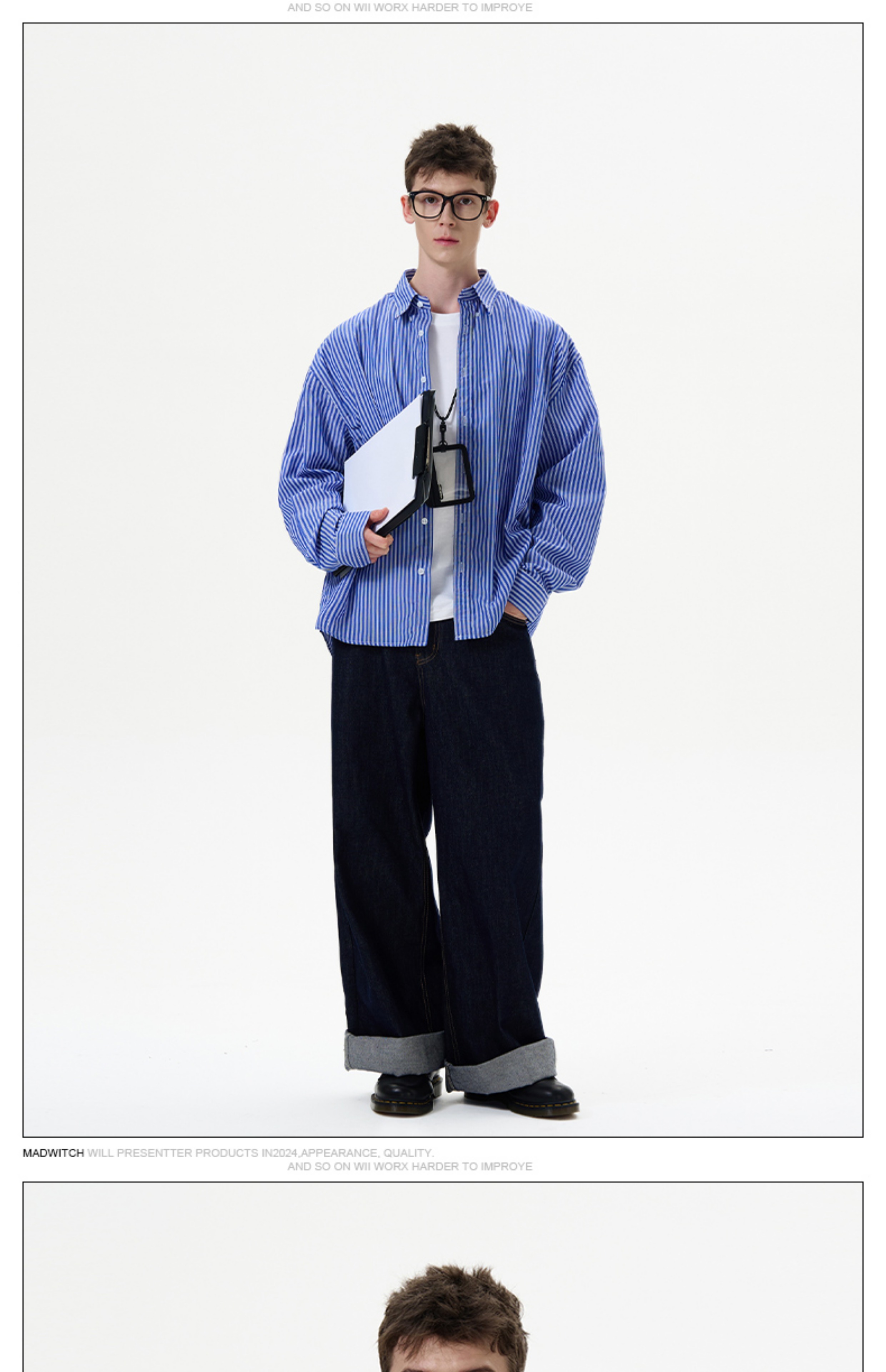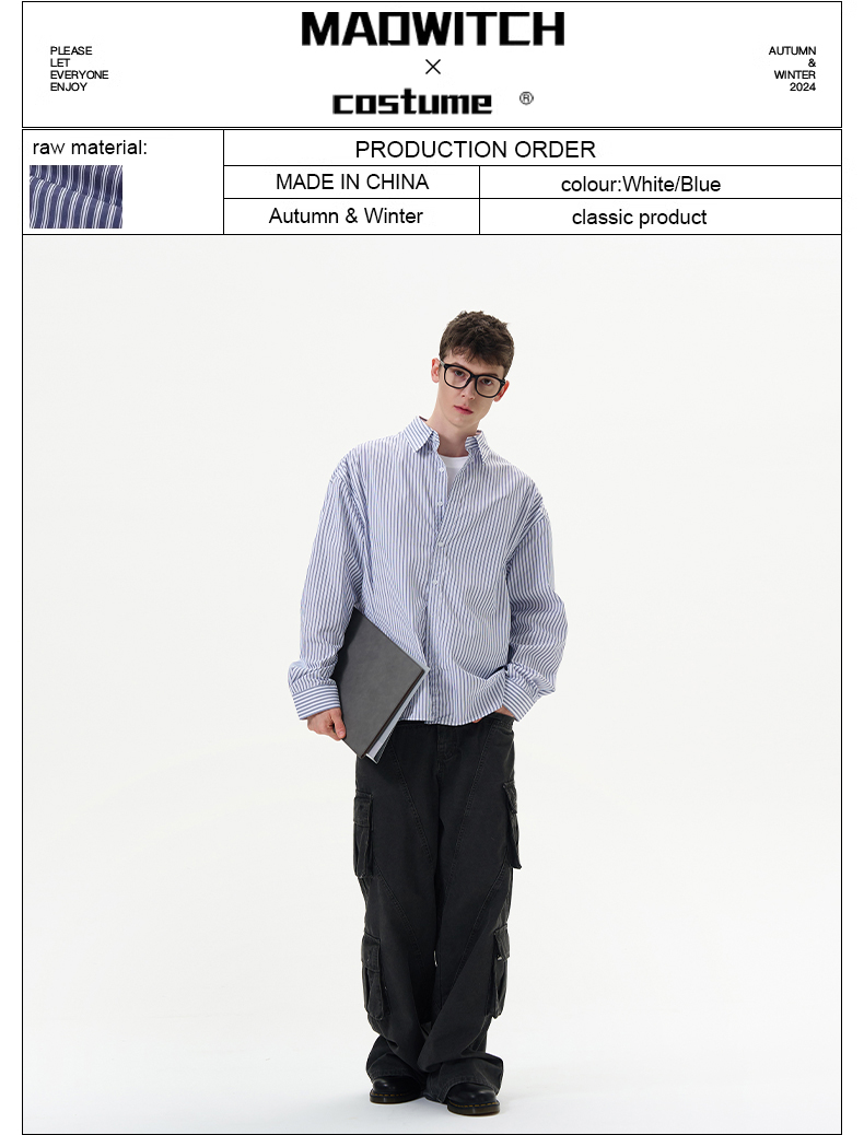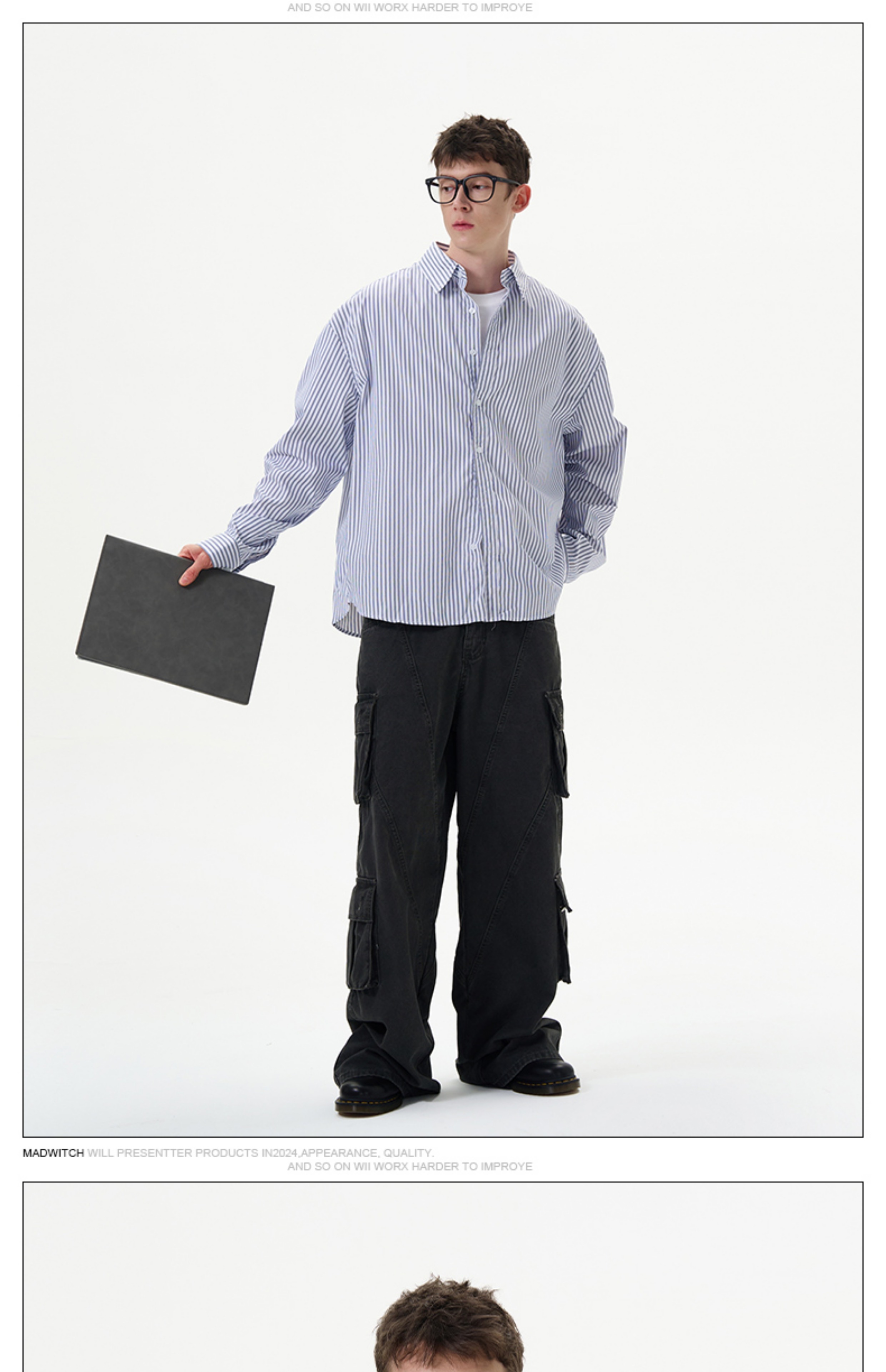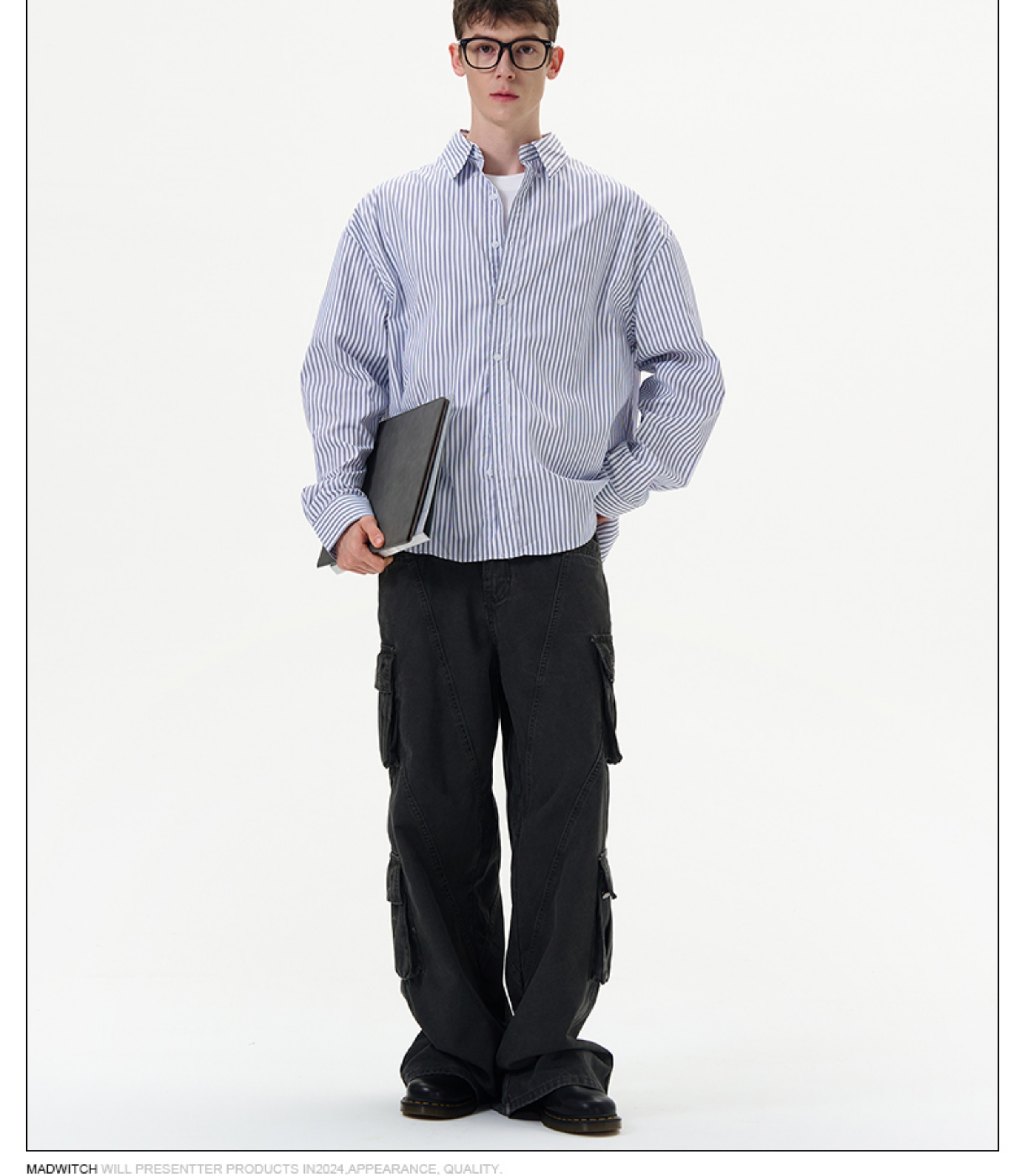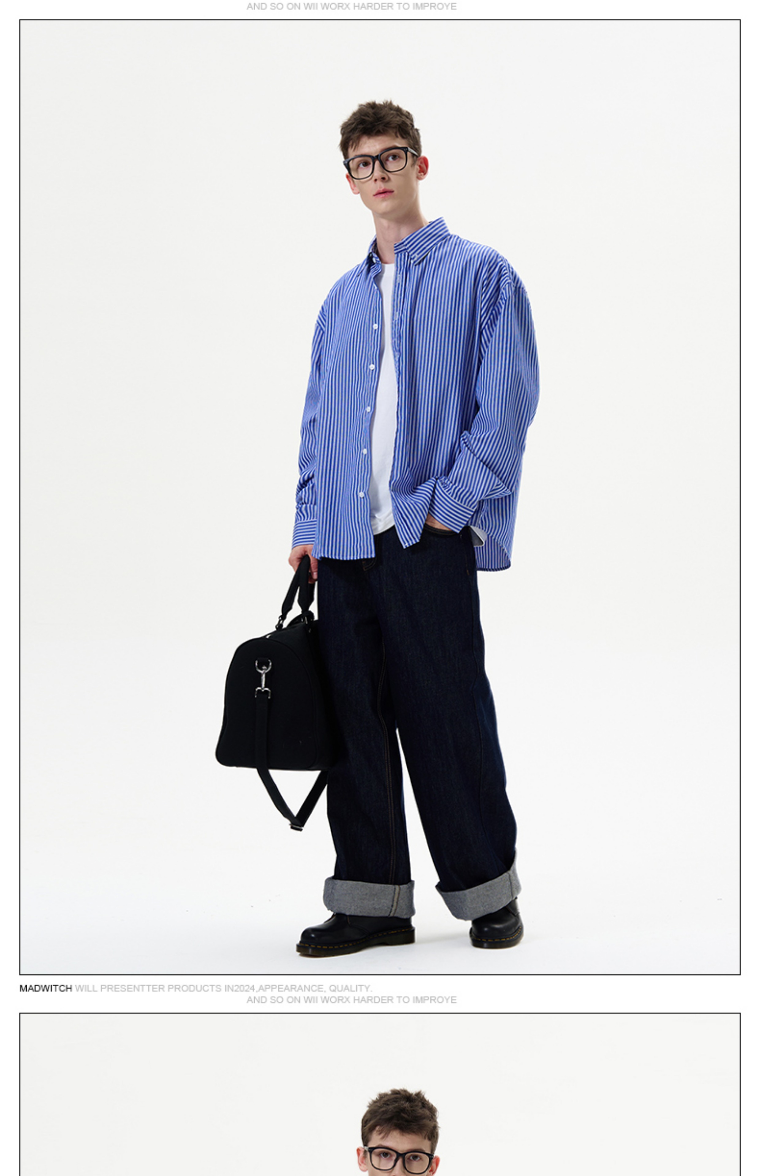 Madwitch American Retro High-Fashion Striped Shirt for Men and Women, Loose Casual Cleanfit New Top Trendy