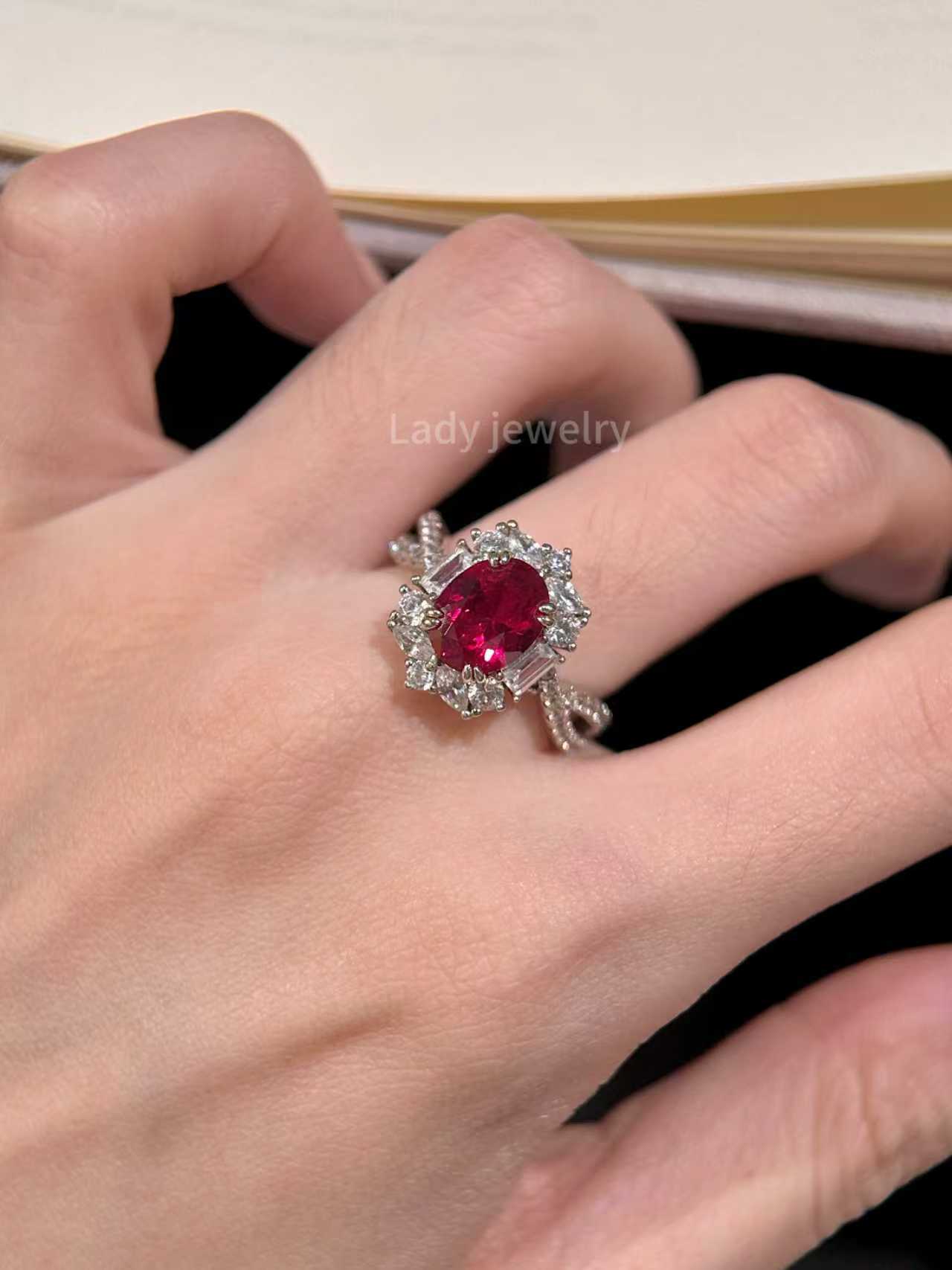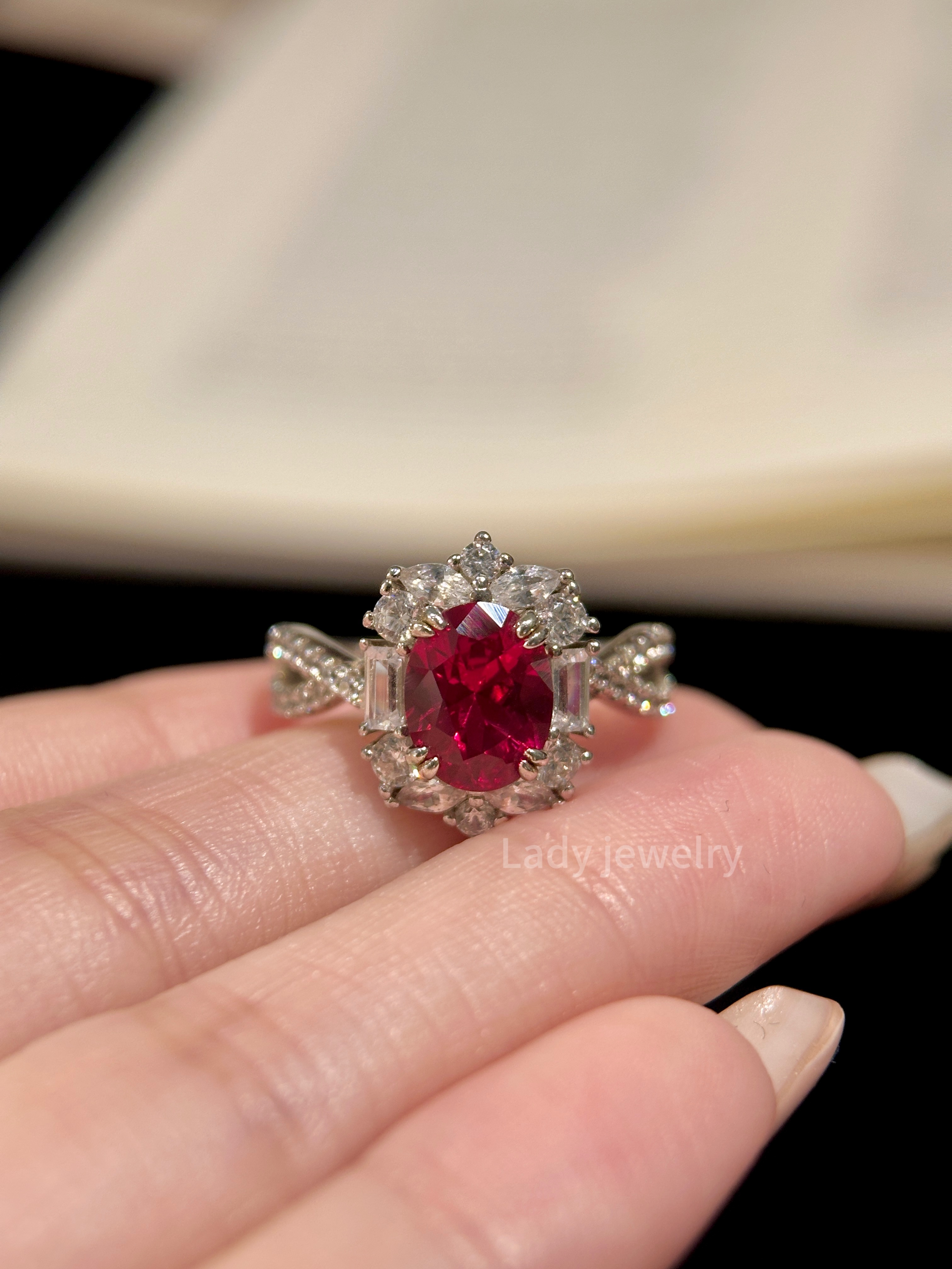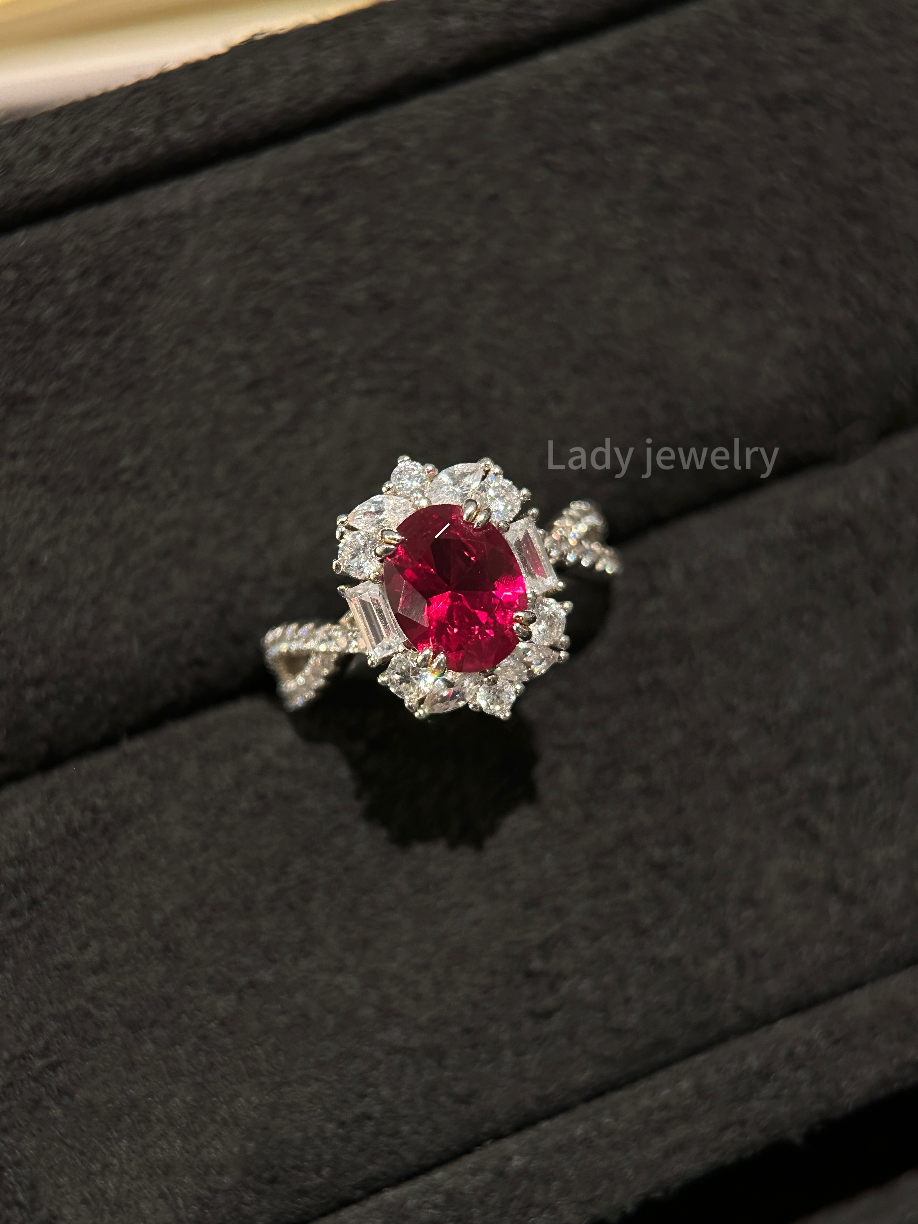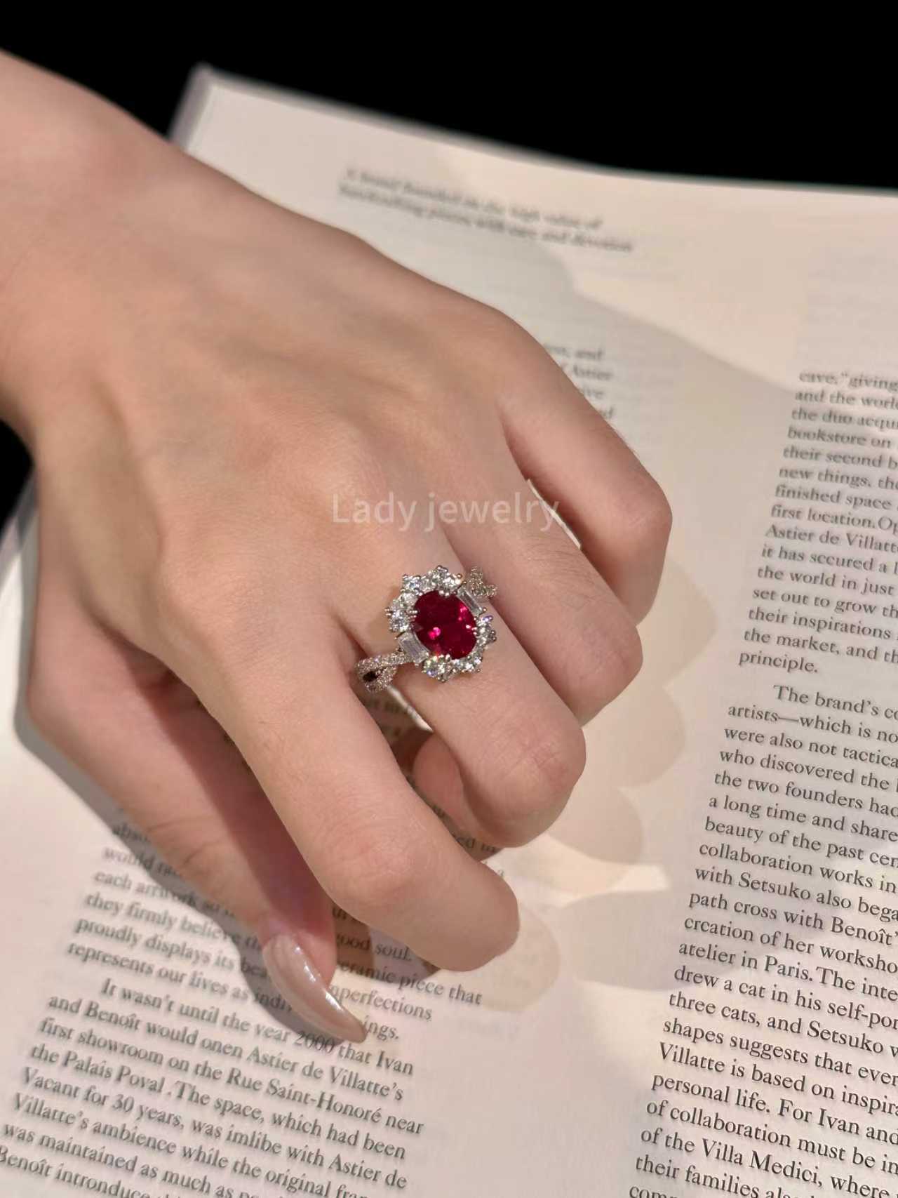 Lady [Dry Rose] High-End S925 Silver Plated with K White Gold Craftsmanship Cultivated Ruby Fashion High-End Ring