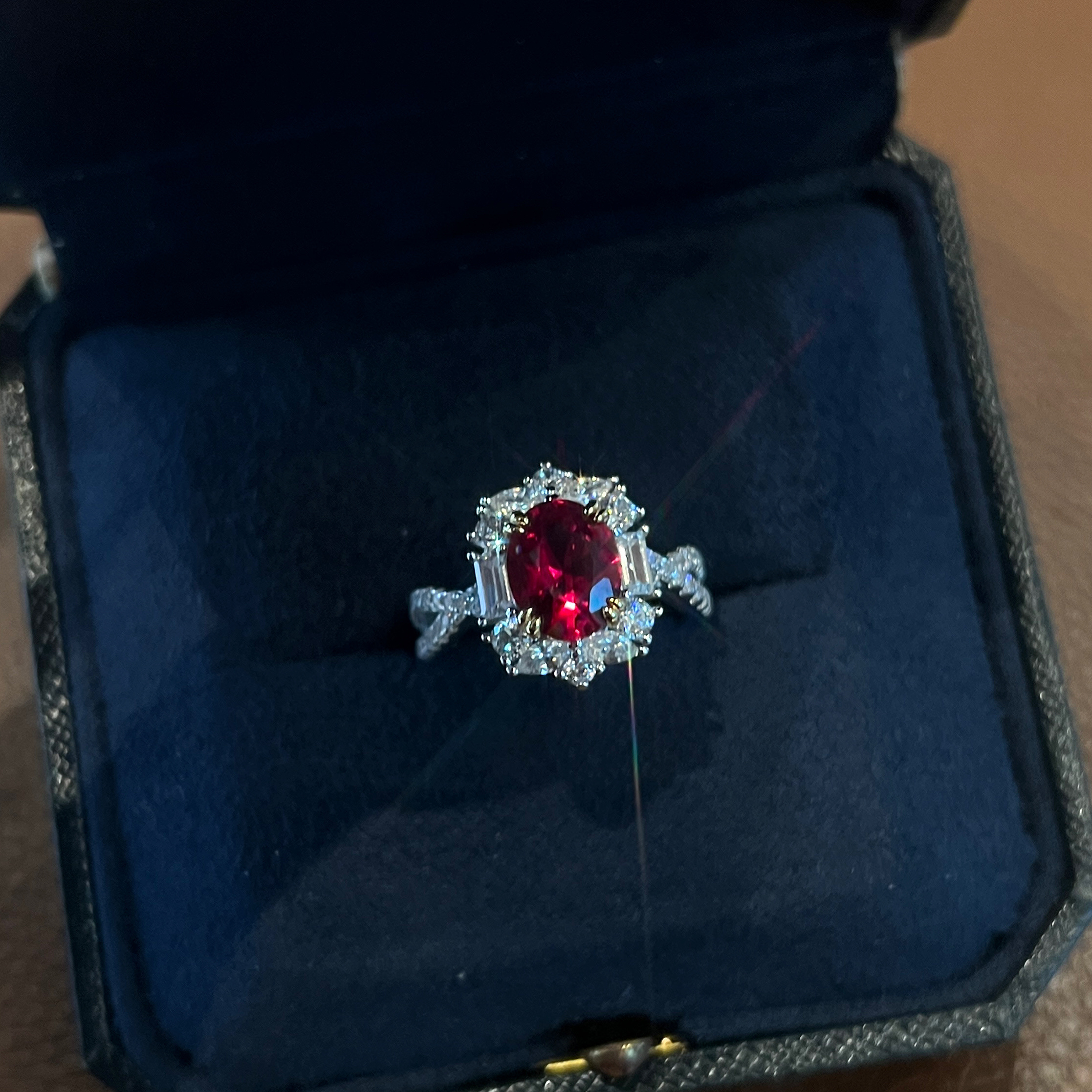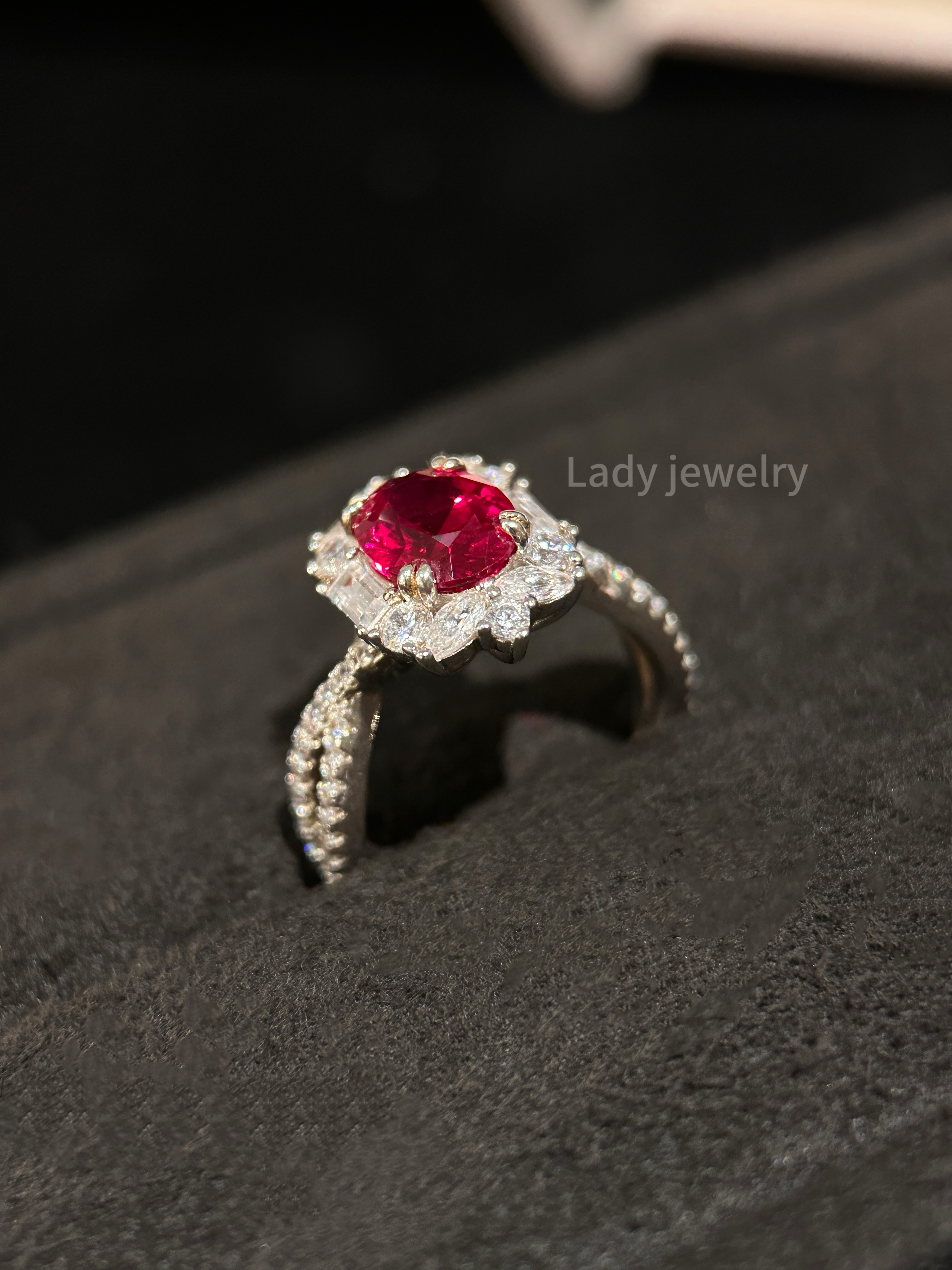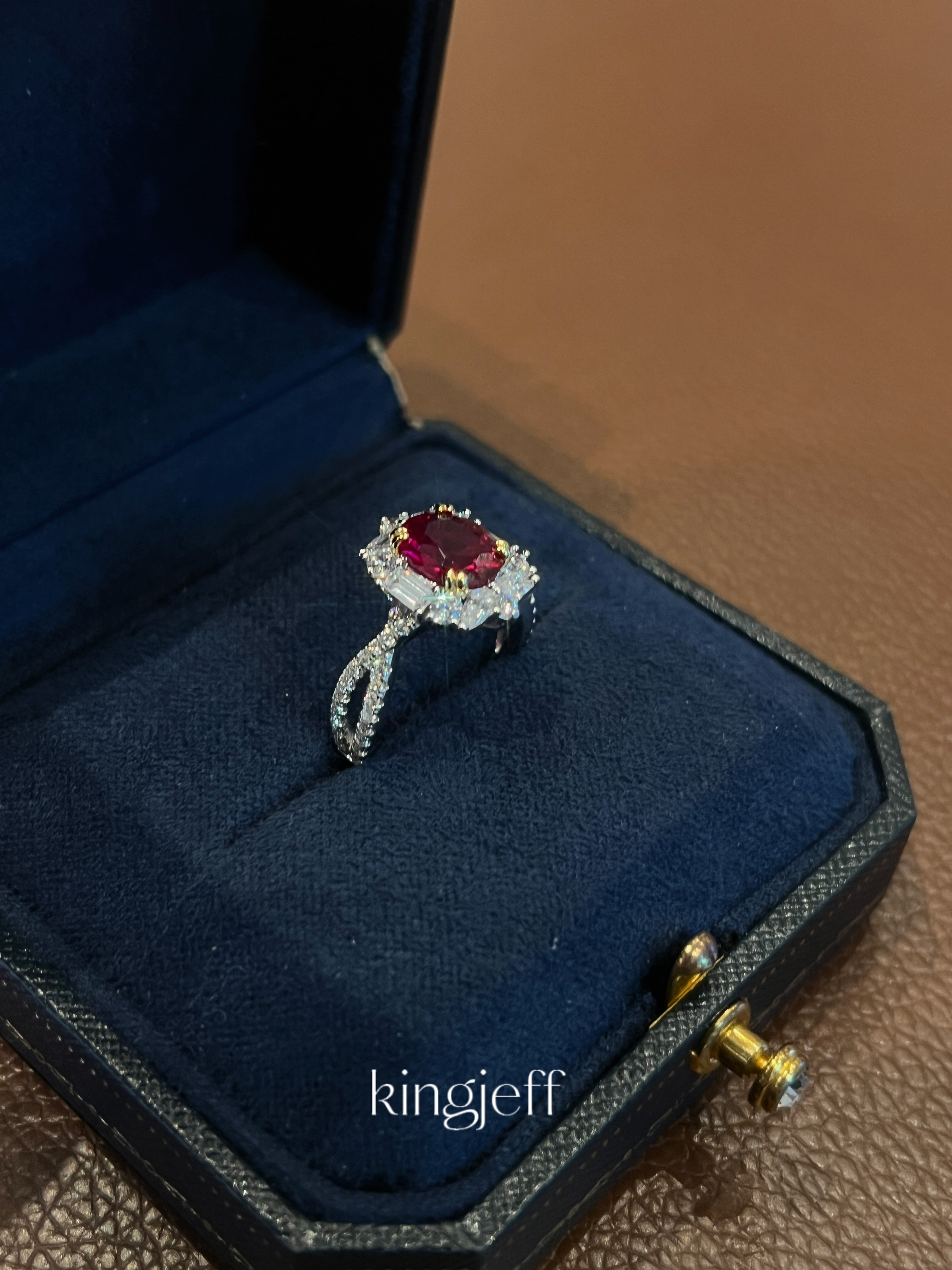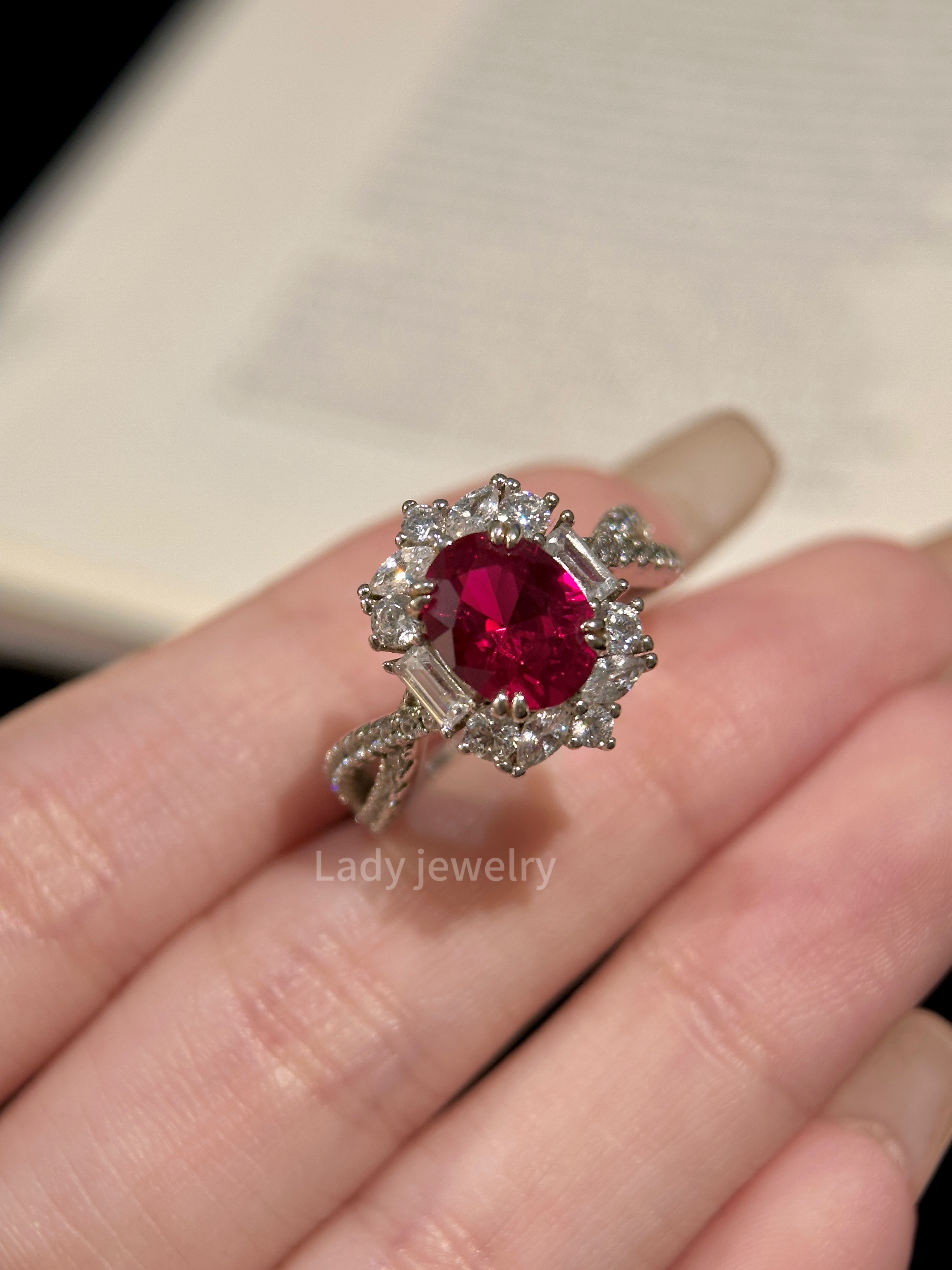 Lady [Dry Rose] High-End S925 Silver Plated with K White Gold Craftsmanship Cultivated Ruby Fashion High-End Ring