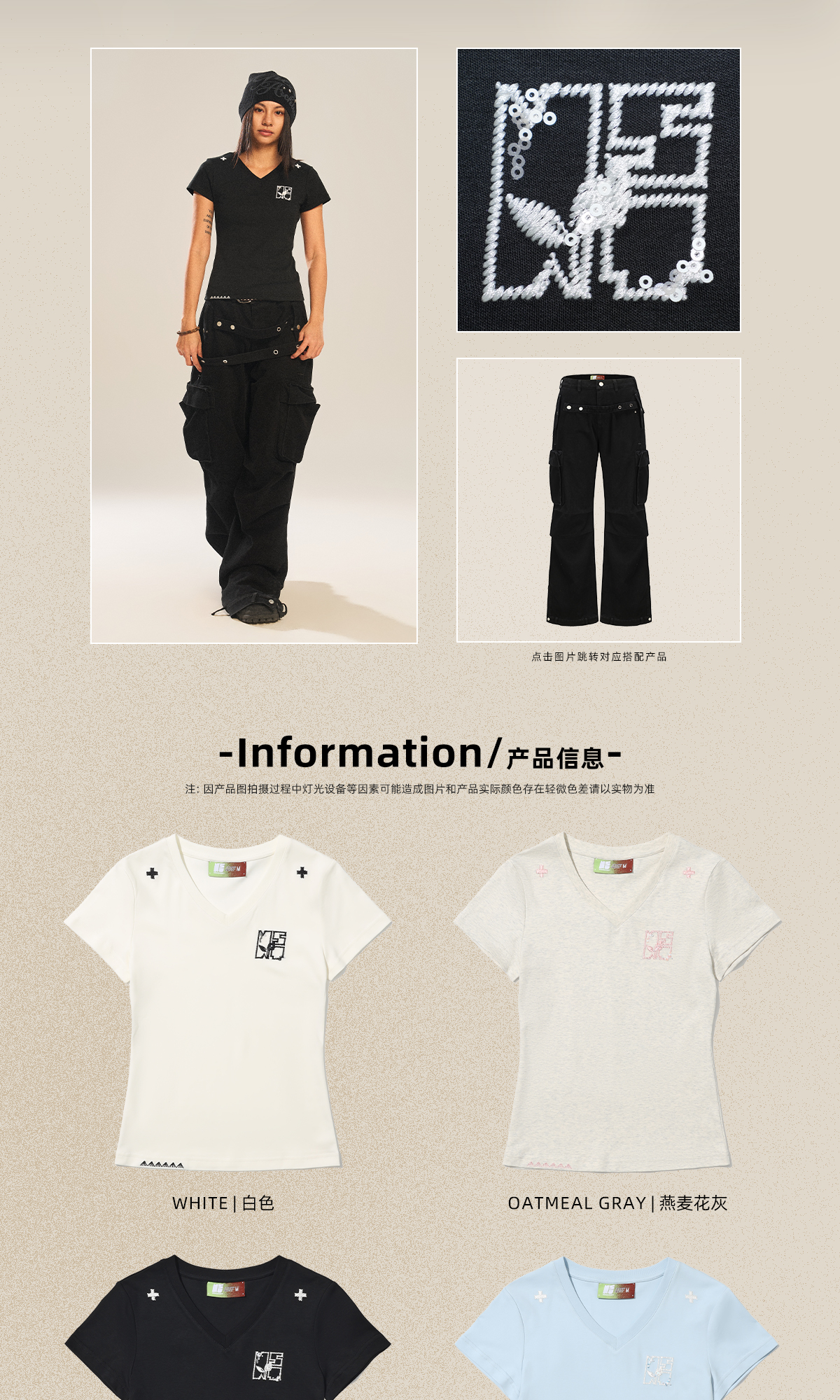 Nstnew Start Germination Project New Summer Sequin Line Versatile V-Neck Slim Short-Sleeve T-Shirt for Women, Unisex