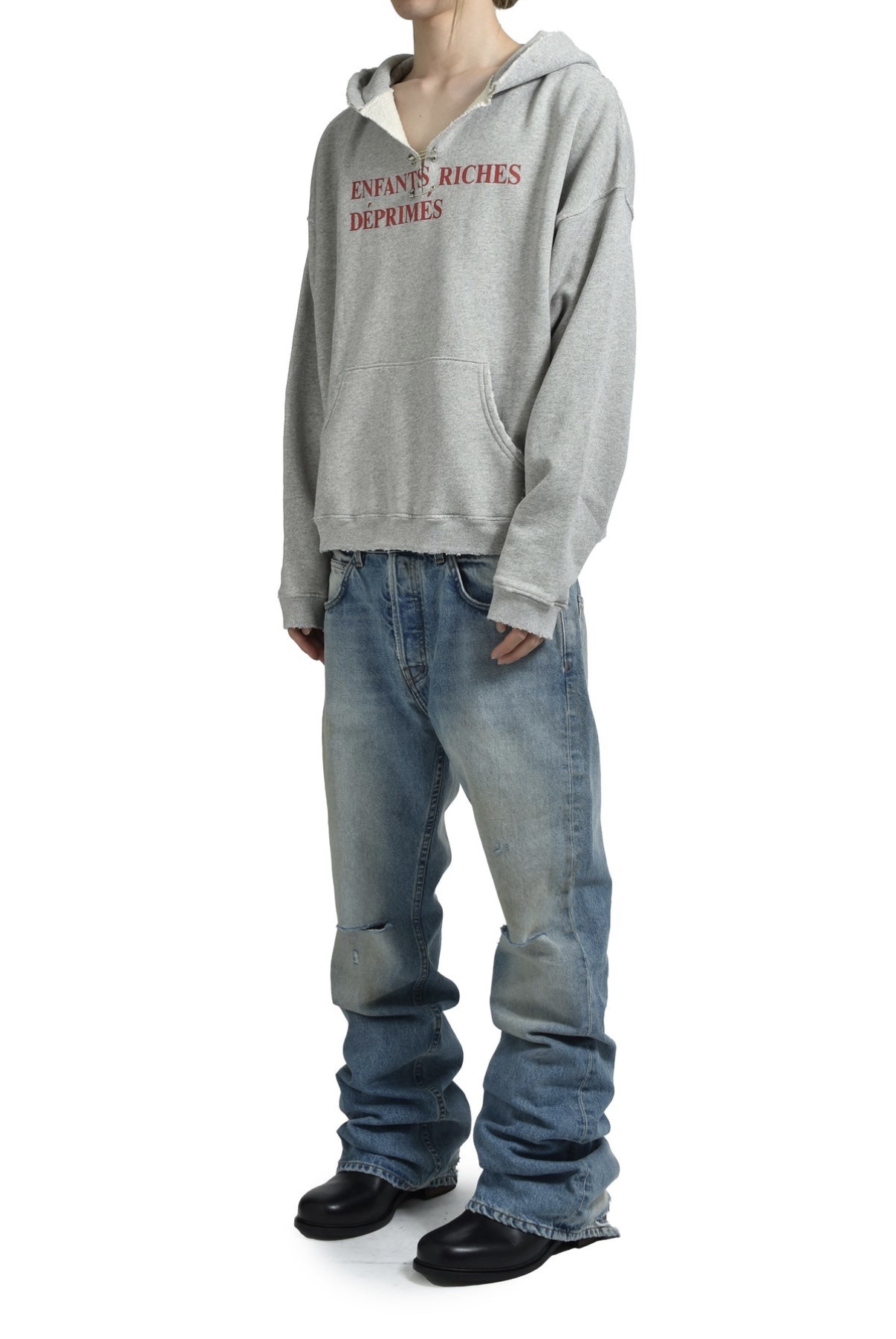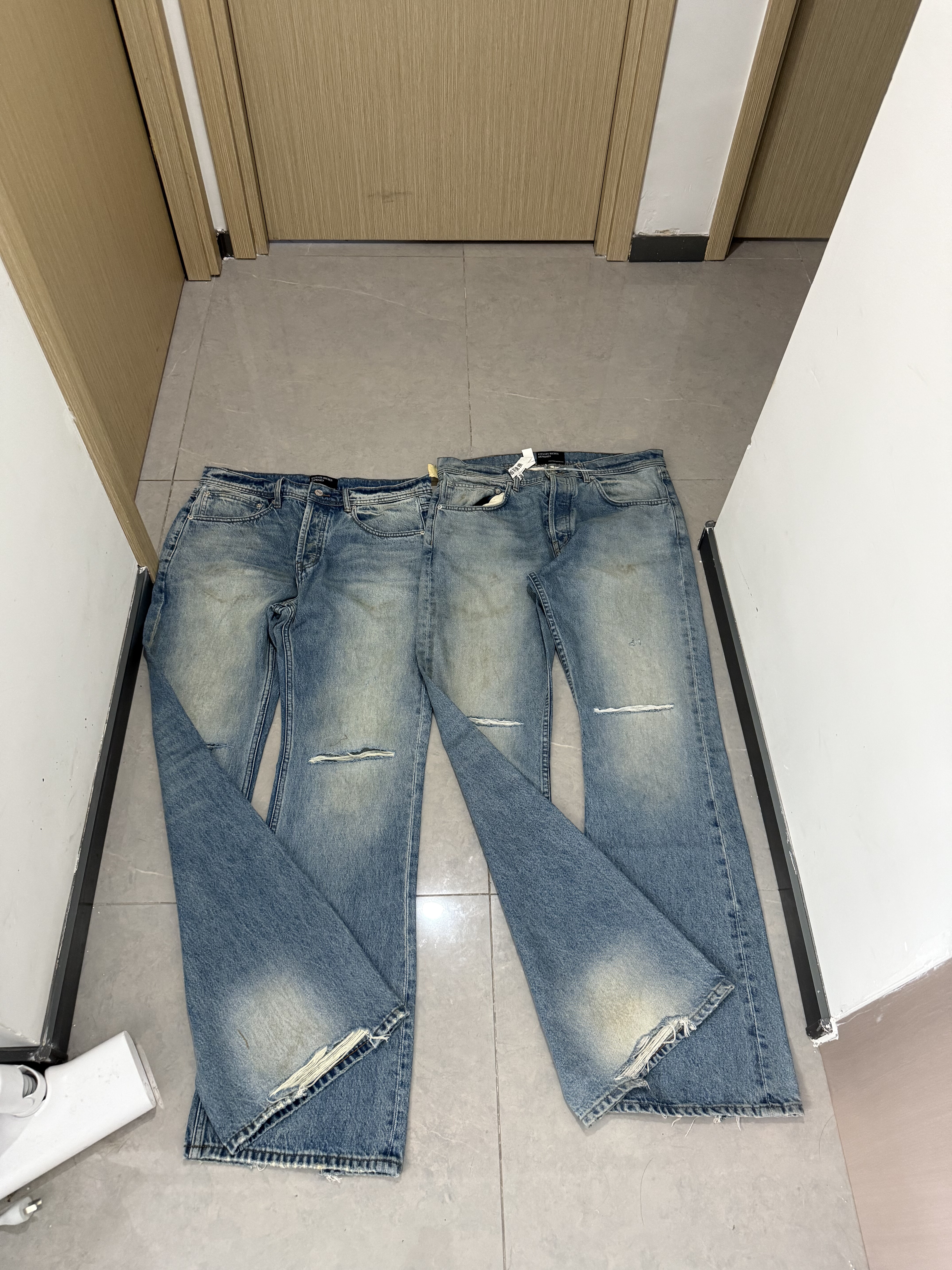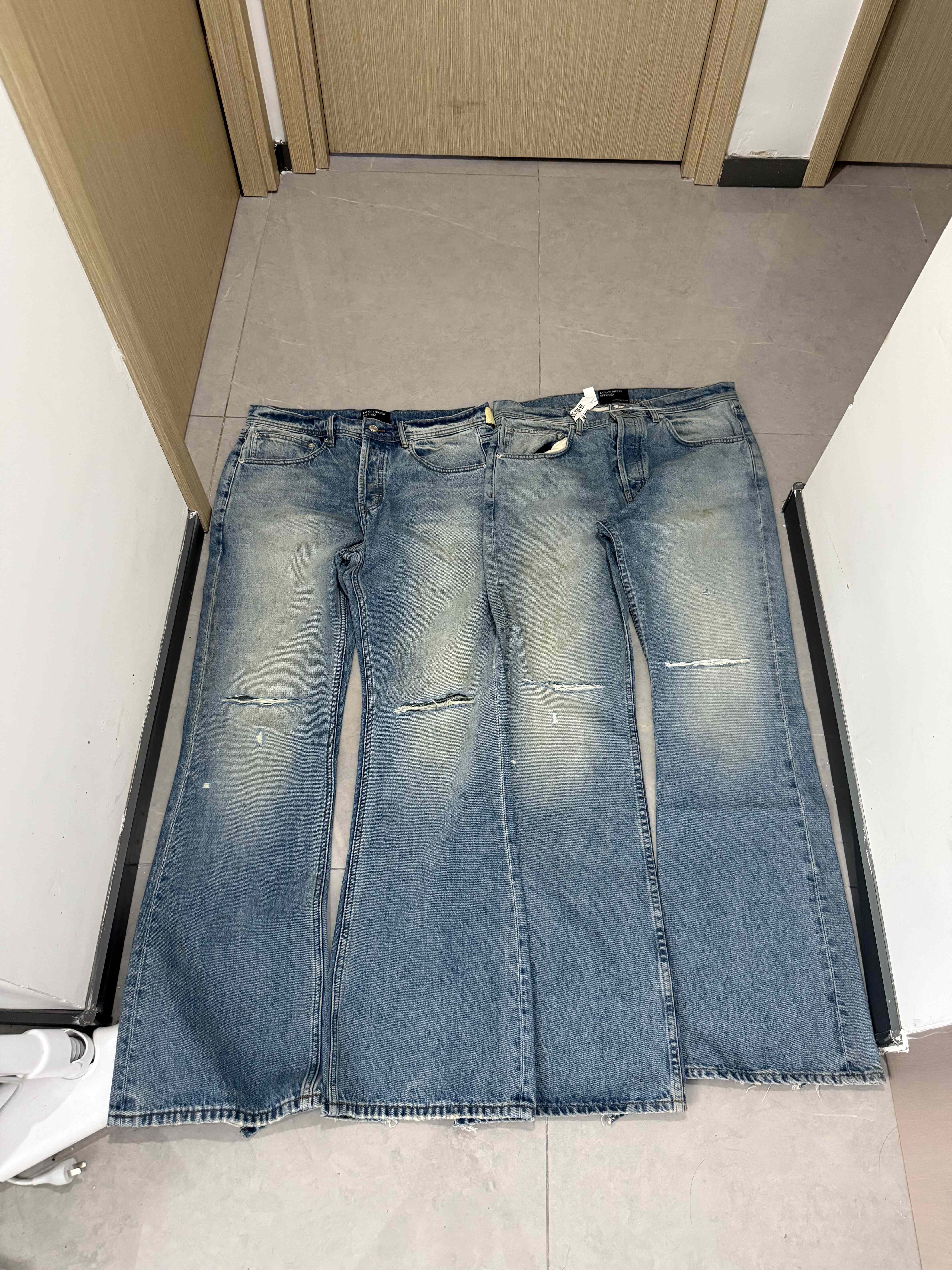 In Stock Erd25Ss Melancholic Rich Second-Generation Style Washed Knife-Cut Distressed Mud-Dyed Flared Loose Jeans