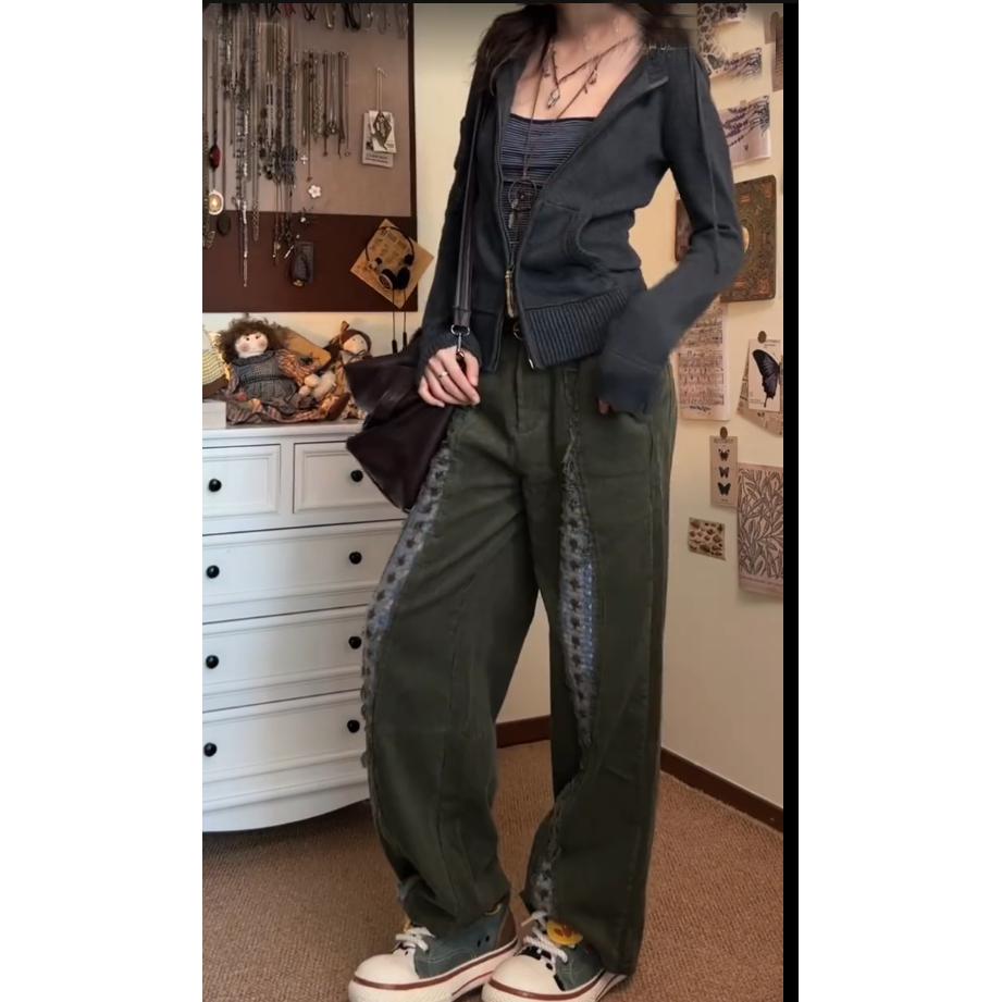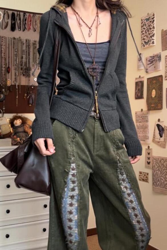 Correct Version】Original Retro Patchwork Zipper Hoodie Short Slim-Fit Knitted Sweater Stand-Up Collar Cardigan Jacket for Women