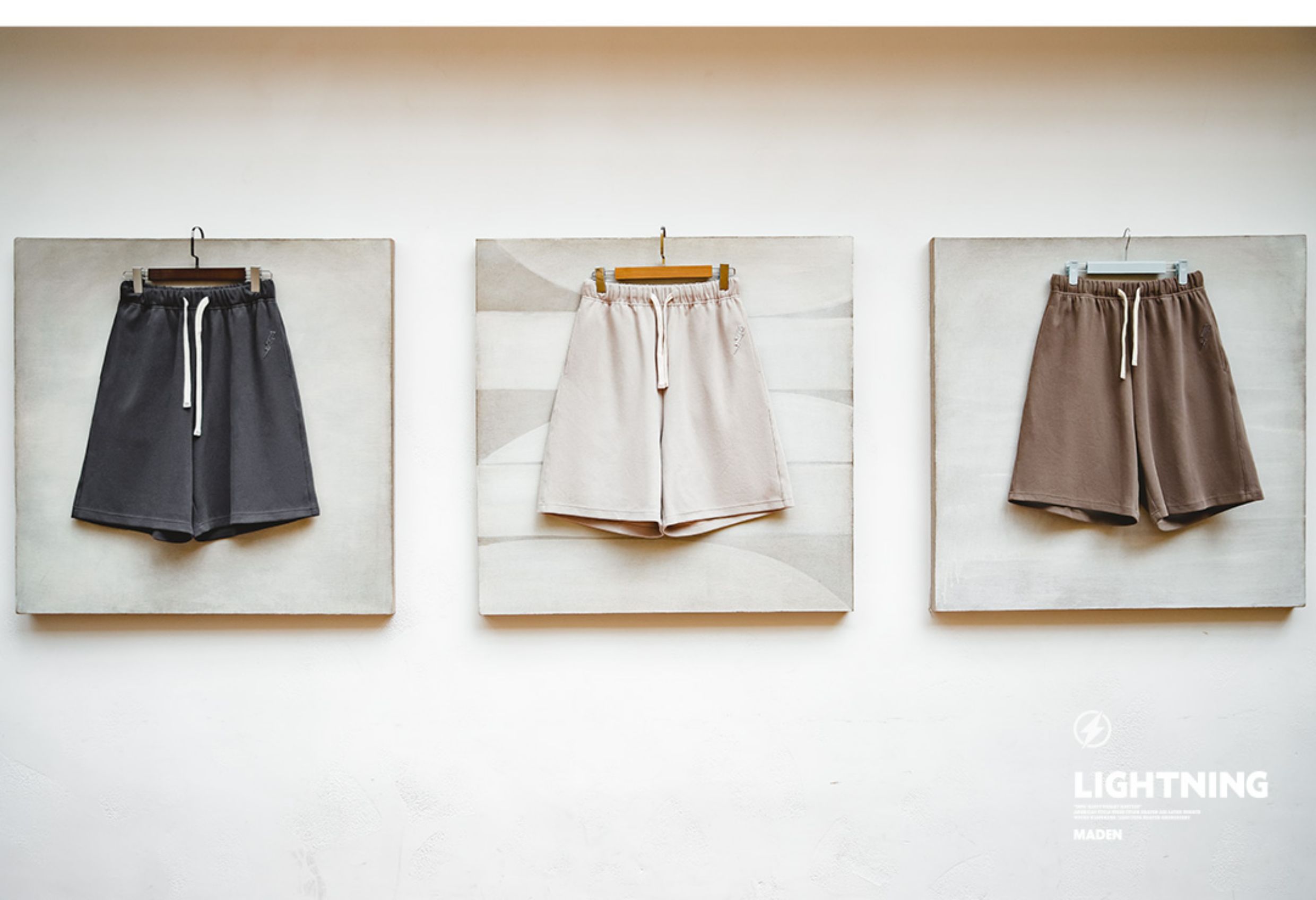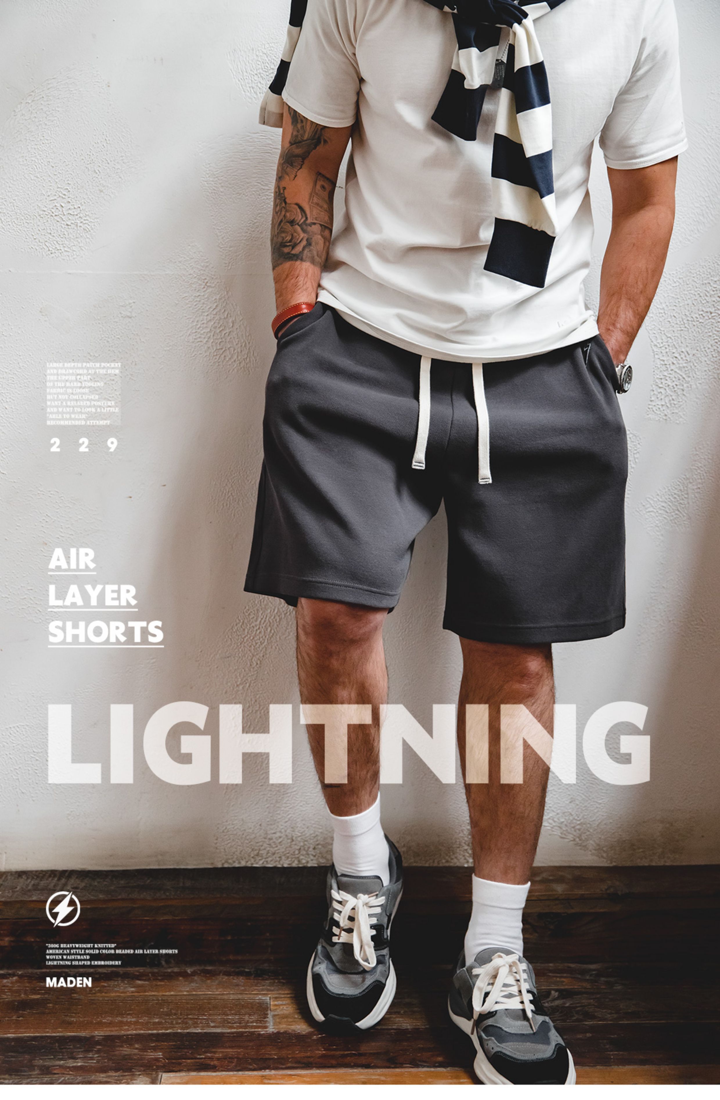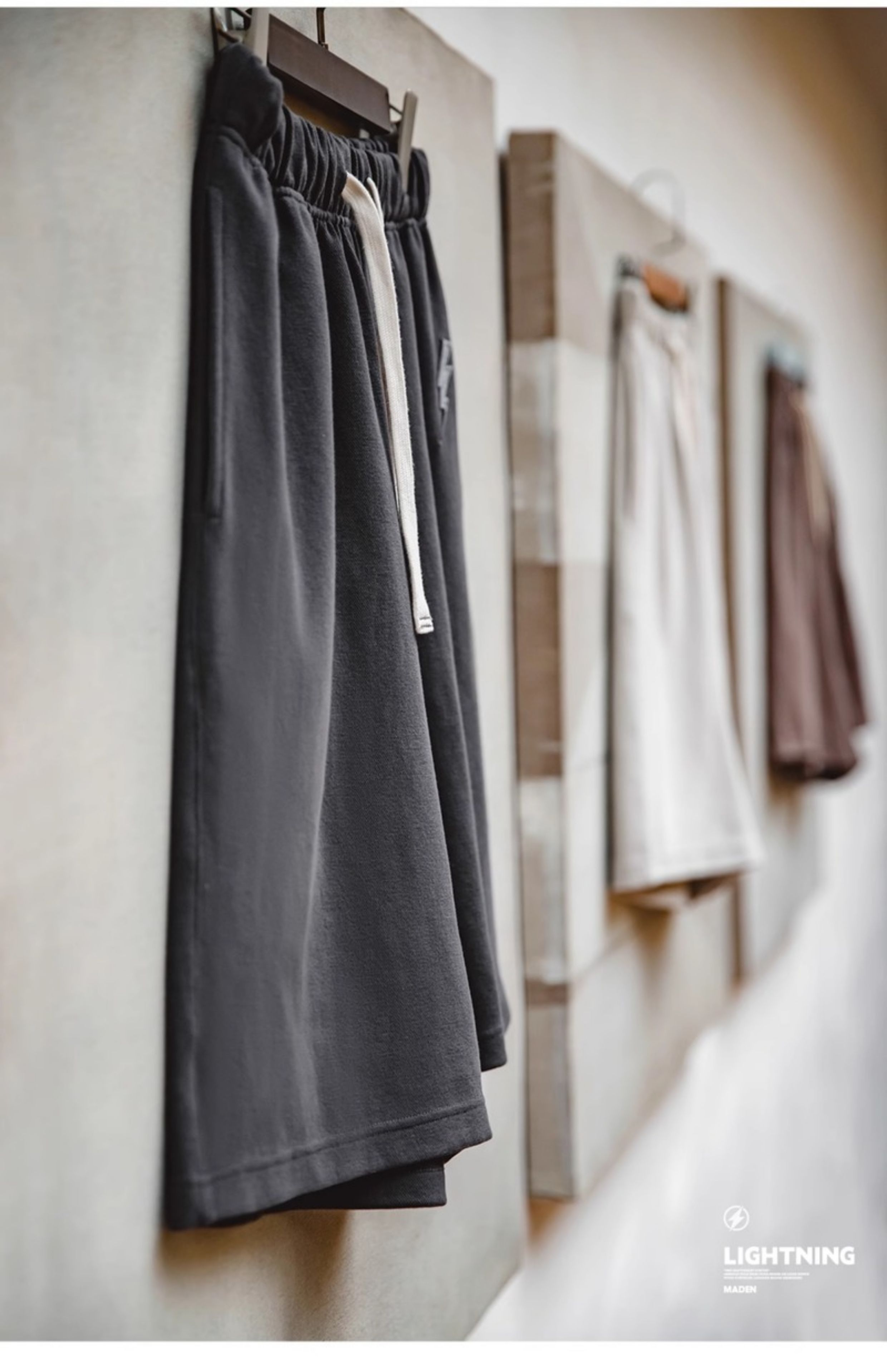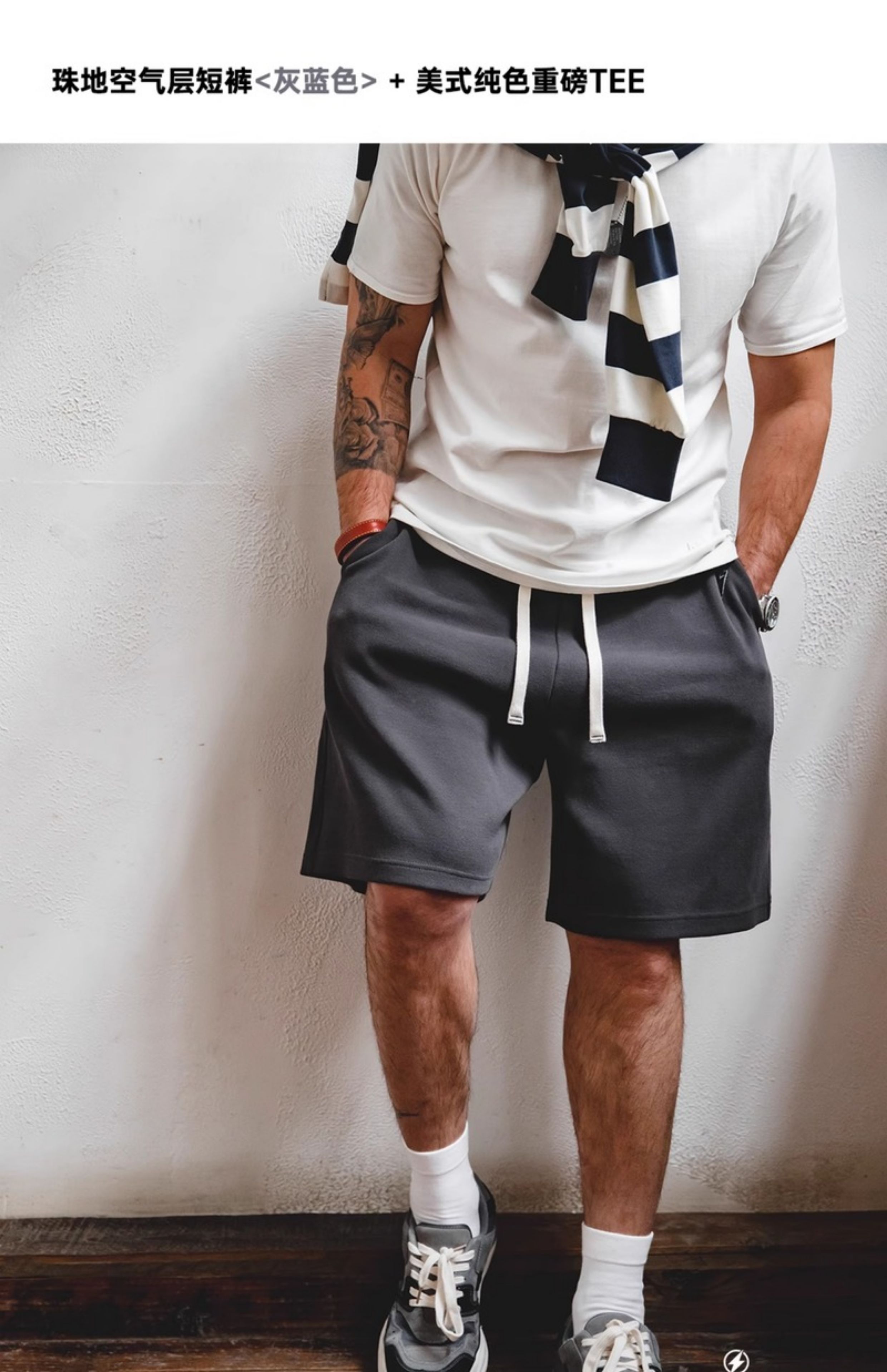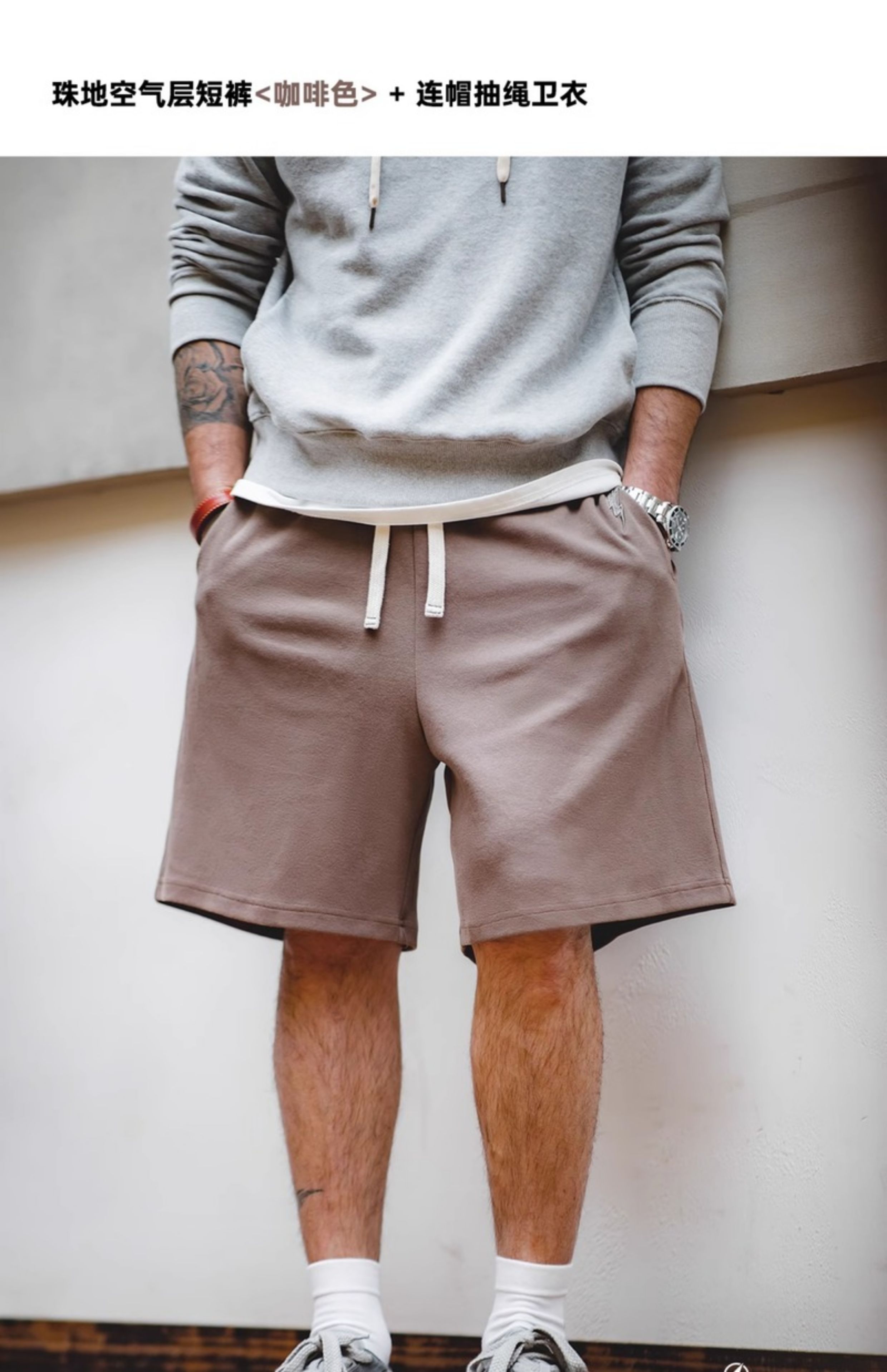 Madden Workwear American-Style Gray and White Straight-Leg Heavy Shorts for Outerwear, Knitted Loose-Fitting Sports Mid-Length Shorts for Men in Summer