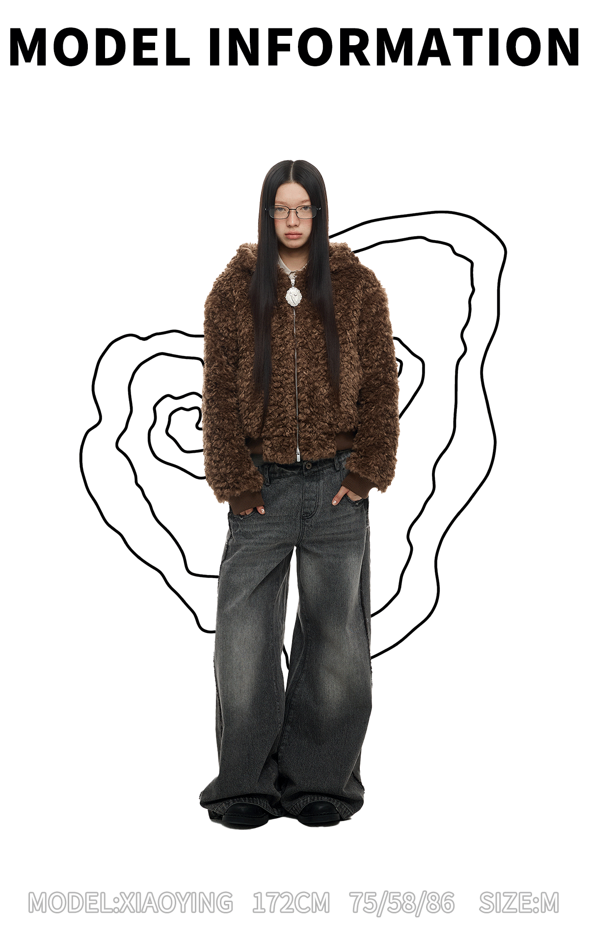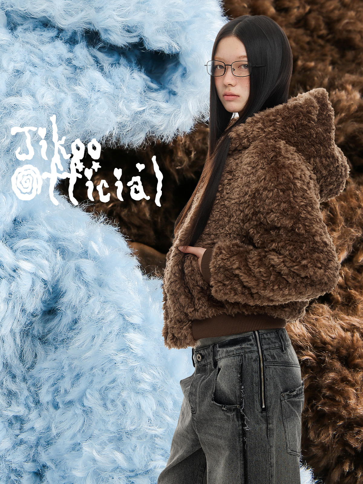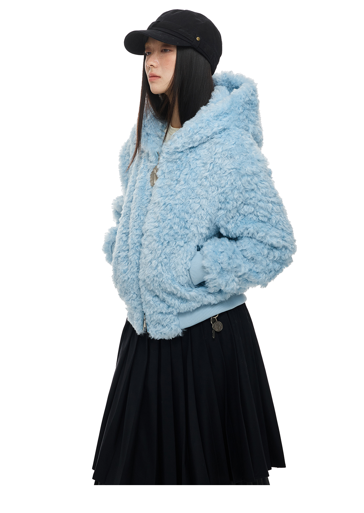 Jikoo【Ulysses' Dinner】Imitation Wool Warm and Elegant Women's Winter Thickened Hooded Short Fur Coat
