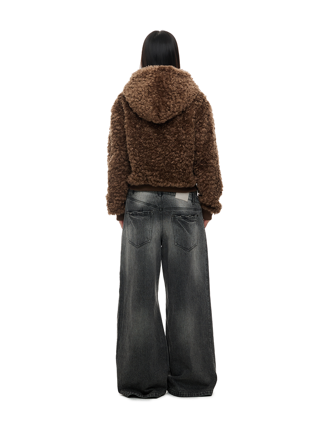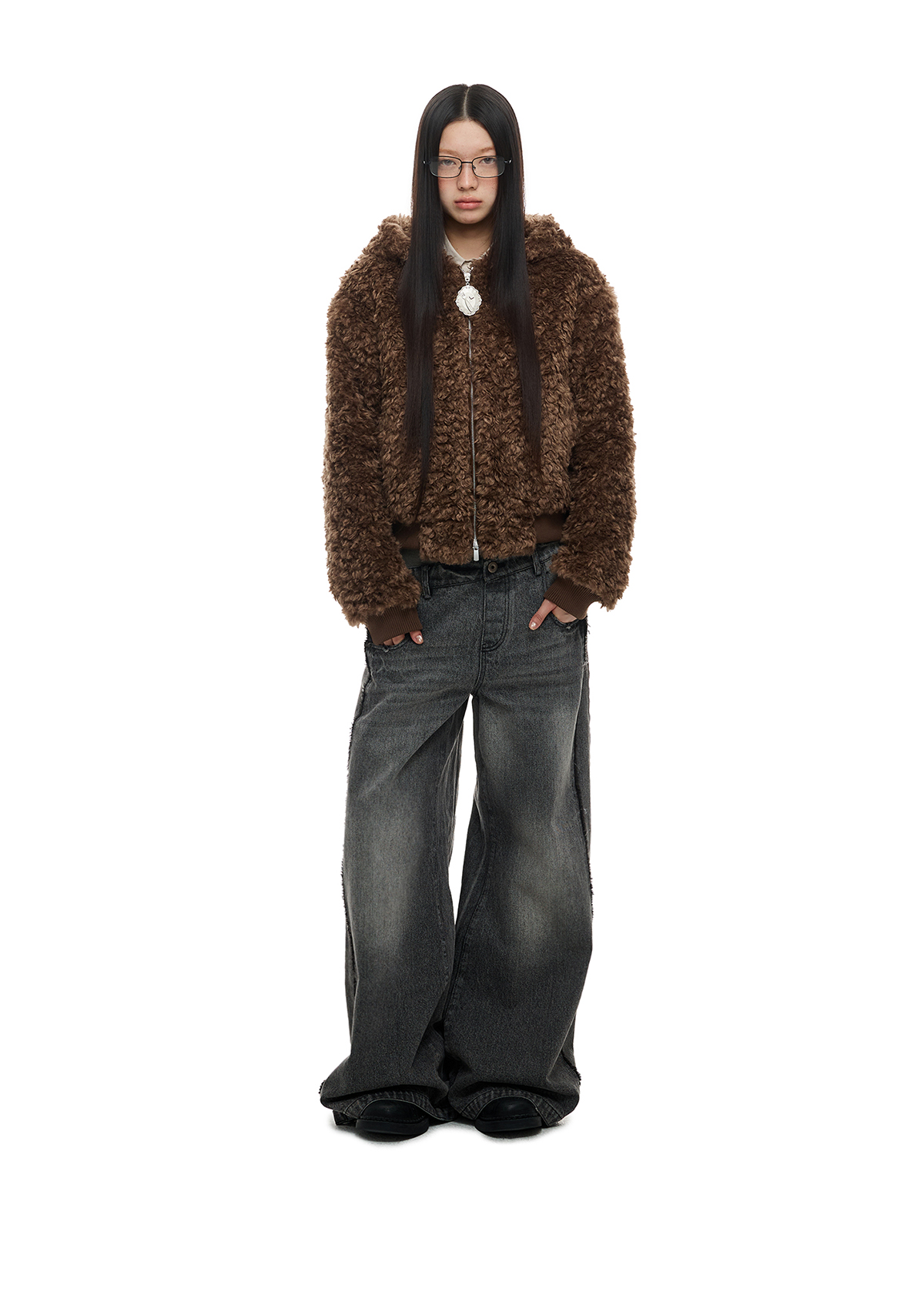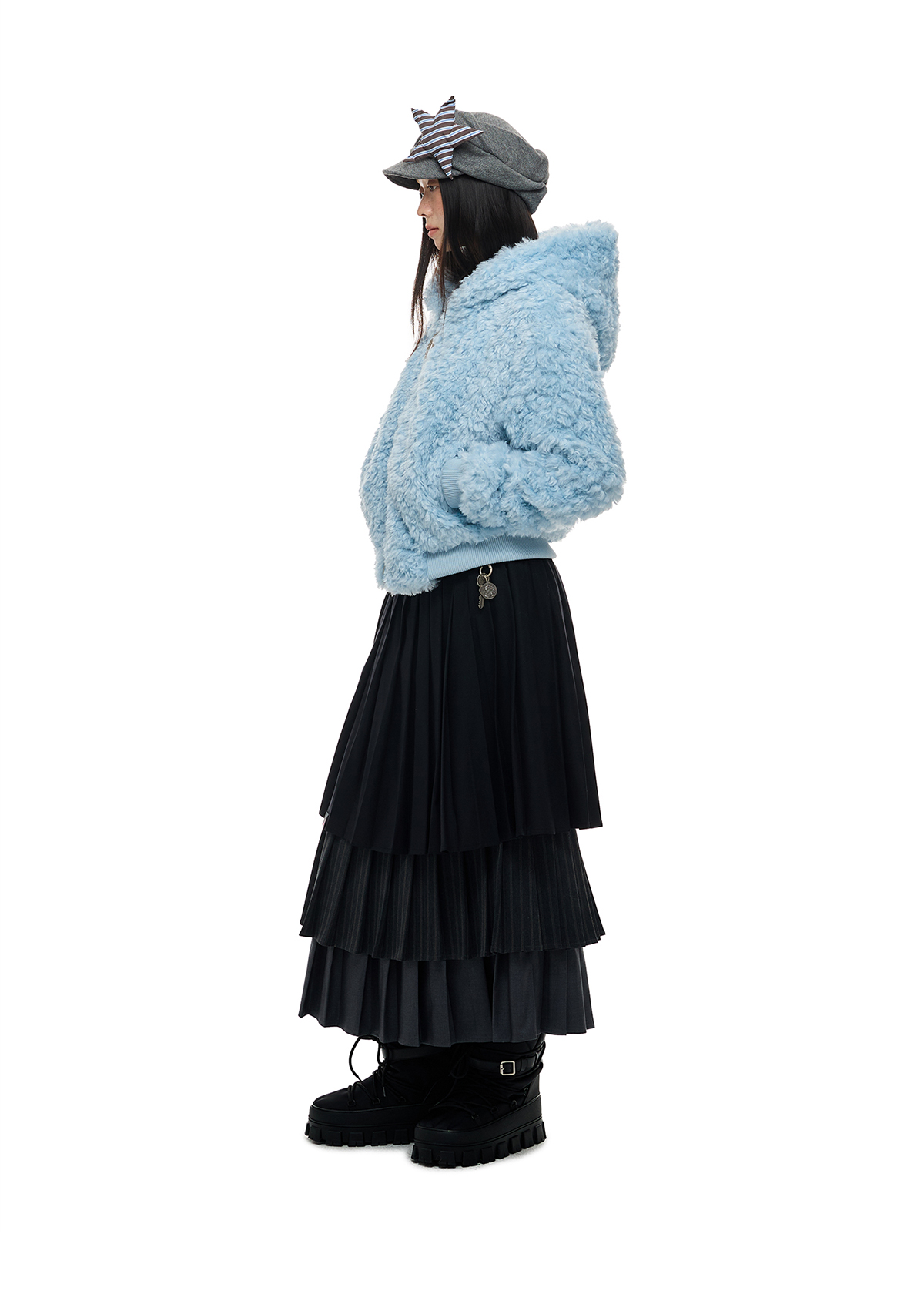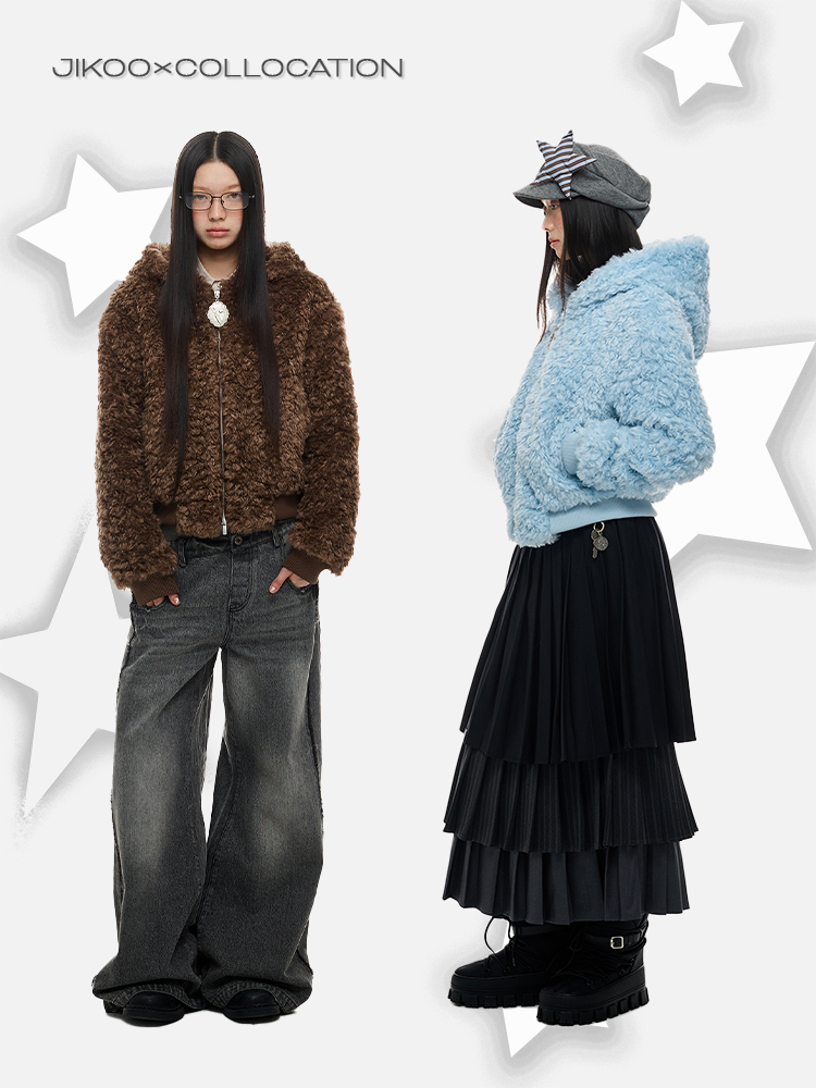 Jikoo【Ulysses' Dinner】Imitation Wool Warm and Elegant Women's Winter Thickened Hooded Short Fur Coat