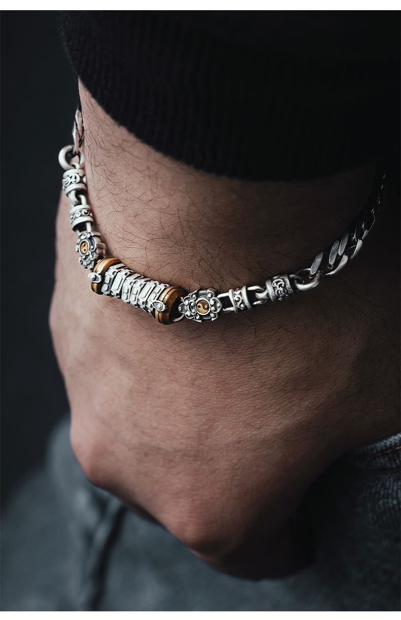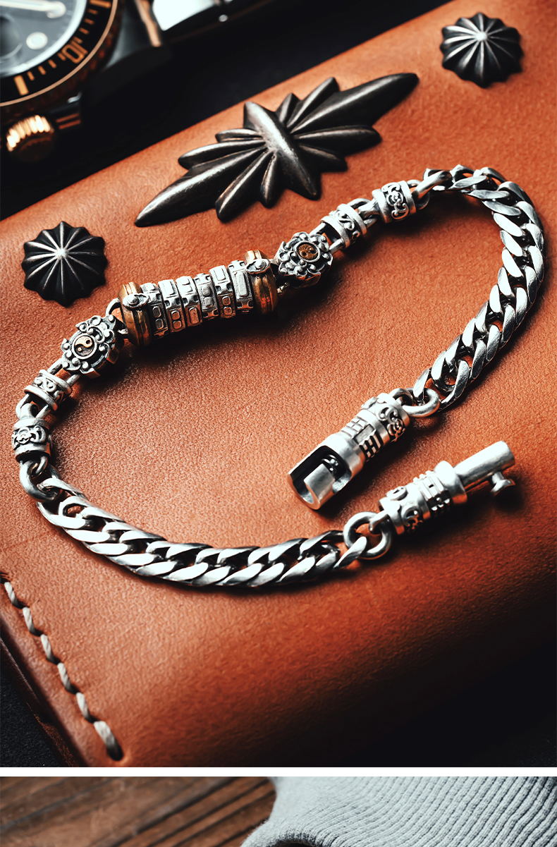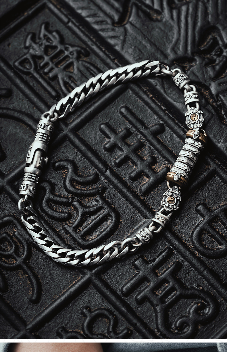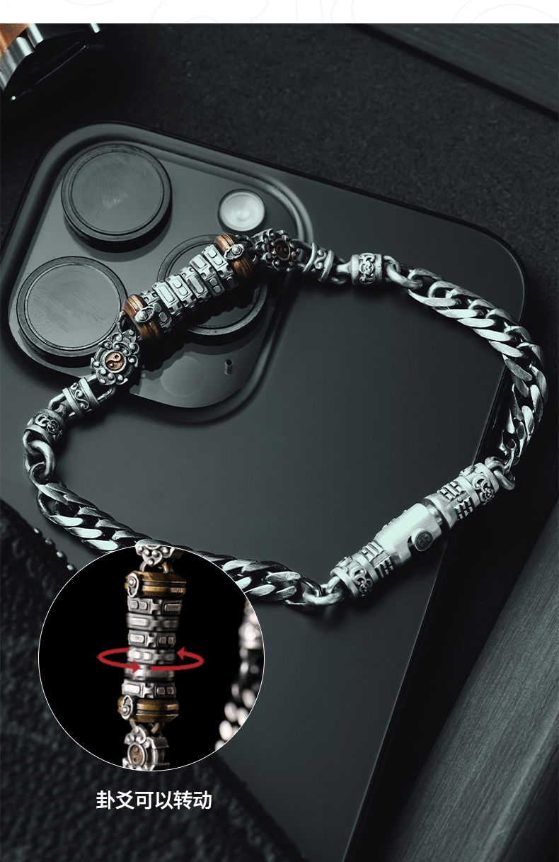 Zhuojiang Tianji Bracelet for Men, Taoist Original Chinese Style Stress Relief Accessory, Enlightenment Series Silver Jewelry, Trendy Bracelet for Men