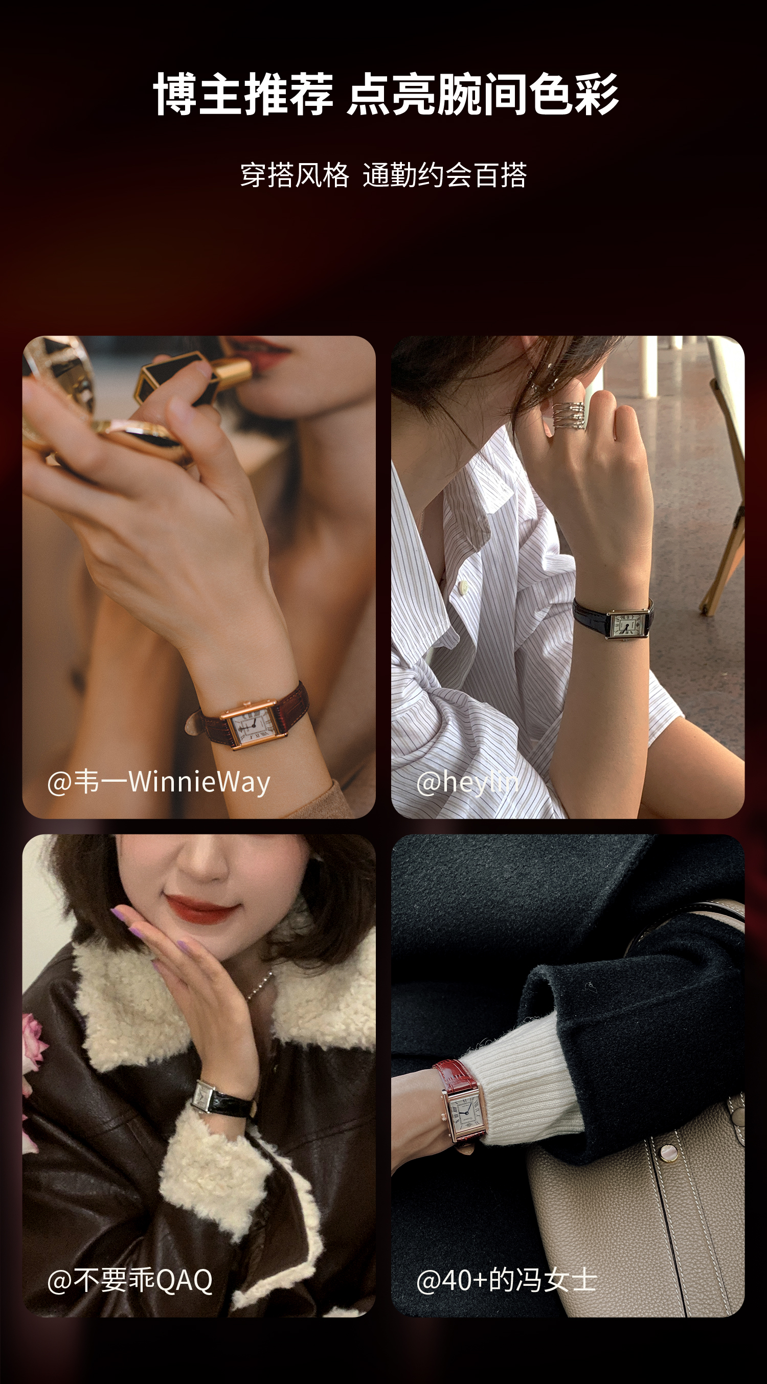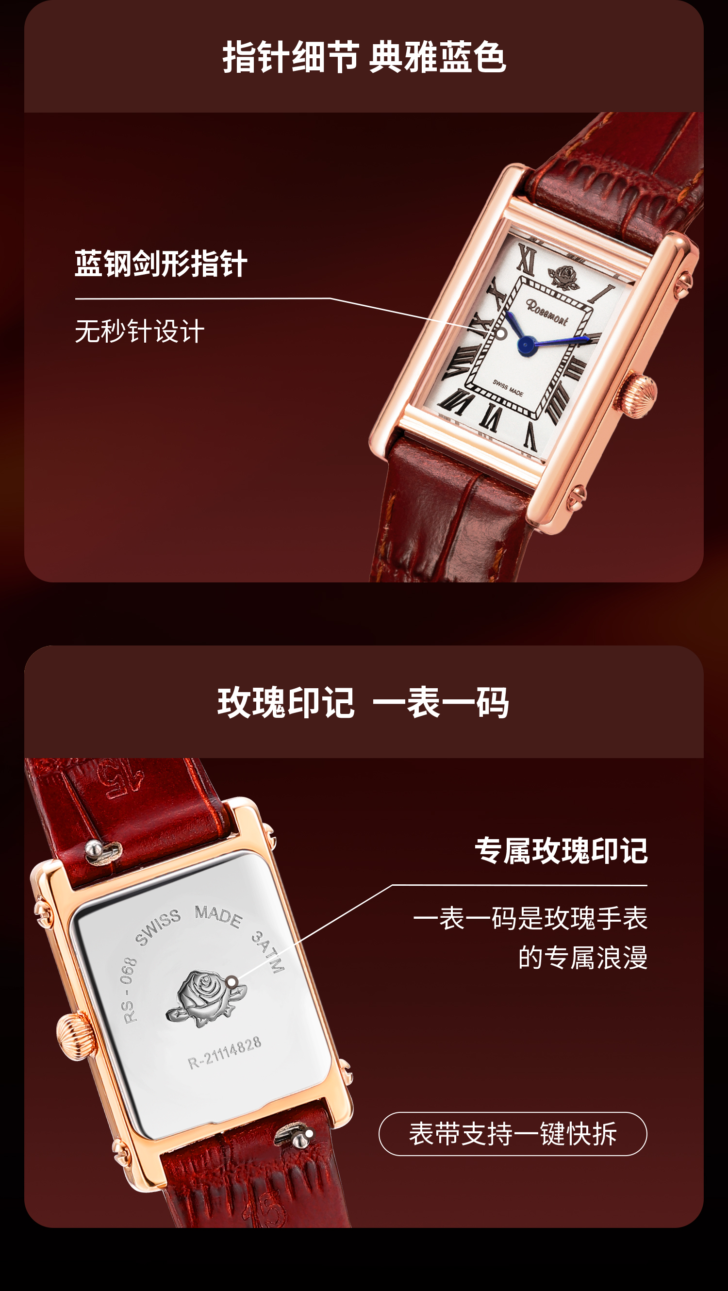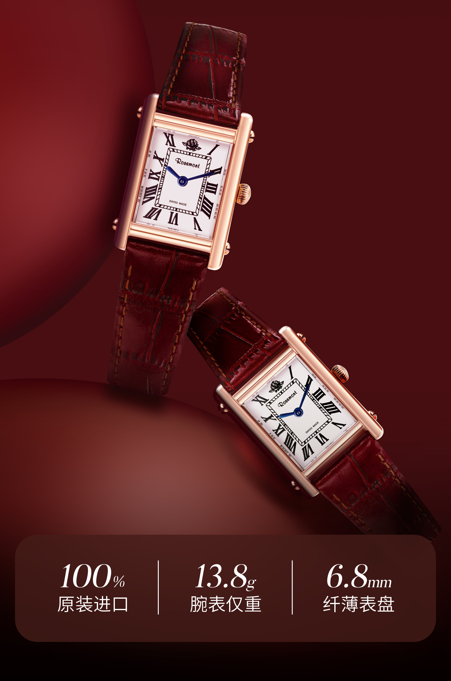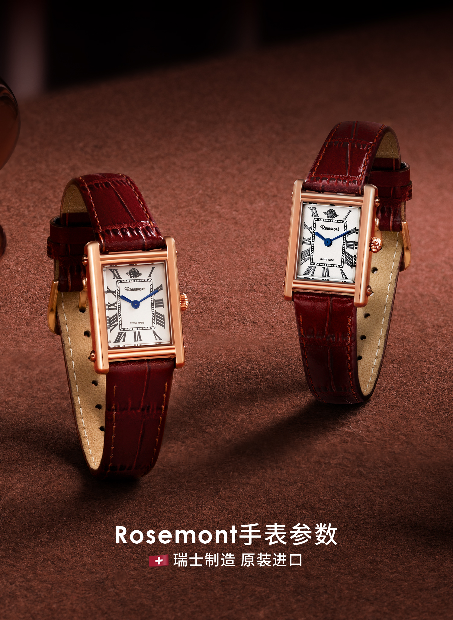 Rosemont Swiss Rose Retro Minimalist Maillard Design High-End Square Rose Small Square Watch for Women
