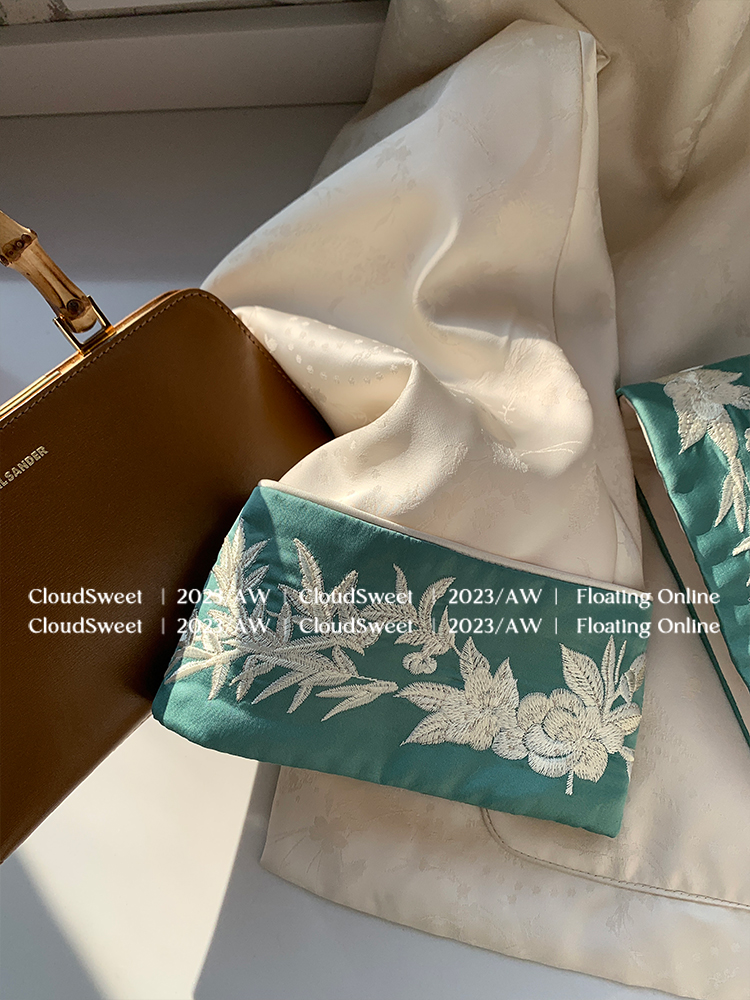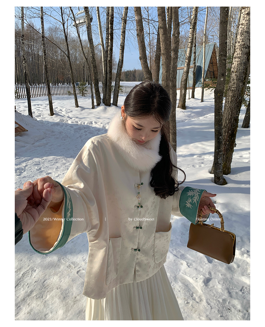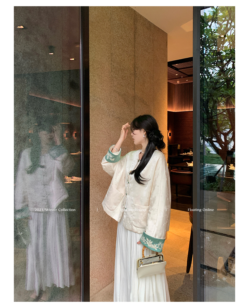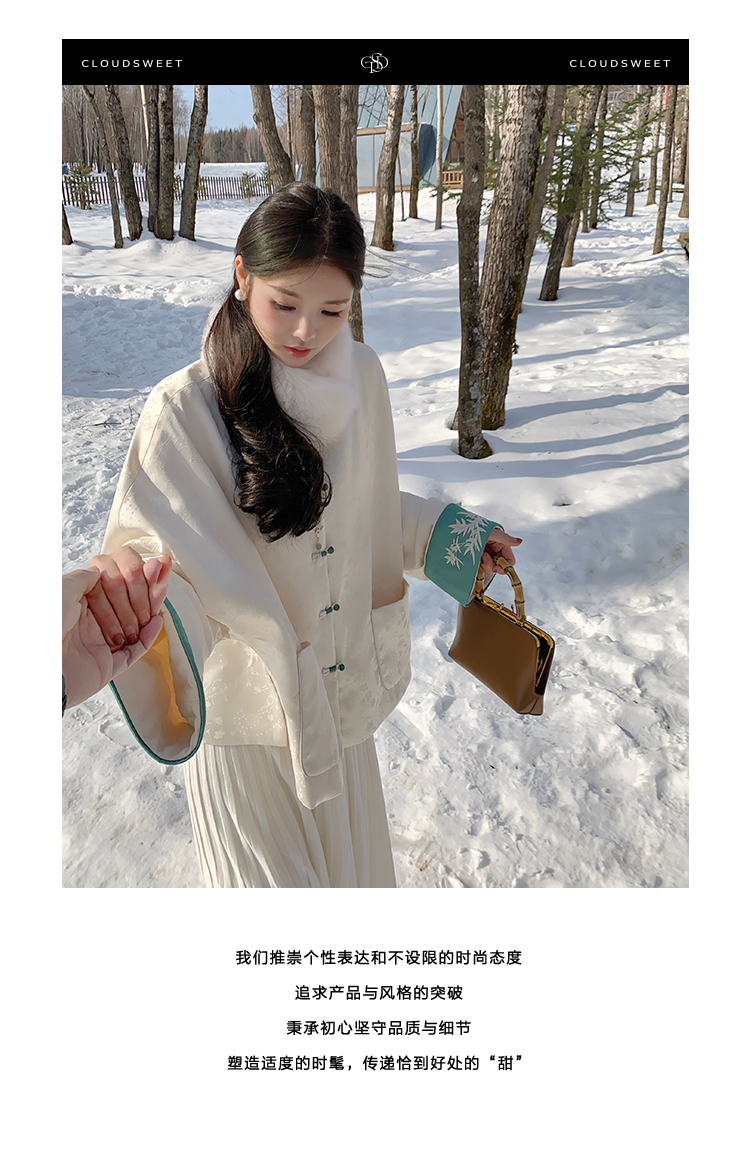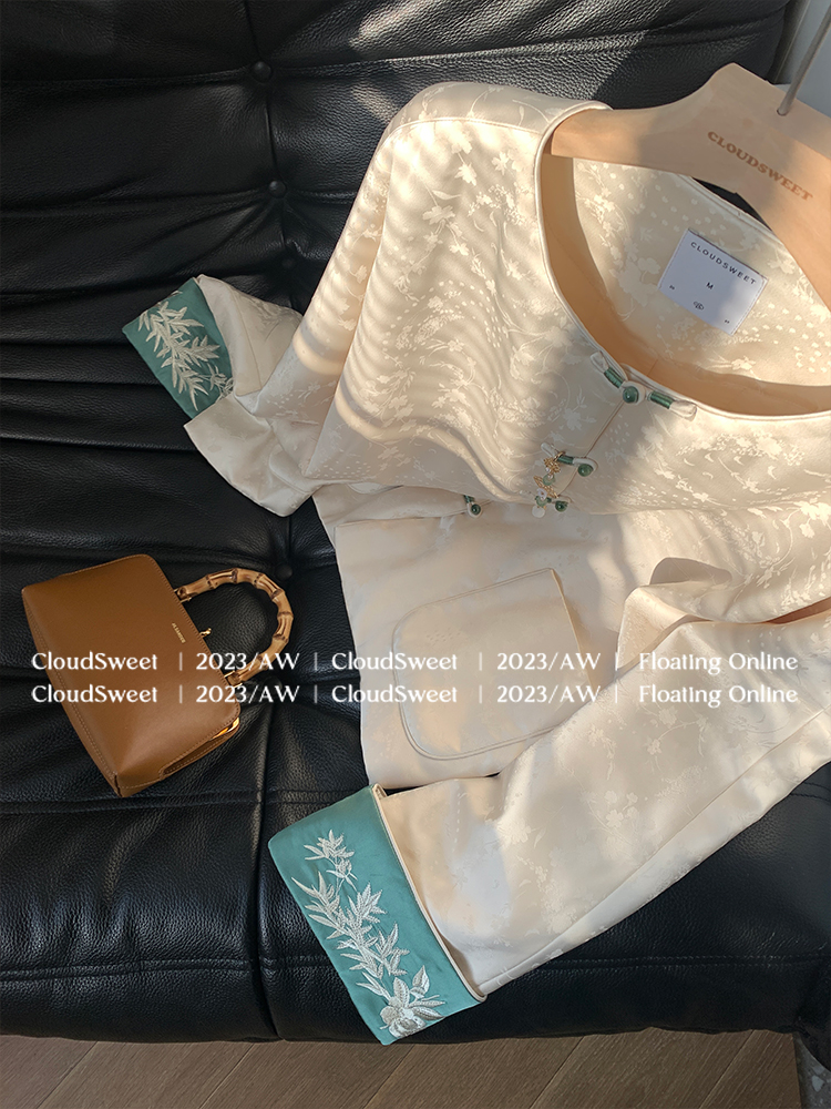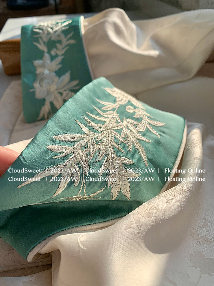 撞色翻边袖口上面做了獨有的国风竹叶刺绣纹样