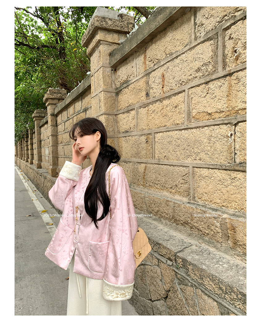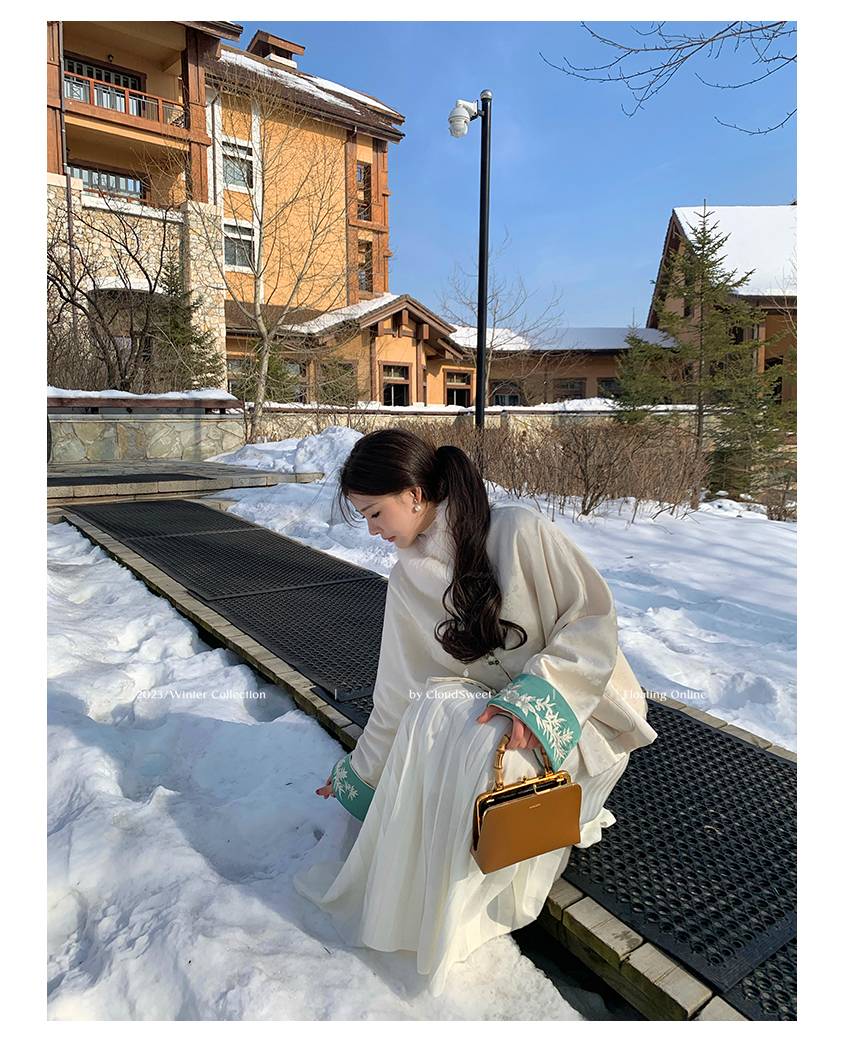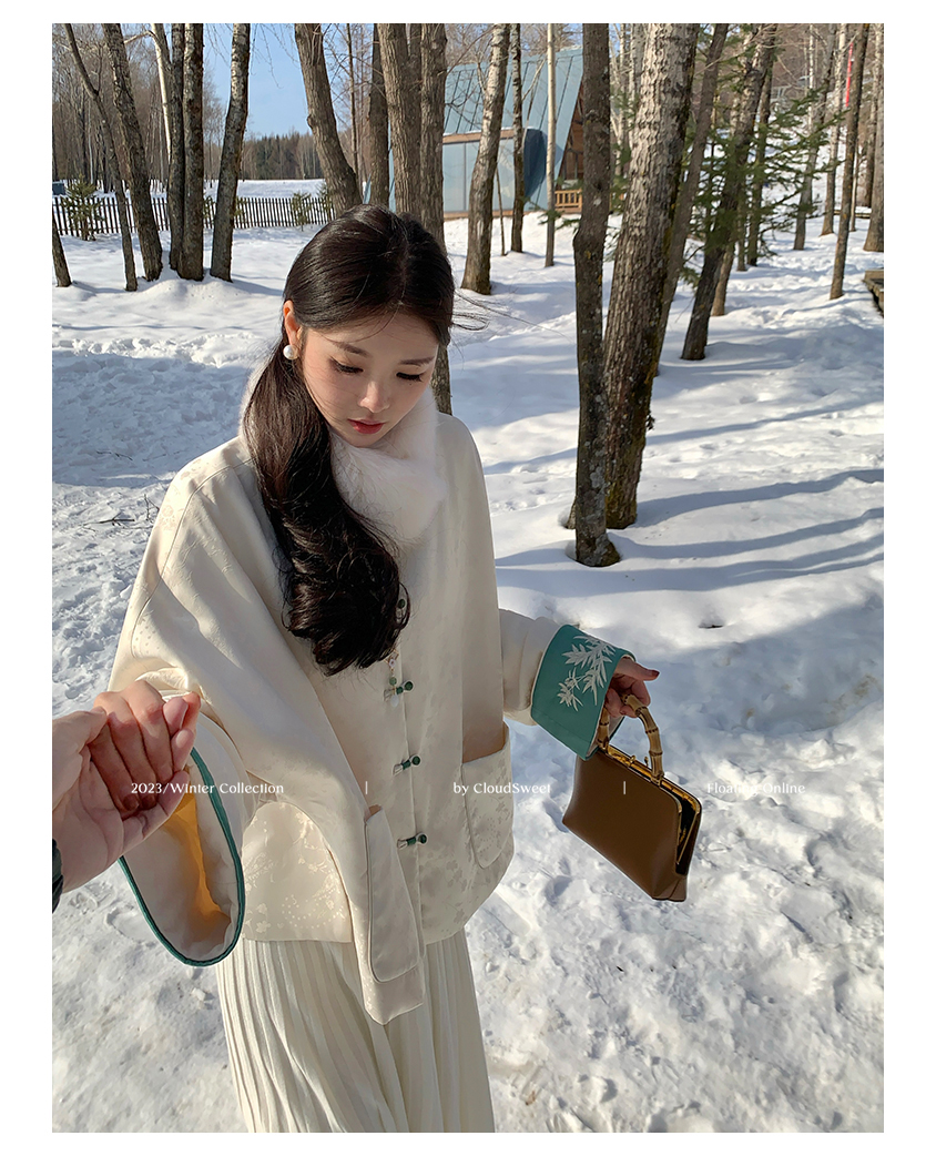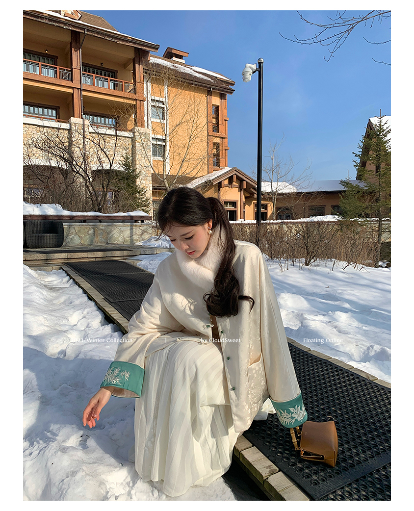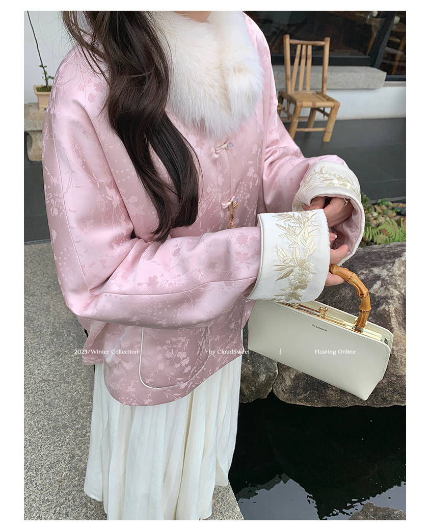 撞色翻边袖口上面做了獨有的国风竹叶刺绣纹样