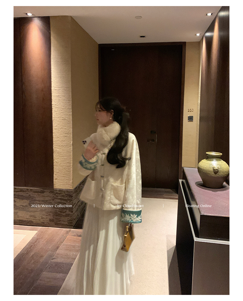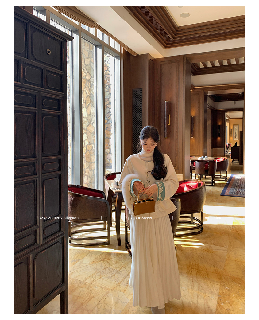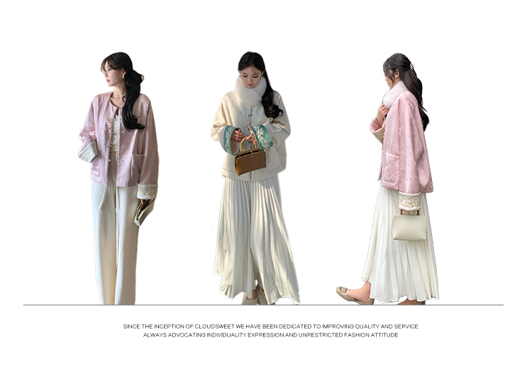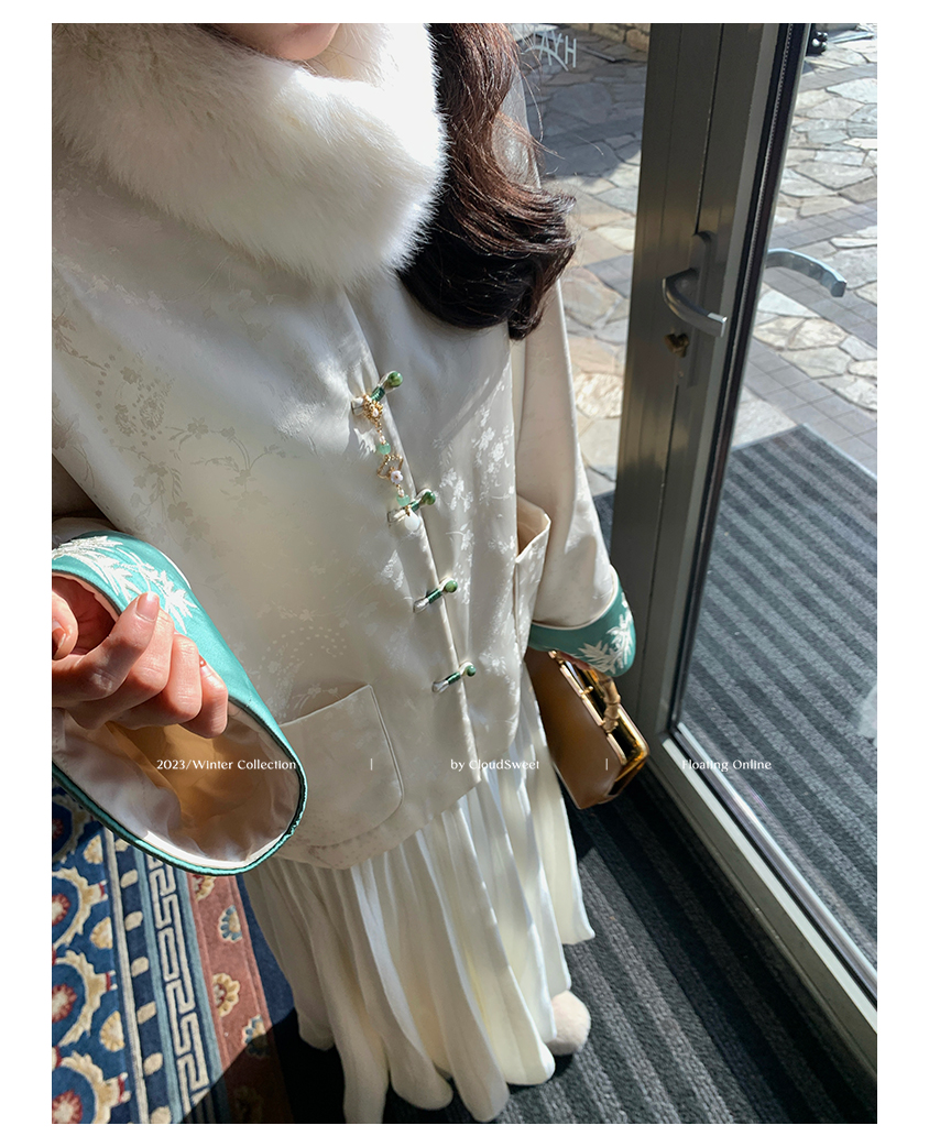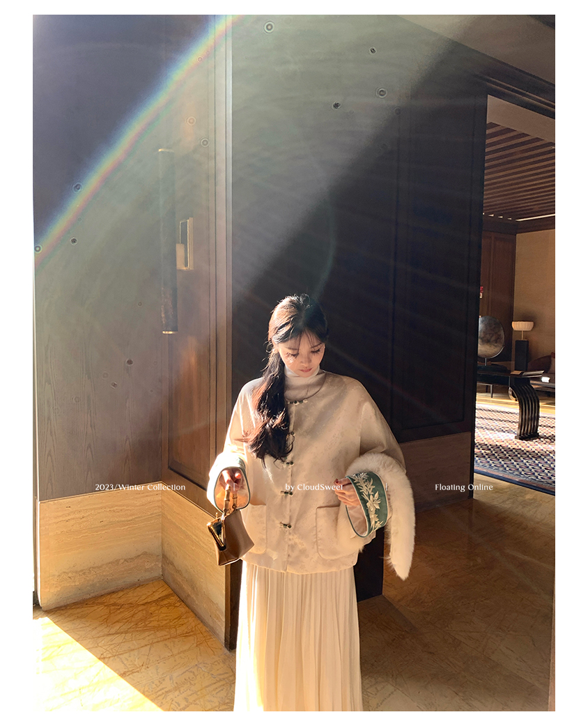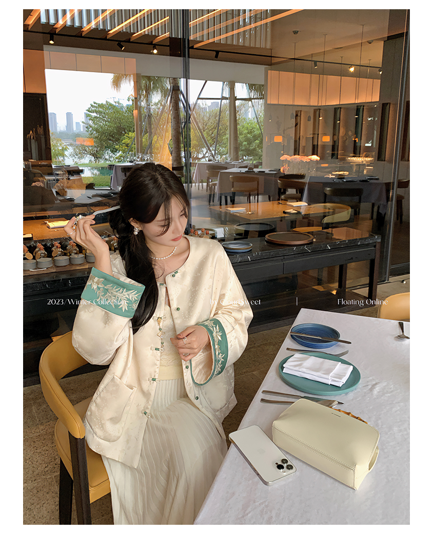加上撞色丝光线和珠扣,珠圆玉润,和和美美,细节感丰富