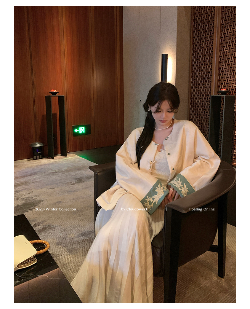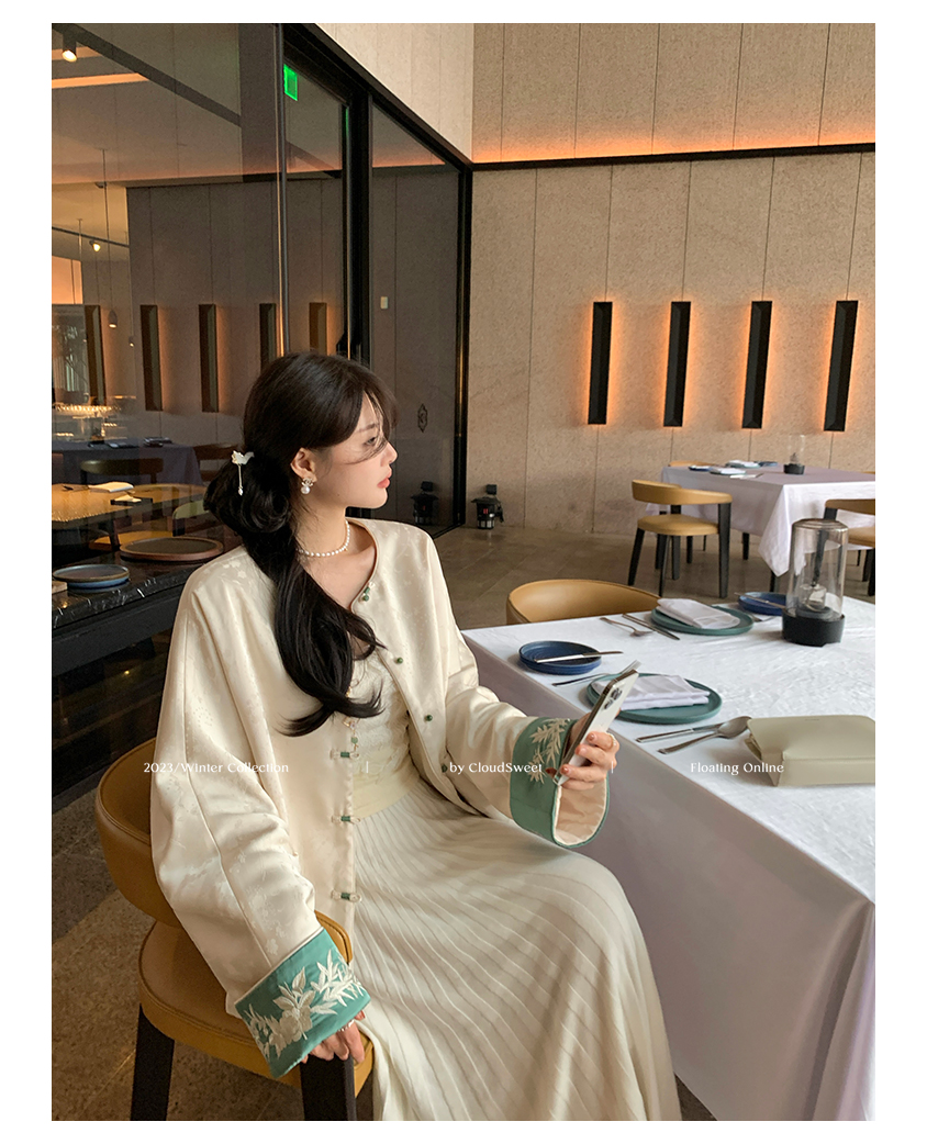 门襟采用本布面料手工盘扣编织