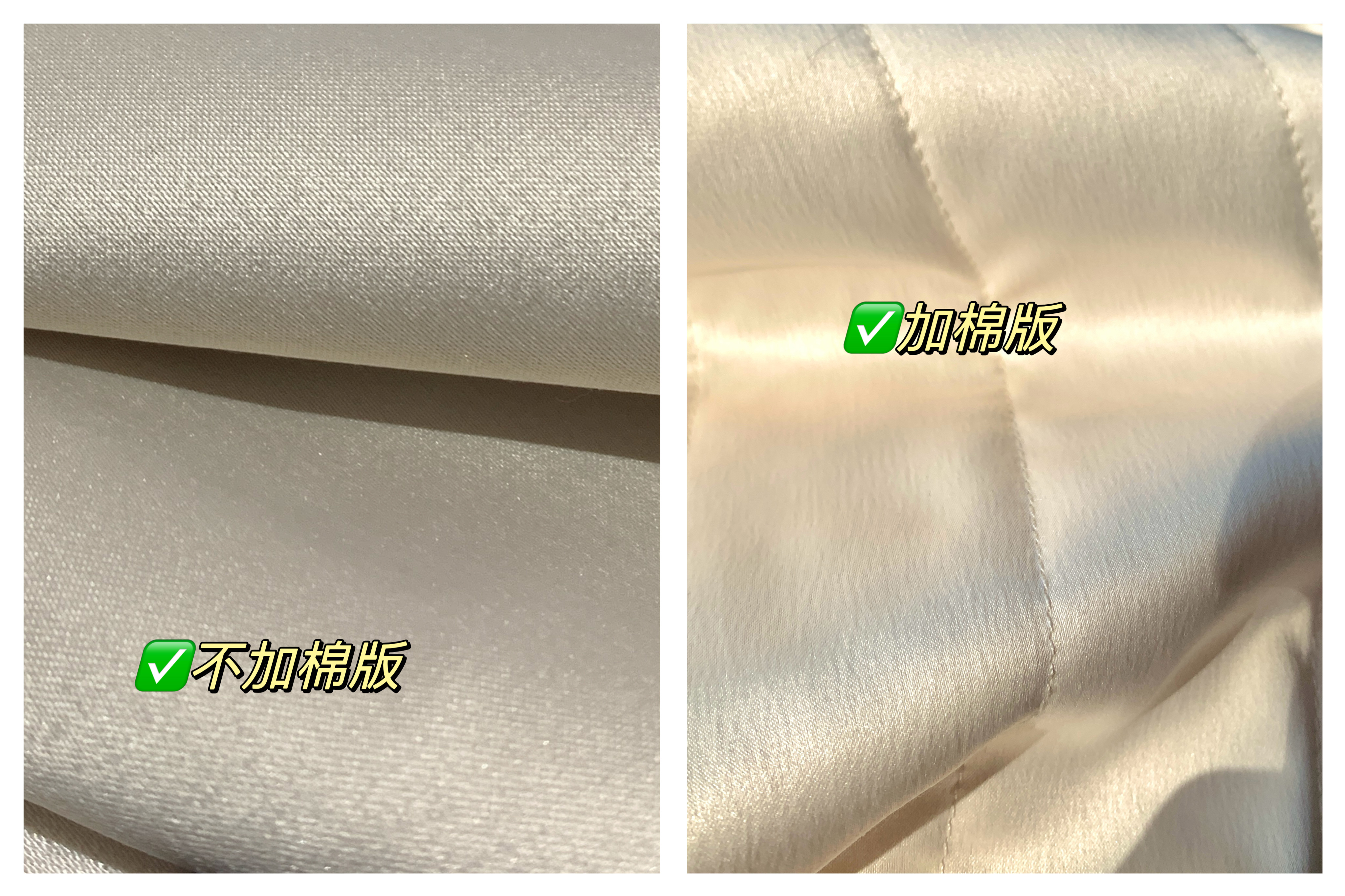而不夹棉版本内里采用的是哑光缎面内里