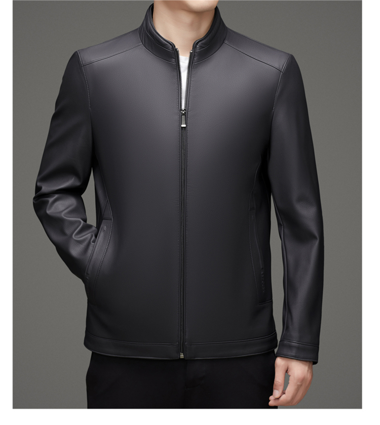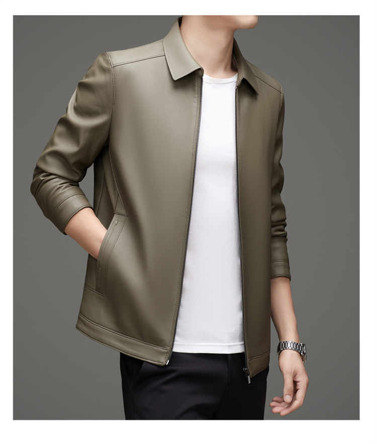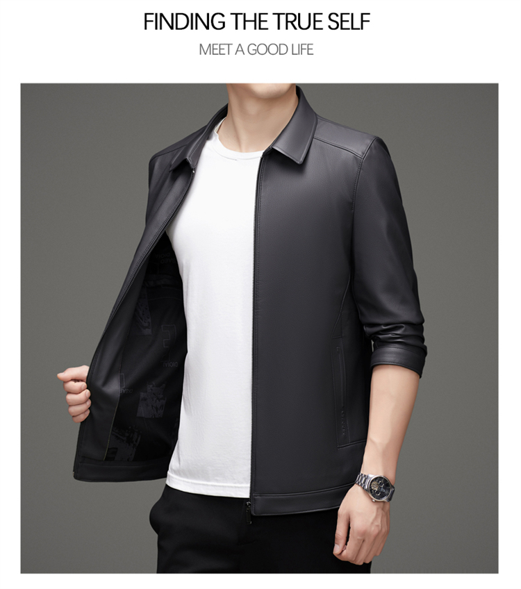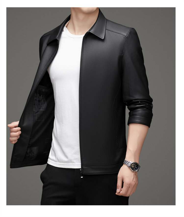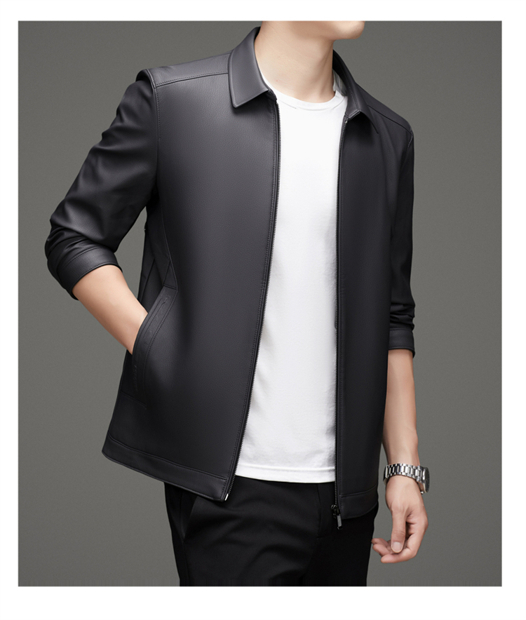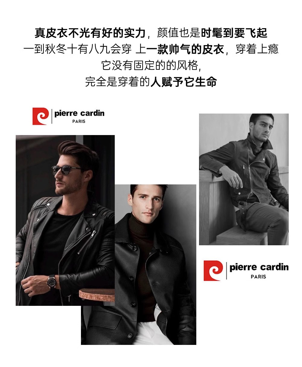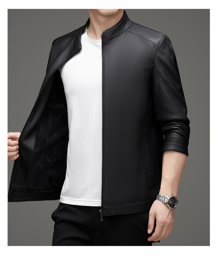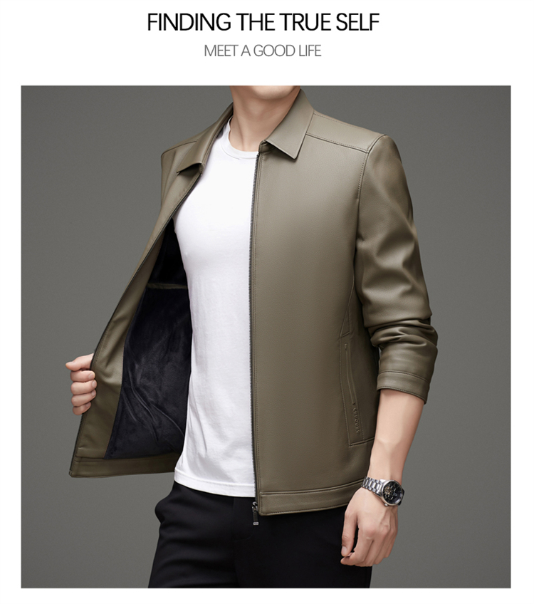 2025 Autumn and Winter Pierre Cardin Genuine Leather Jacket for Men, Fleece-Lined and Thickened, First Layer Sheepskin Leather Jacket, Men's Leather Coat