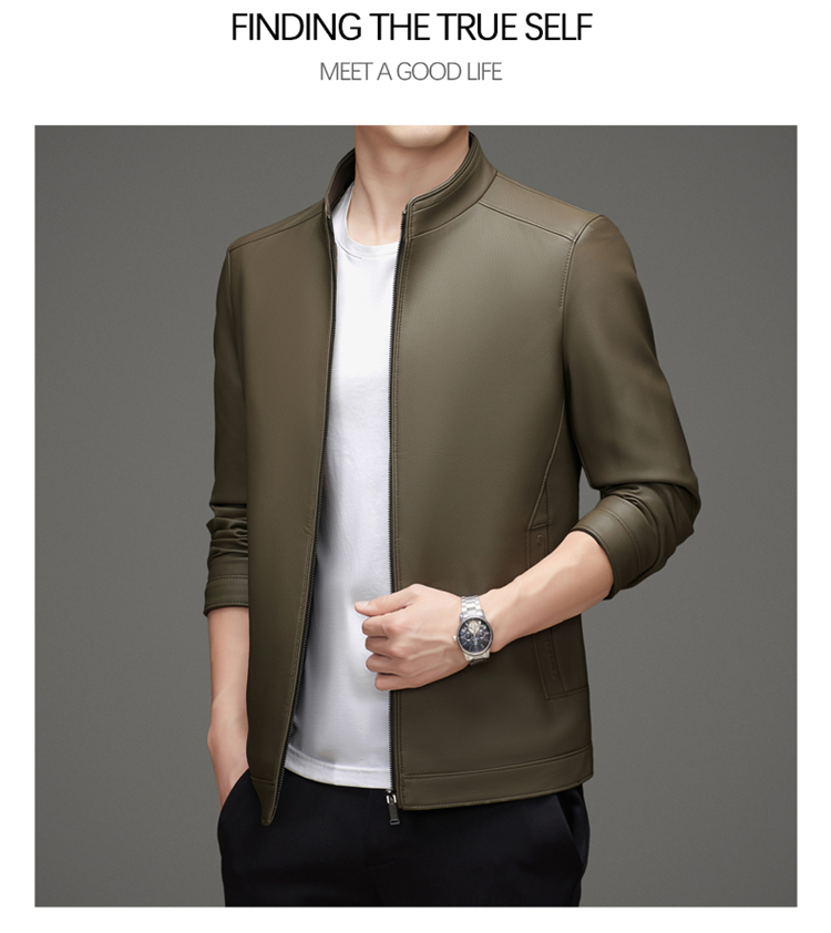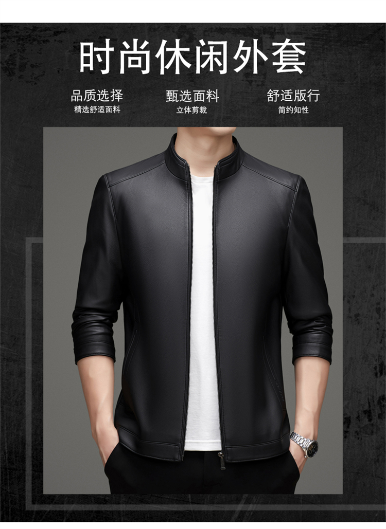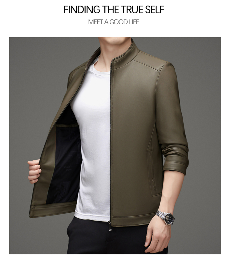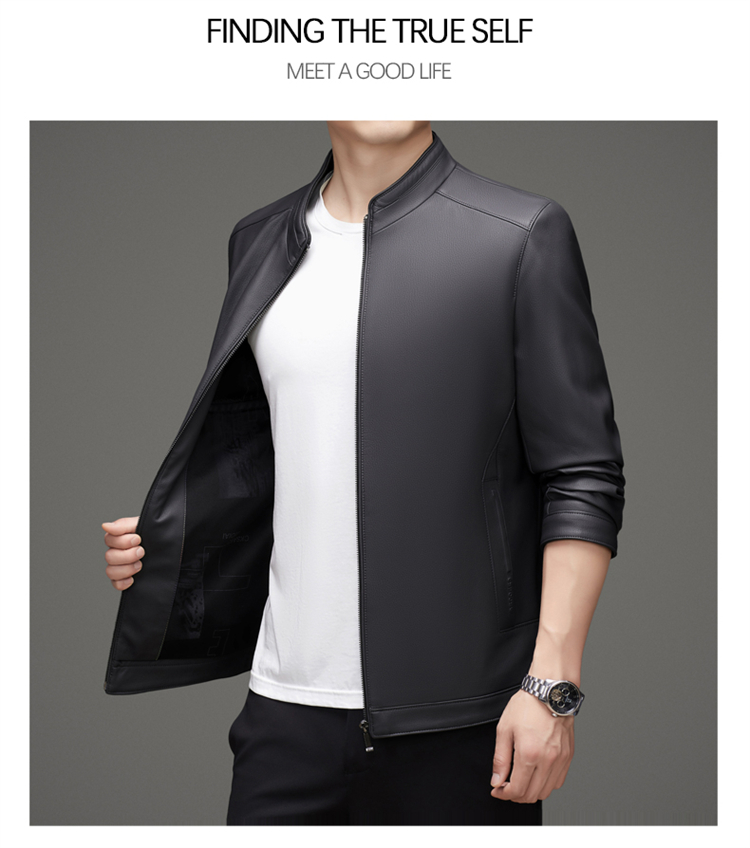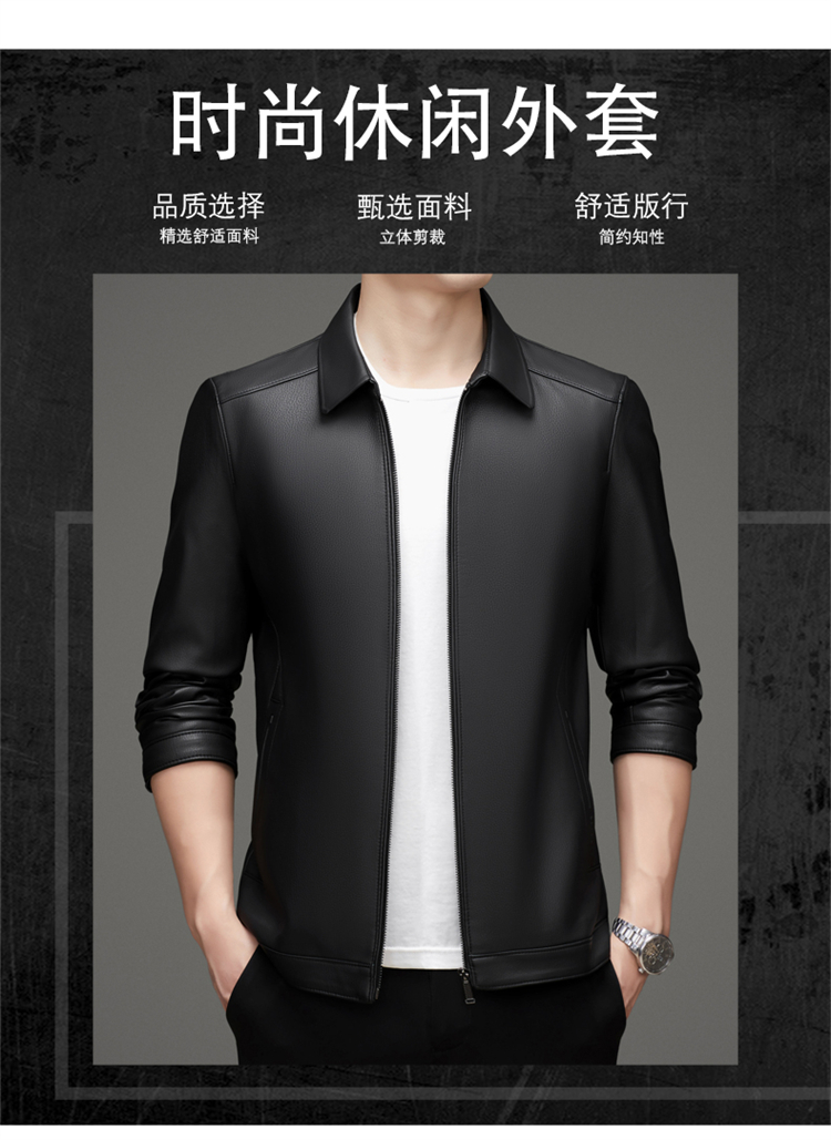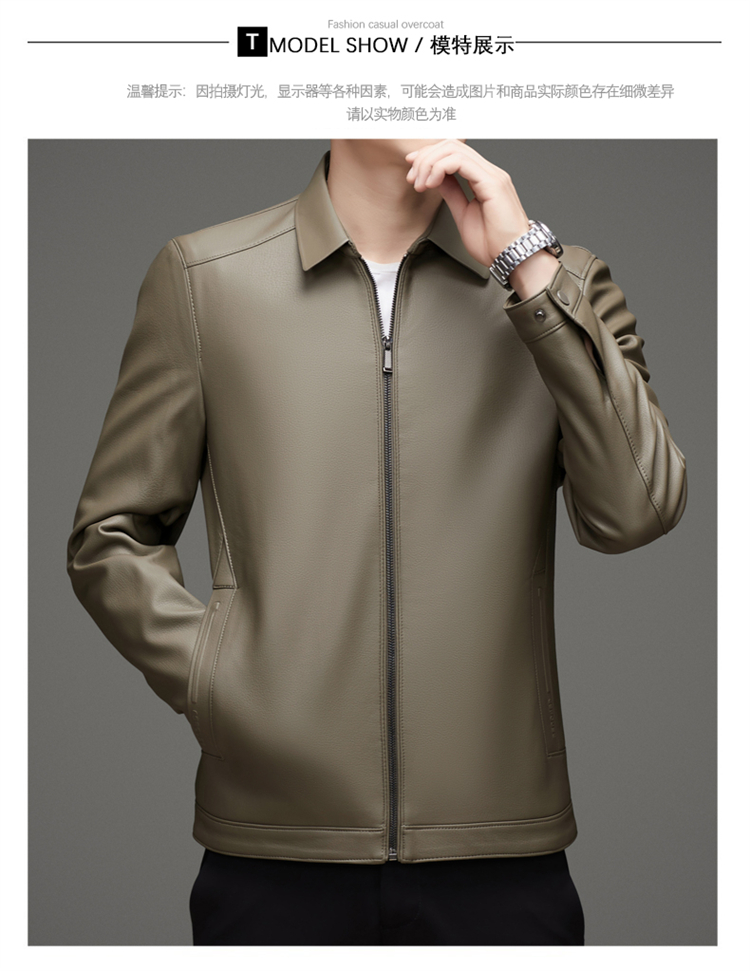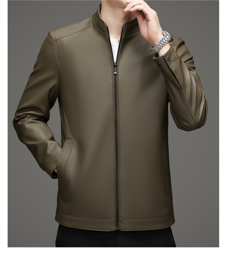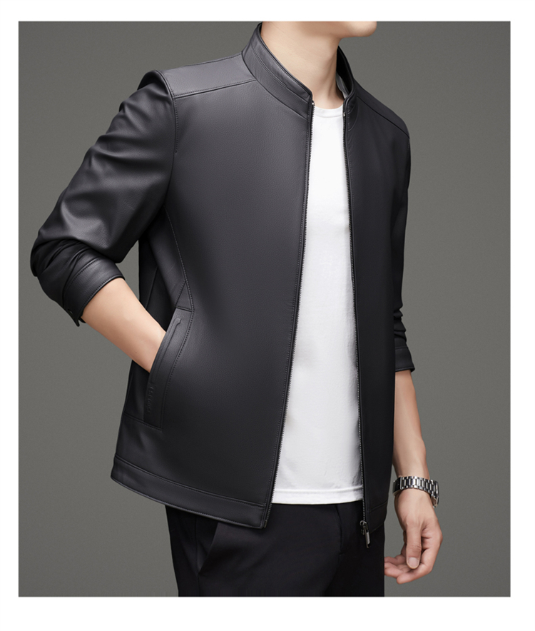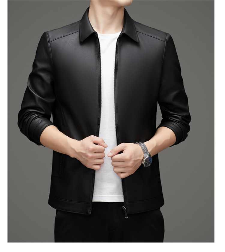2025 Autumn and Winter Pierre Cardin Genuine Leather Jacket for Men, Fleece-Lined and Thickened, First Layer Sheepskin Leather Jacket, Men's Leather Coat