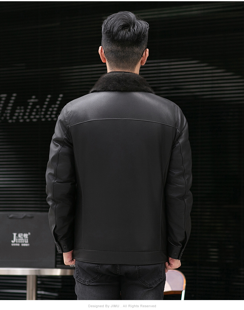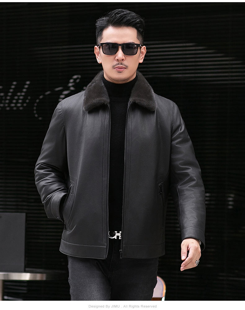Winter Imported Genuine Deerskin Leather Jacket for Men, Short Style with Mink Lining, Middle-Aged Genuine Leather Fur Coat