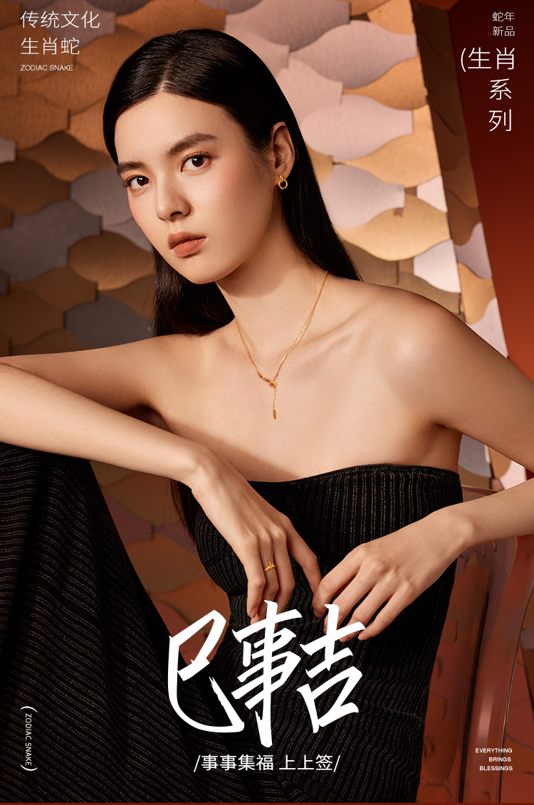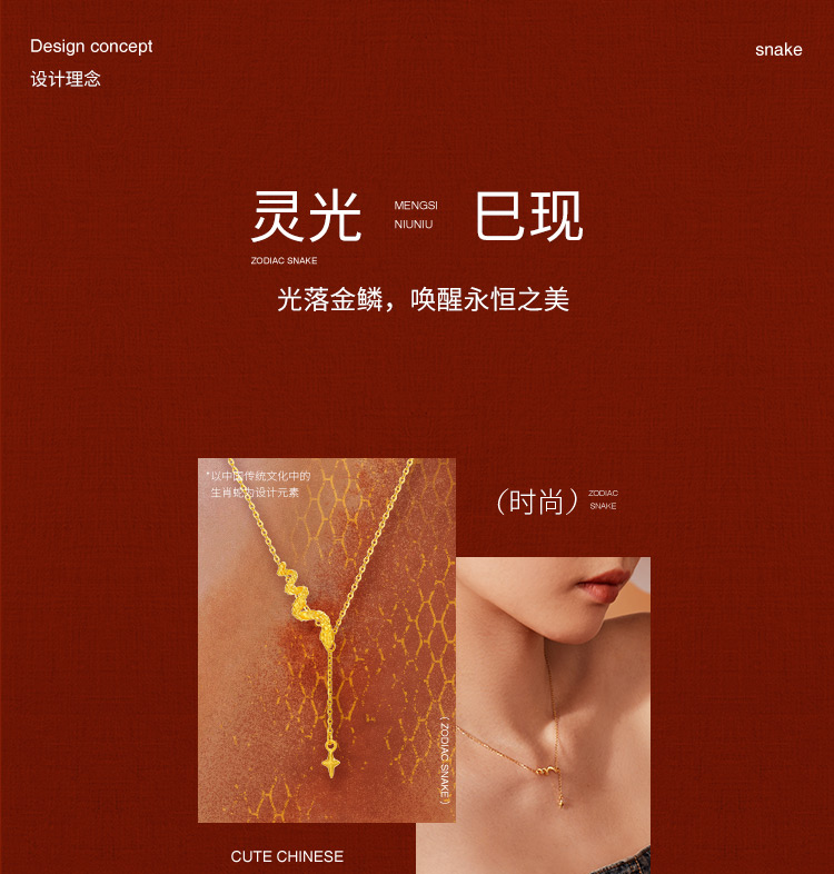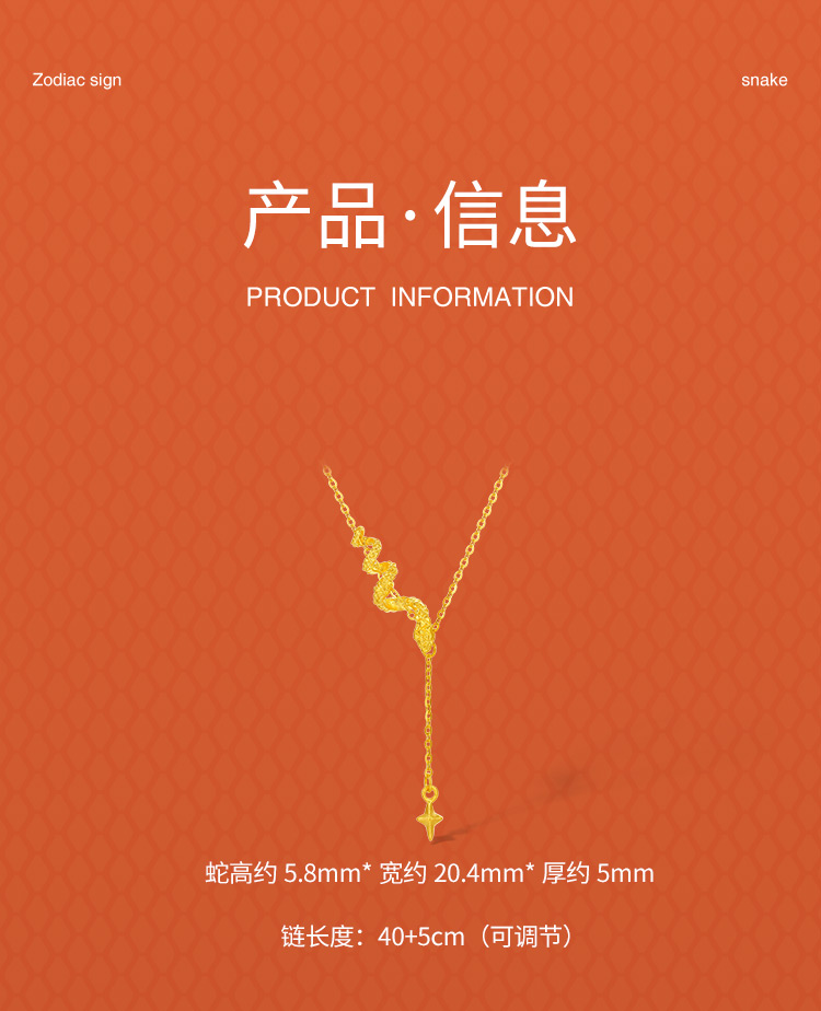 Saturday Fortune Gold Necklace for Women, Pure Gold Star Bell Pendant, Zodiac Snake Series, Gift for Girlfriend on Holidays