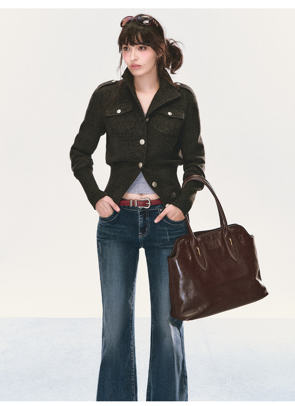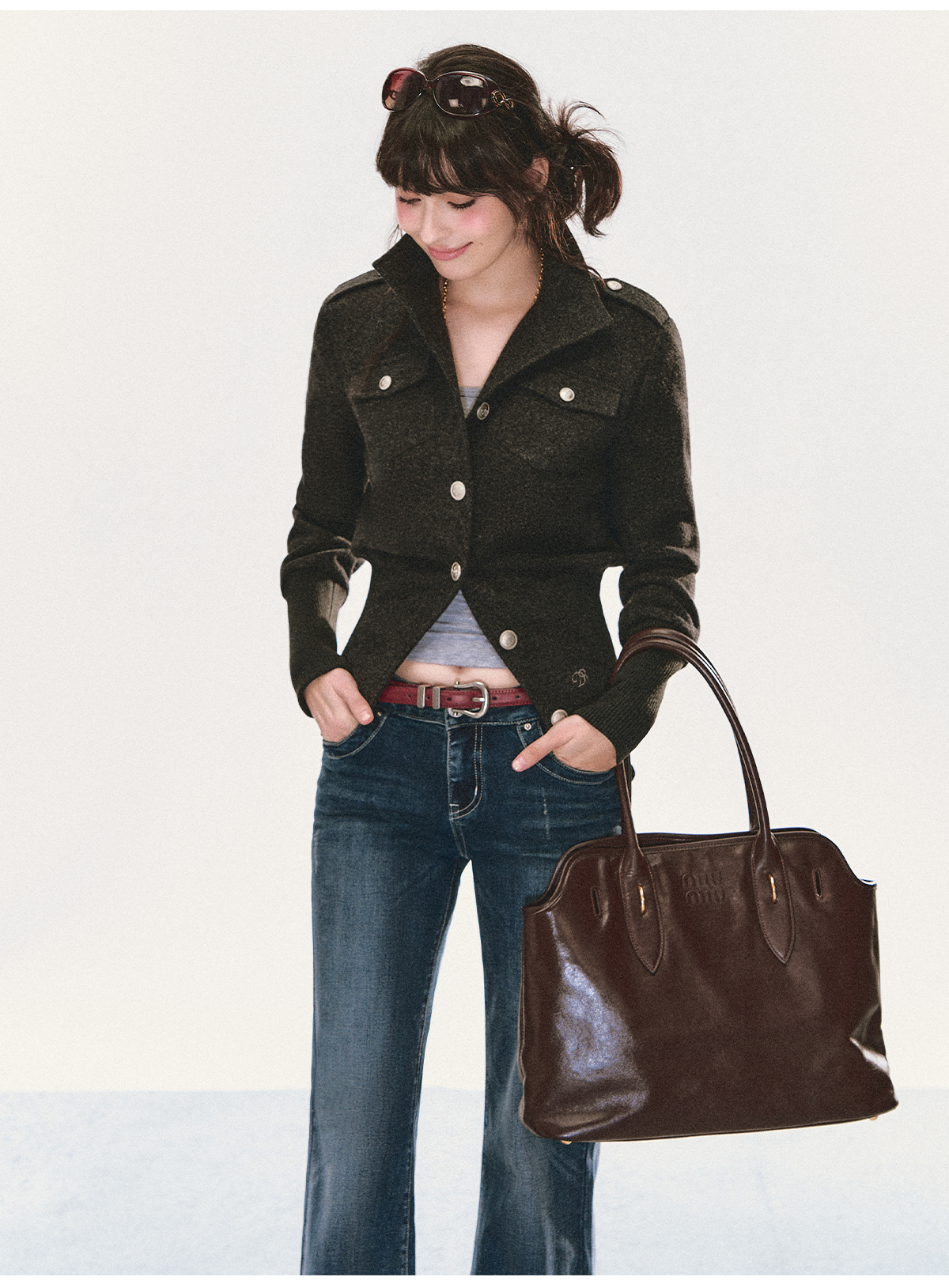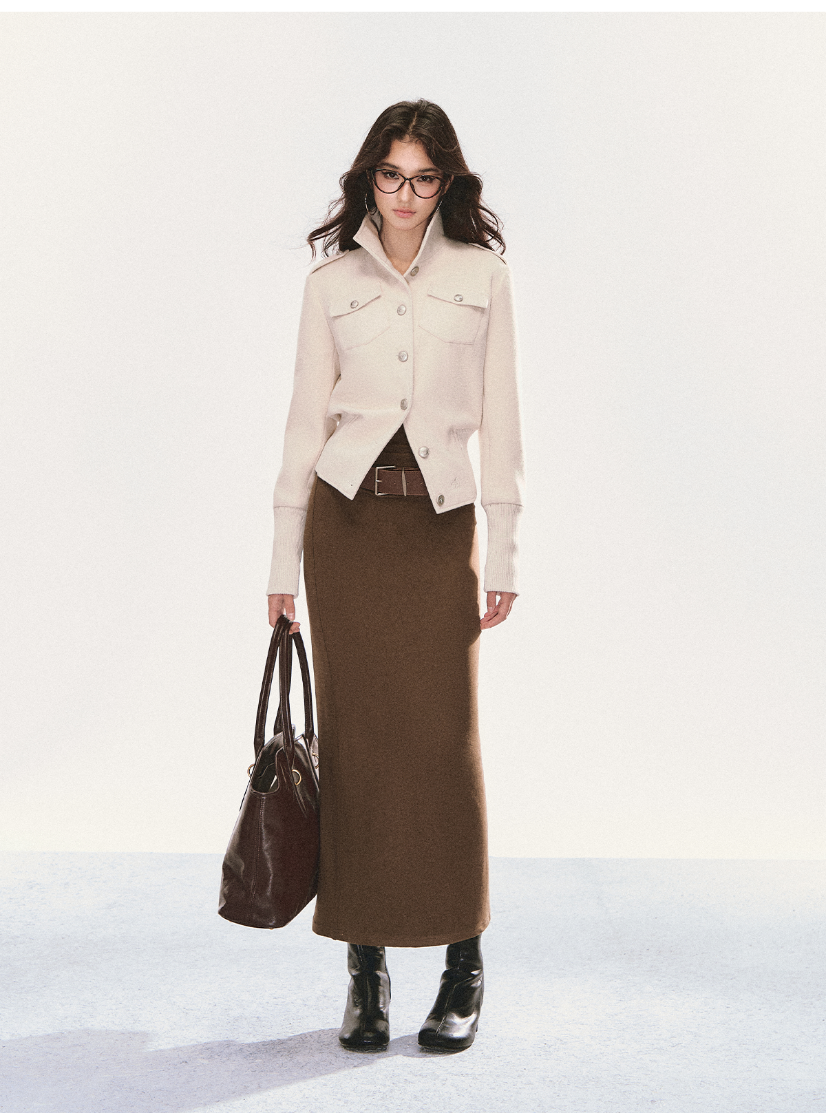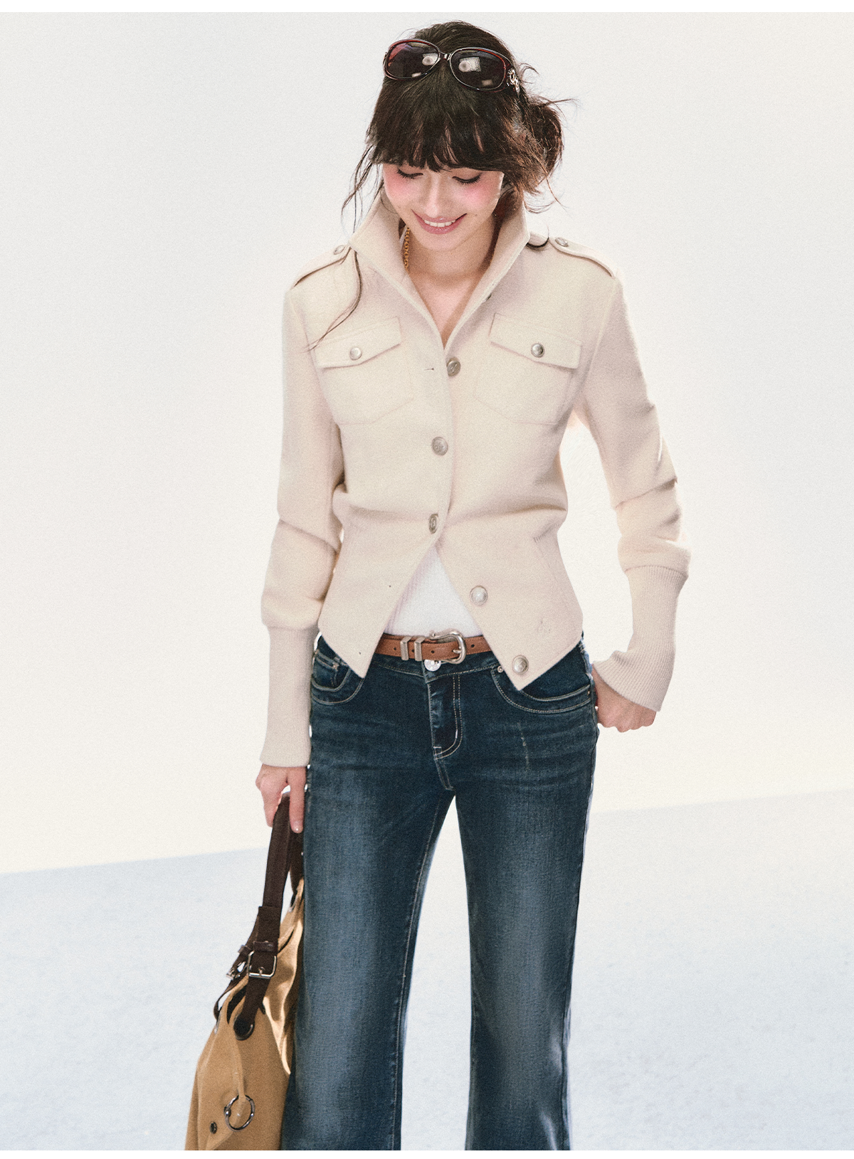 Andyet Ad1 Waist-Cinching Stand-Up Collar Jacket for Women, Slim Fit, Vintage Commuter Versatile Top with Ruffle Stitching