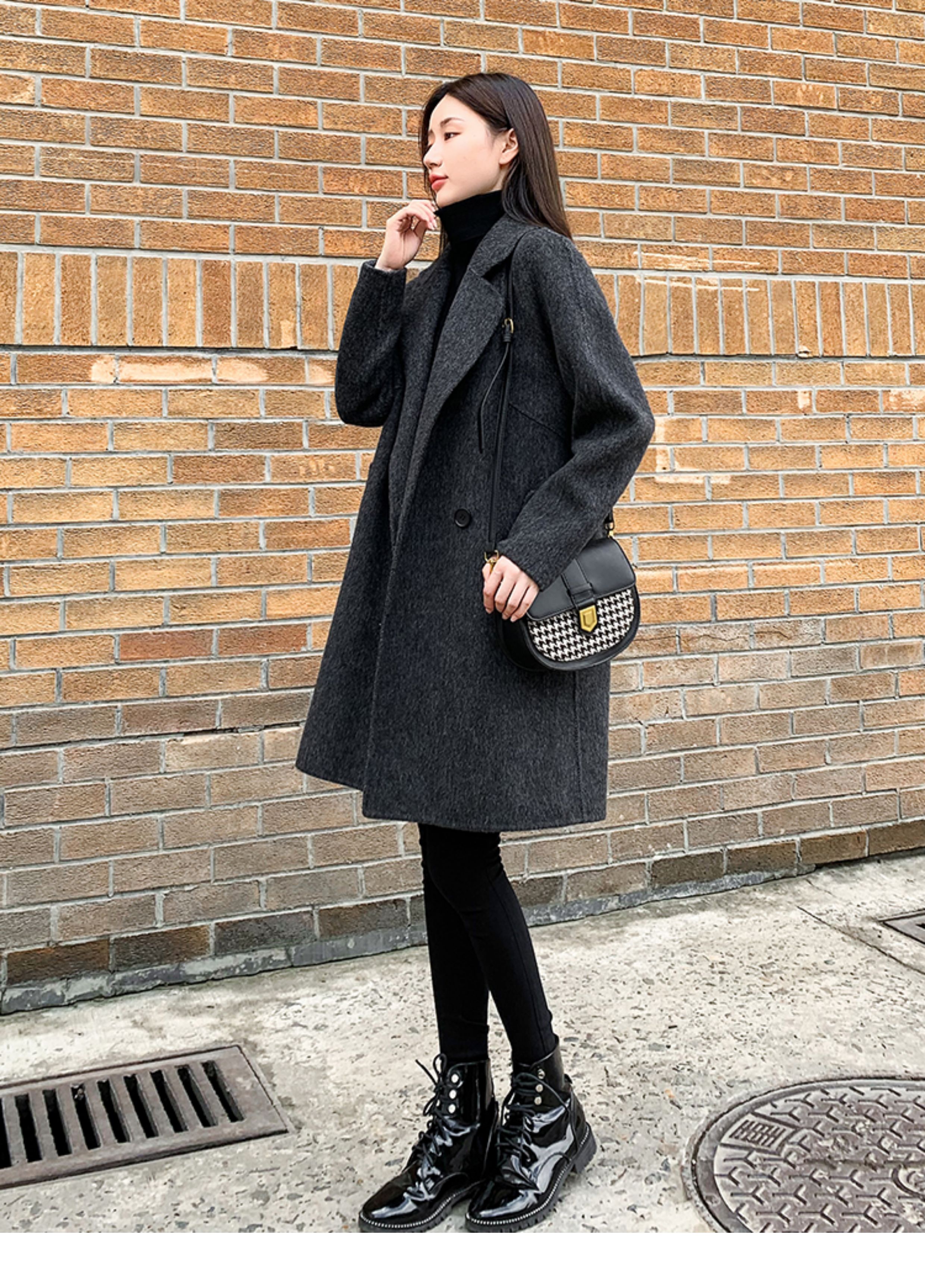 Dark Gray Double-Sided Cashmere Coat for Women 2025 New Autumn and Winter Women's Loose Suit Collar Trendy Woolen Coat for Women