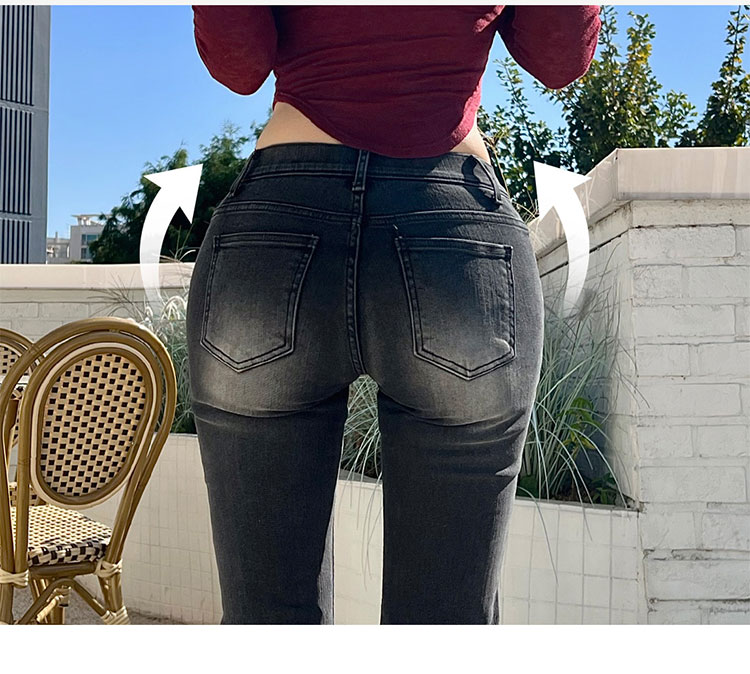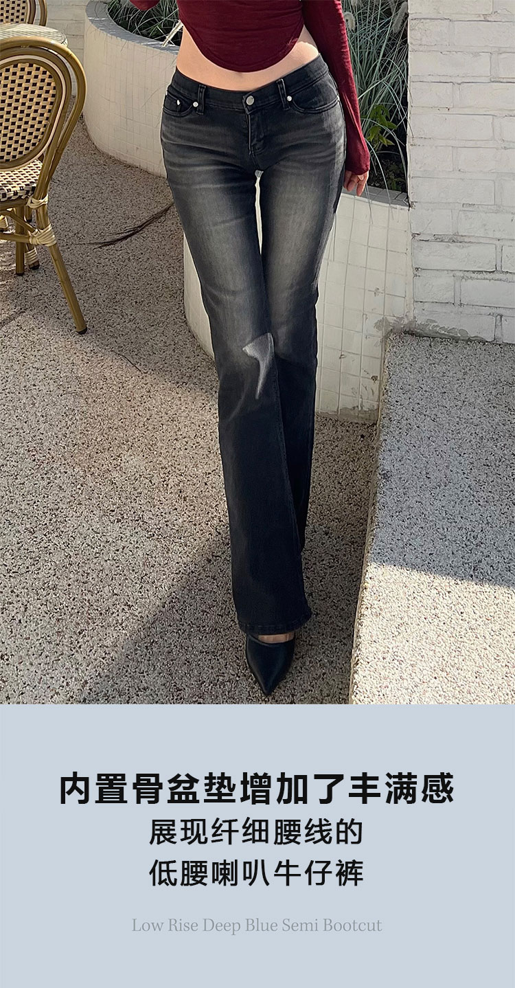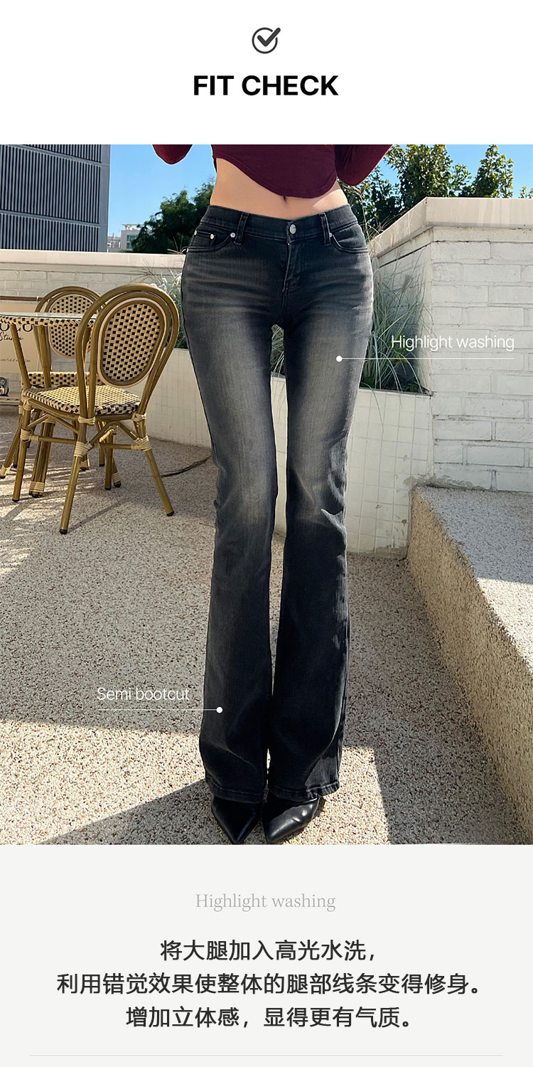 Kindame Korean Leg-Slimming, Hip-Enhancing, Slim-Fit, Low-Waist, Butt-Lifting Black and Gray Denim Flared Pants Ds23F0130