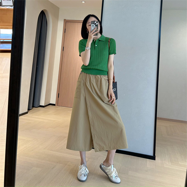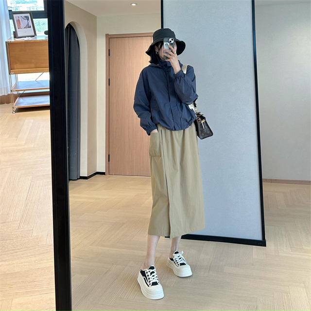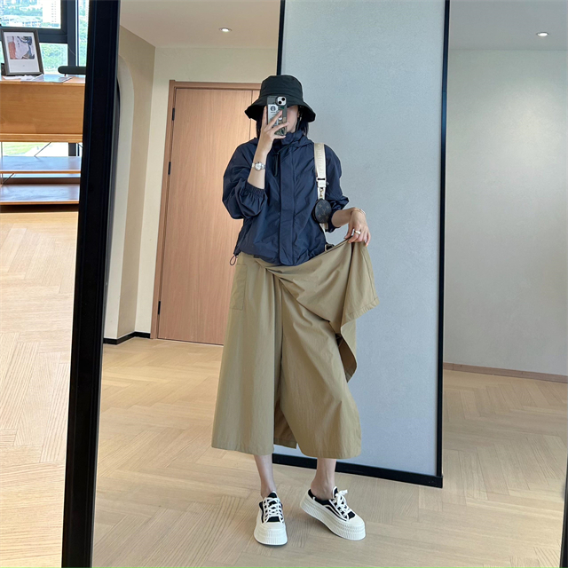 兼顾了A字伞裙的清新飘逸和裤子的方便利落