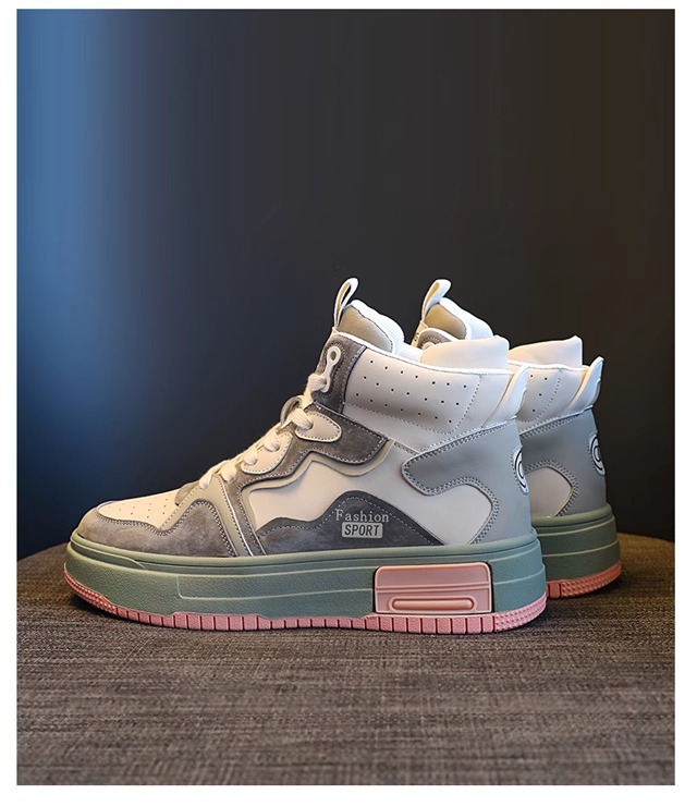 Hong Kong Genuine Leather Martin Boots for Women 2025 Spring and Autumn New High-Top Sports Casual Shoes Sneakers Thick-Soled Color-Blocked Short Boots