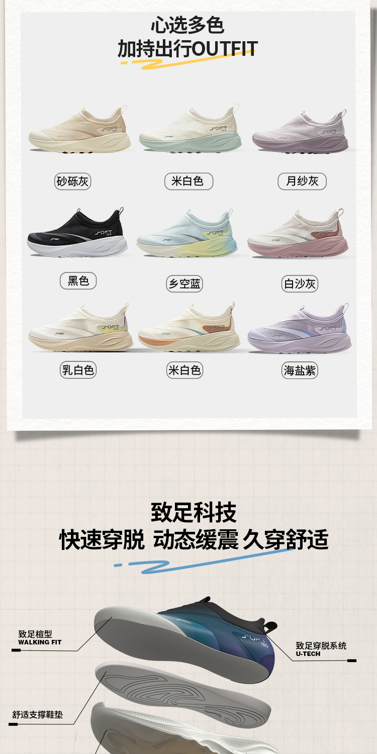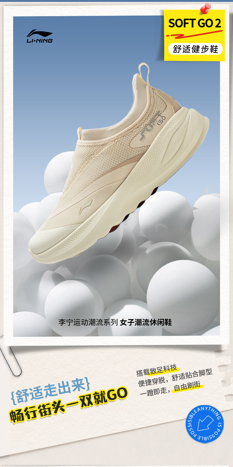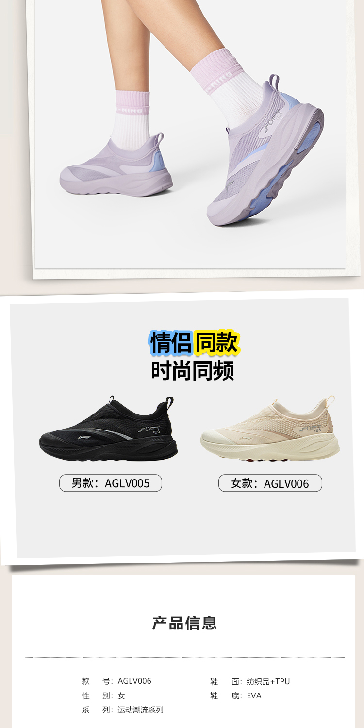 Li-Ning Soft Go 2丨 Women's Casual Shoes 2025 New Trendy Slip-On Lightweight Comfortable Sports Shoes