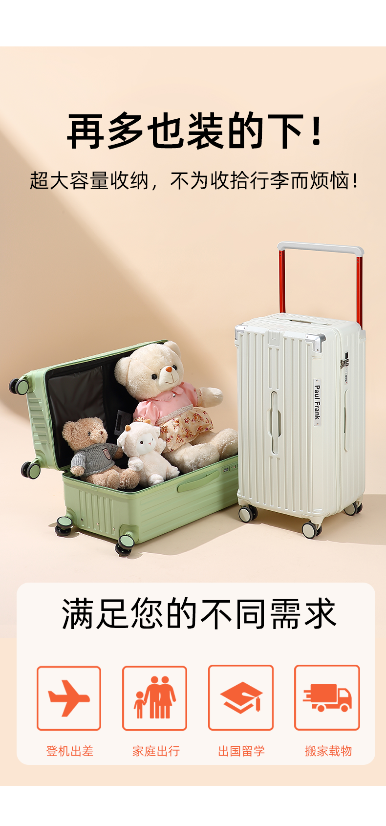 Paul Frank Suitcase for Women 2025 New Model Wide Handle 20inch Carry-On Suitcase Large Capacity Travel Suitcase 28 Password Lock Suitcase