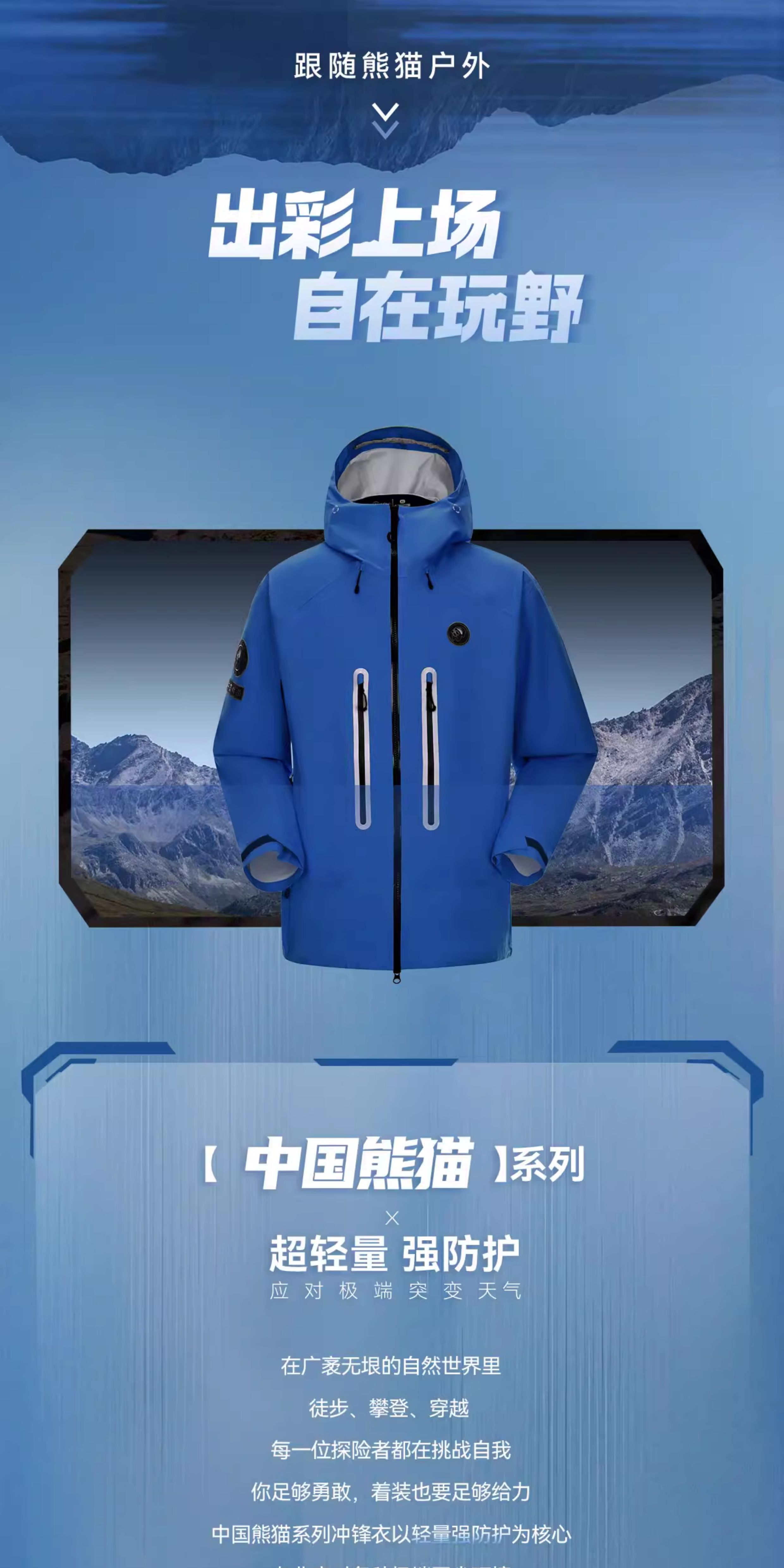 【Cai Xukun's Original Style】Chinese Panda Raincoat, Windproof, 3L Outdoor Mountaineering Jacket, Three-Proof Coat