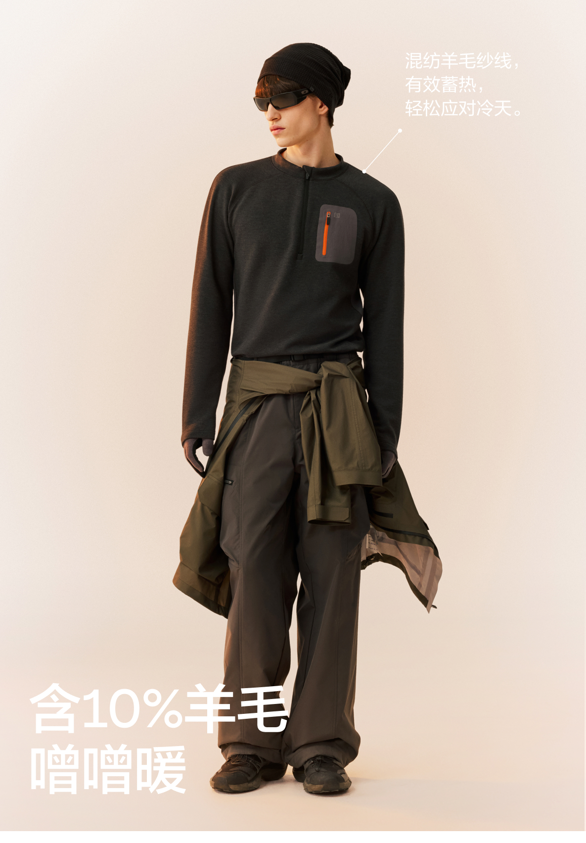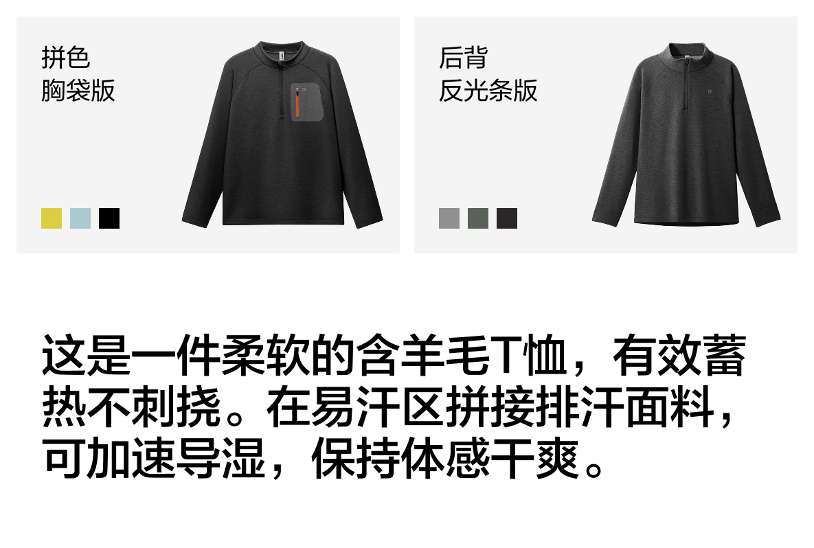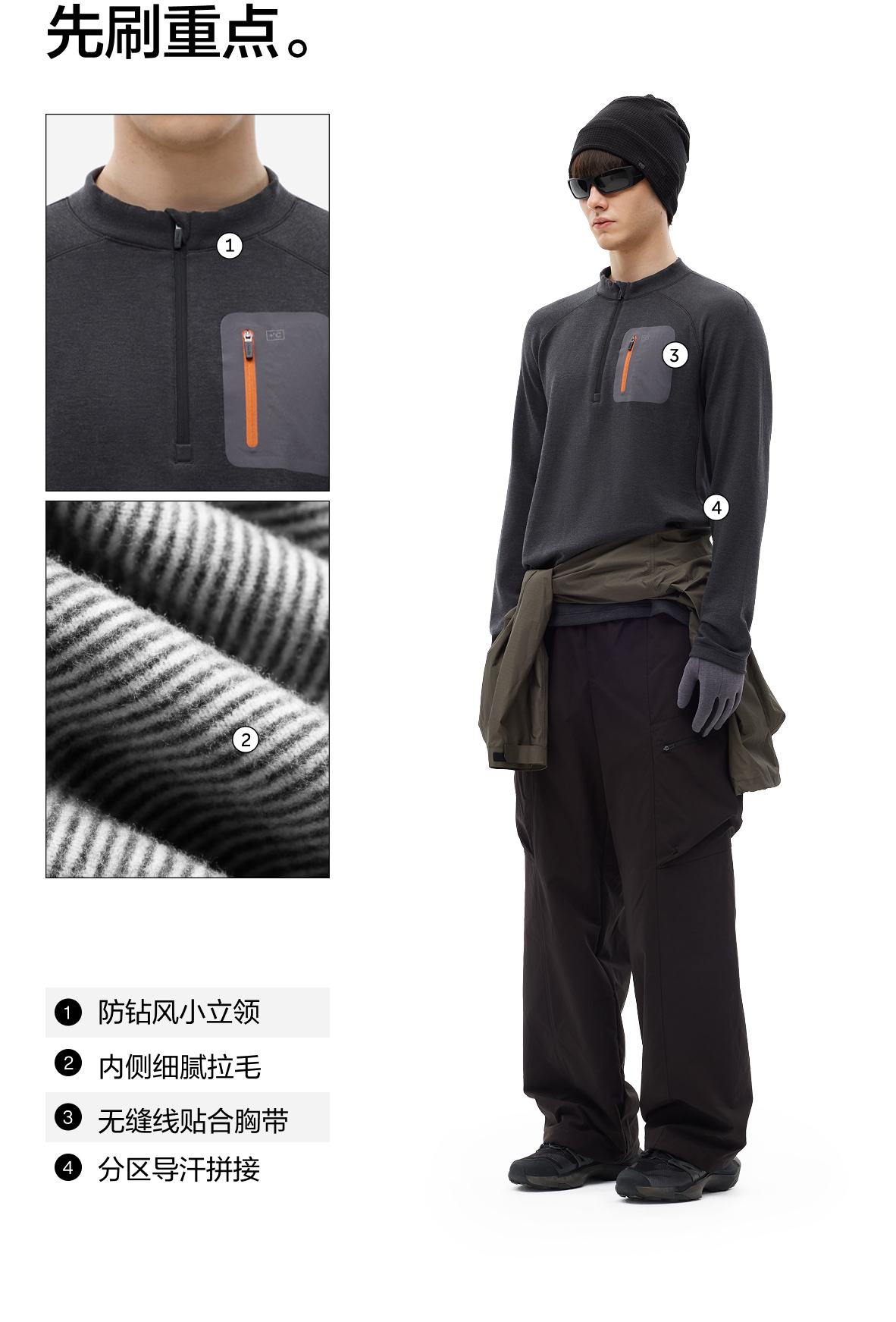 [Same Style as Wang Yibo] Jiao Nei Heat Skin 702++ Men's Quick-Drying Wool Half-Zip Long Sleeve Functional T-Shirt Top