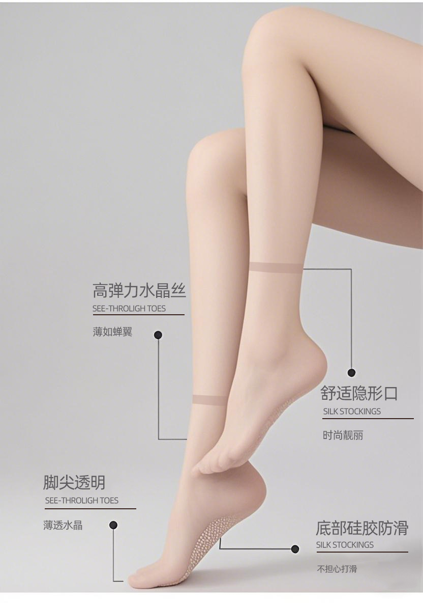Summer Thin Crystal Socks Japanese Style Invisible Anti-Snagging Stockings Non-Slip Ultra-Thin Short Socks Wear-Resistant for Women