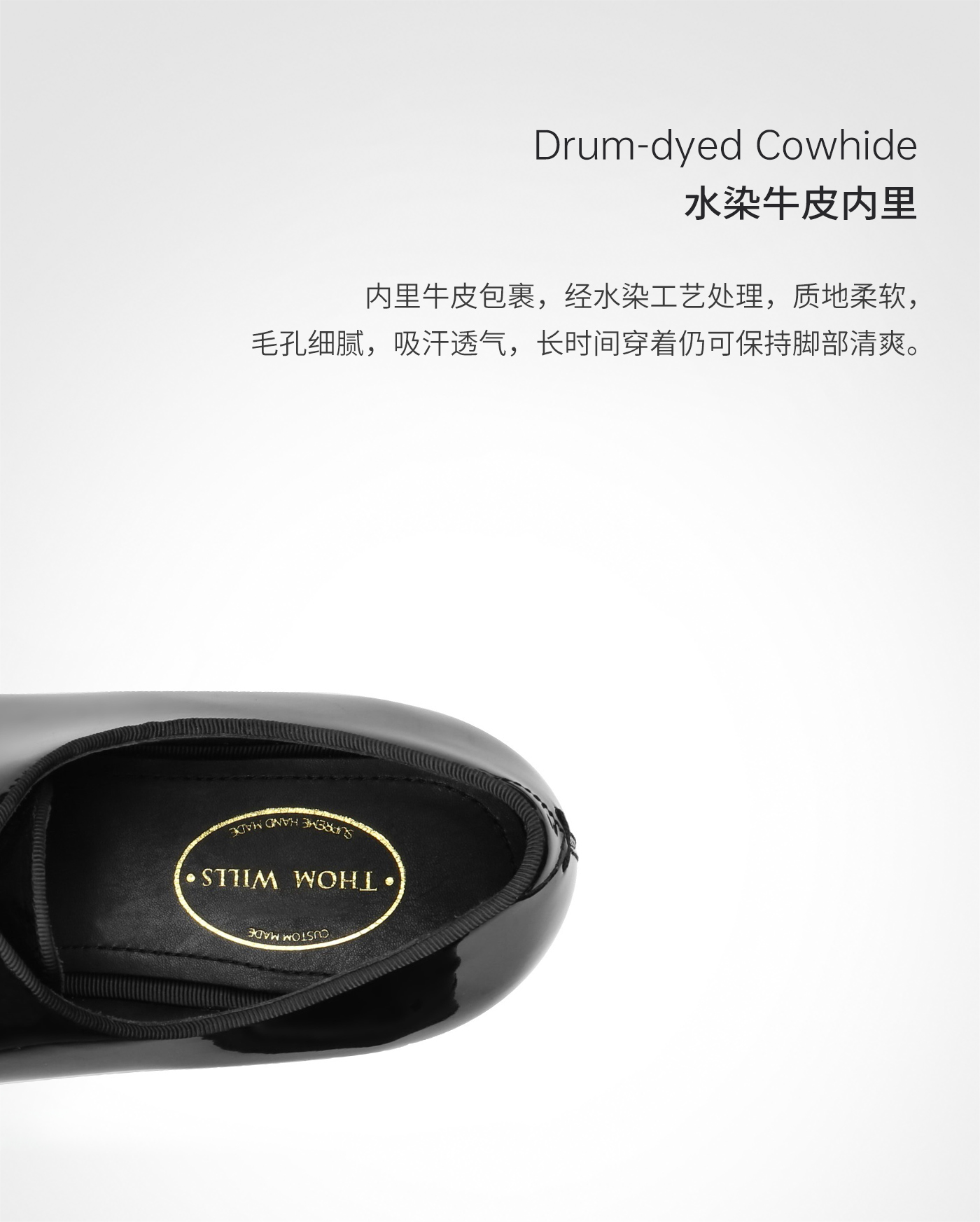 Thomwills Handmade Genuine Leather Men's Shoes Business Formal Leather Shoes Men's British Patent Leather One-Piece Oxford Shoes