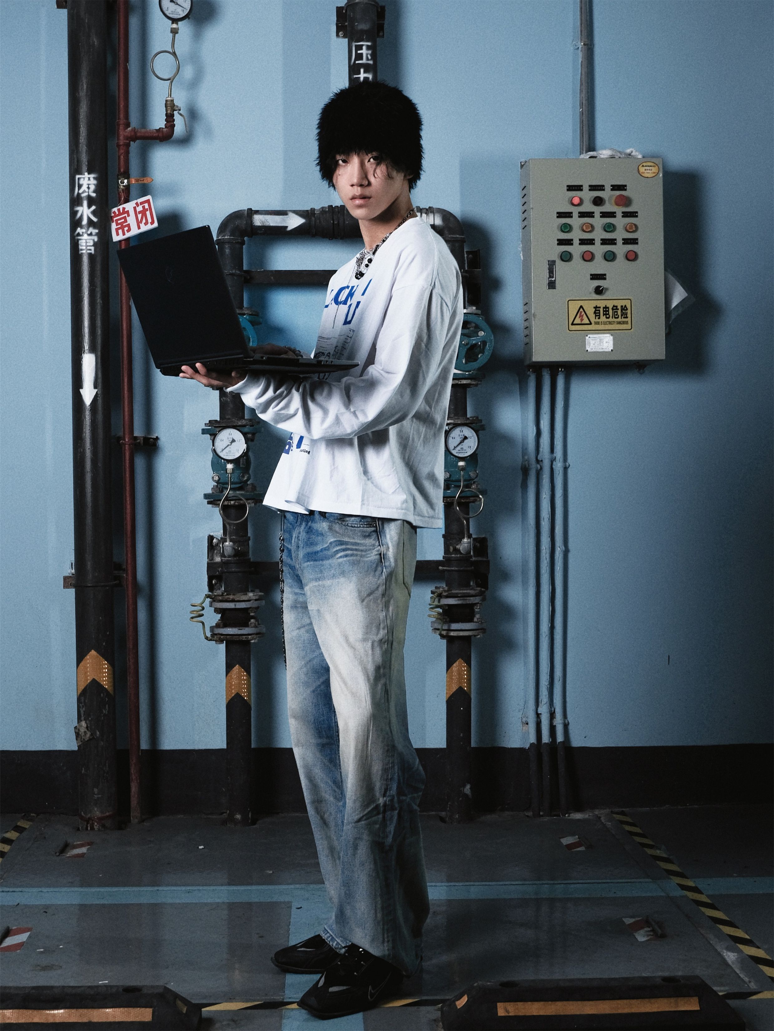 Tbr Cow King Series 05 A-Line Washed Blue Straight-Leg Loose Cleanfit Jeans