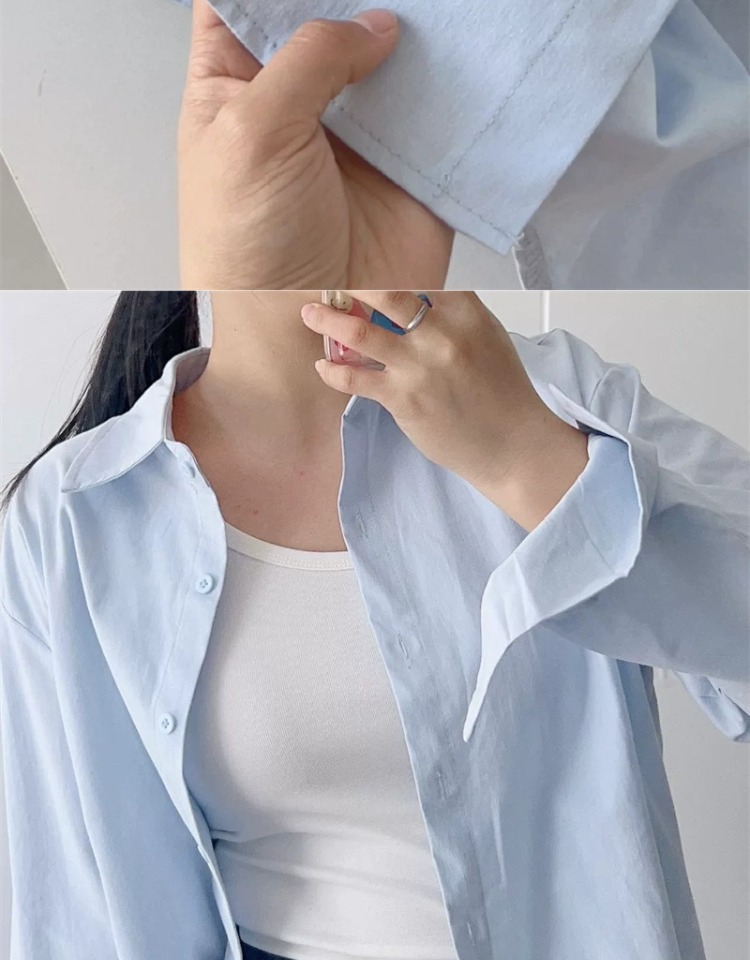 La Chapelle Light Blue Long-Sleeved Shirt for Women, Autumn and Winter 2025 New Popular Loose Shirt Top Cardigan Jacket