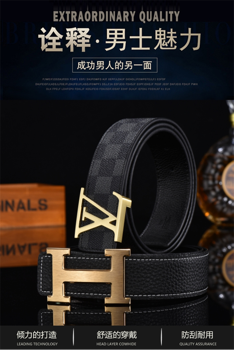 Men's Genuine Leather Belt for Young People, Cowhide Letter Luxury Business Stylish Trendy Versatile Belt