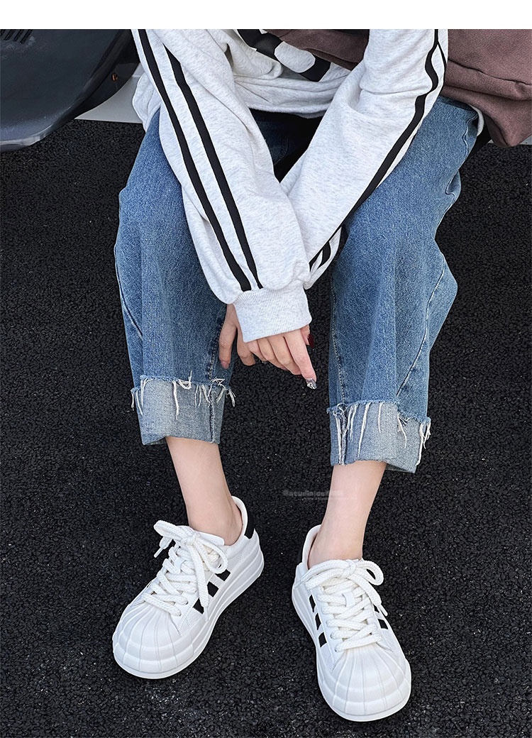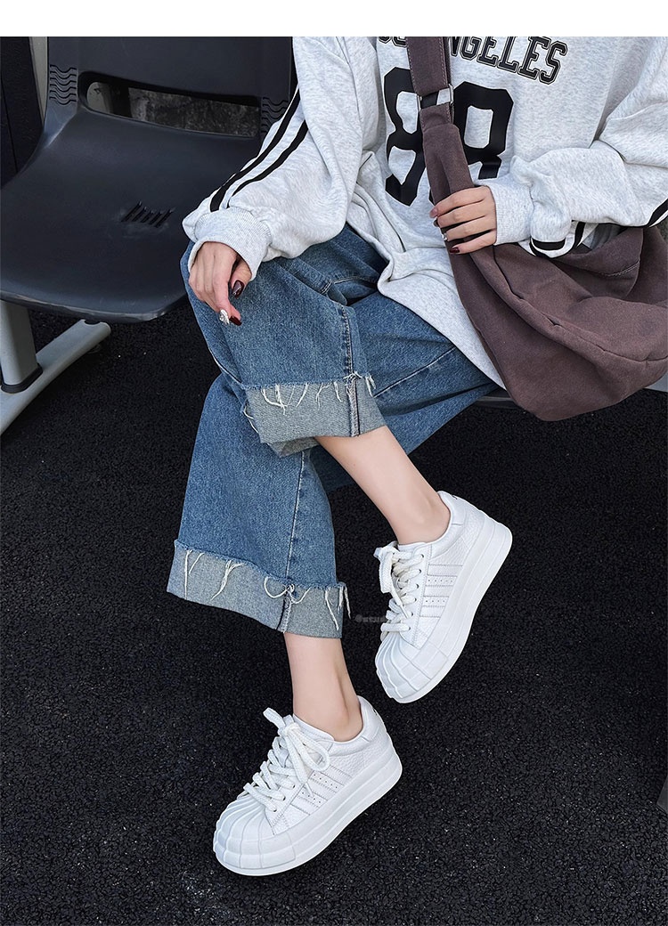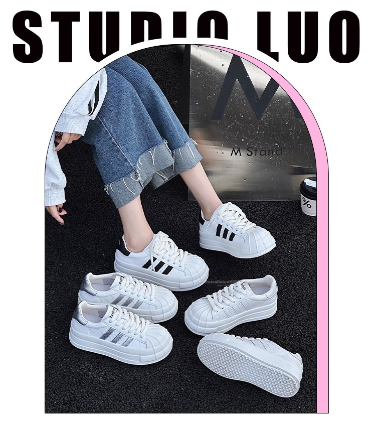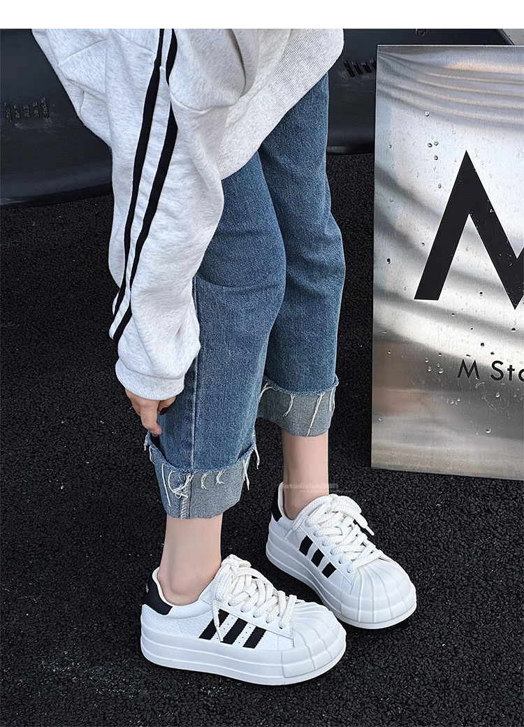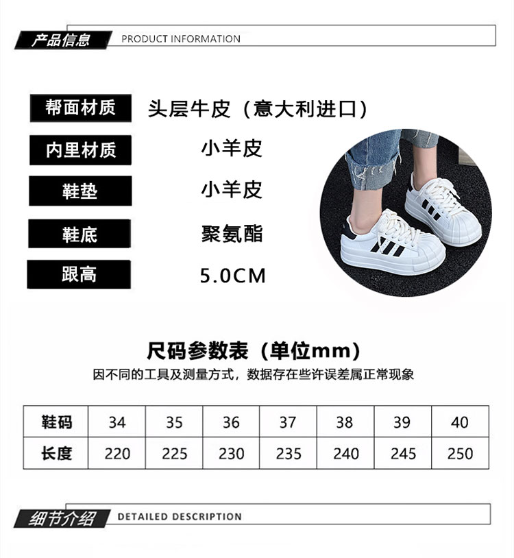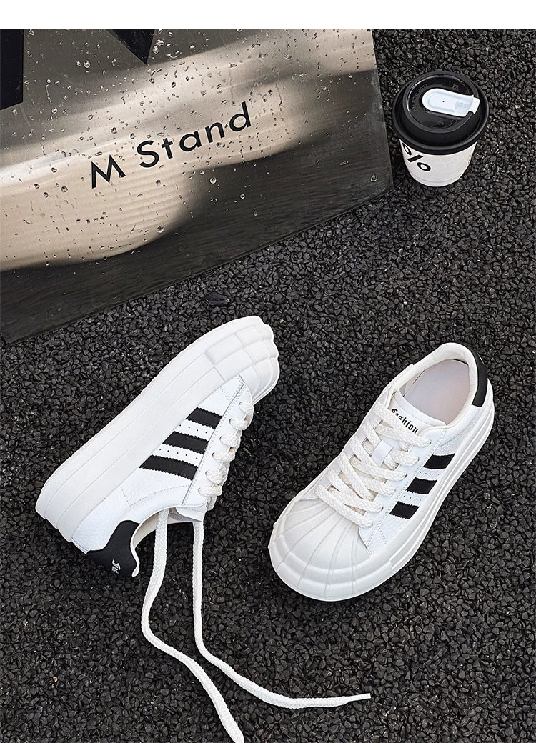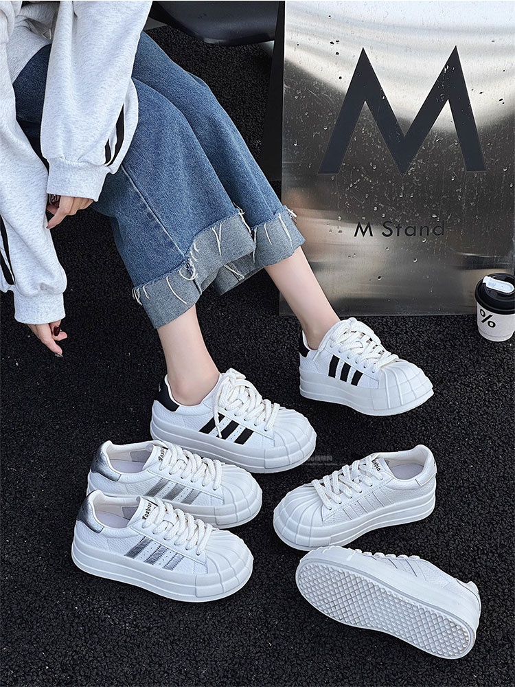 Hong Kong Shell-Toe Genuine Leather Thick-Soled White Sneakers for Women, 2025 Spring/Summer New Popular Style, Height-Increasing, Suitable for Wide-Leg Pants, Trendy Sneakers