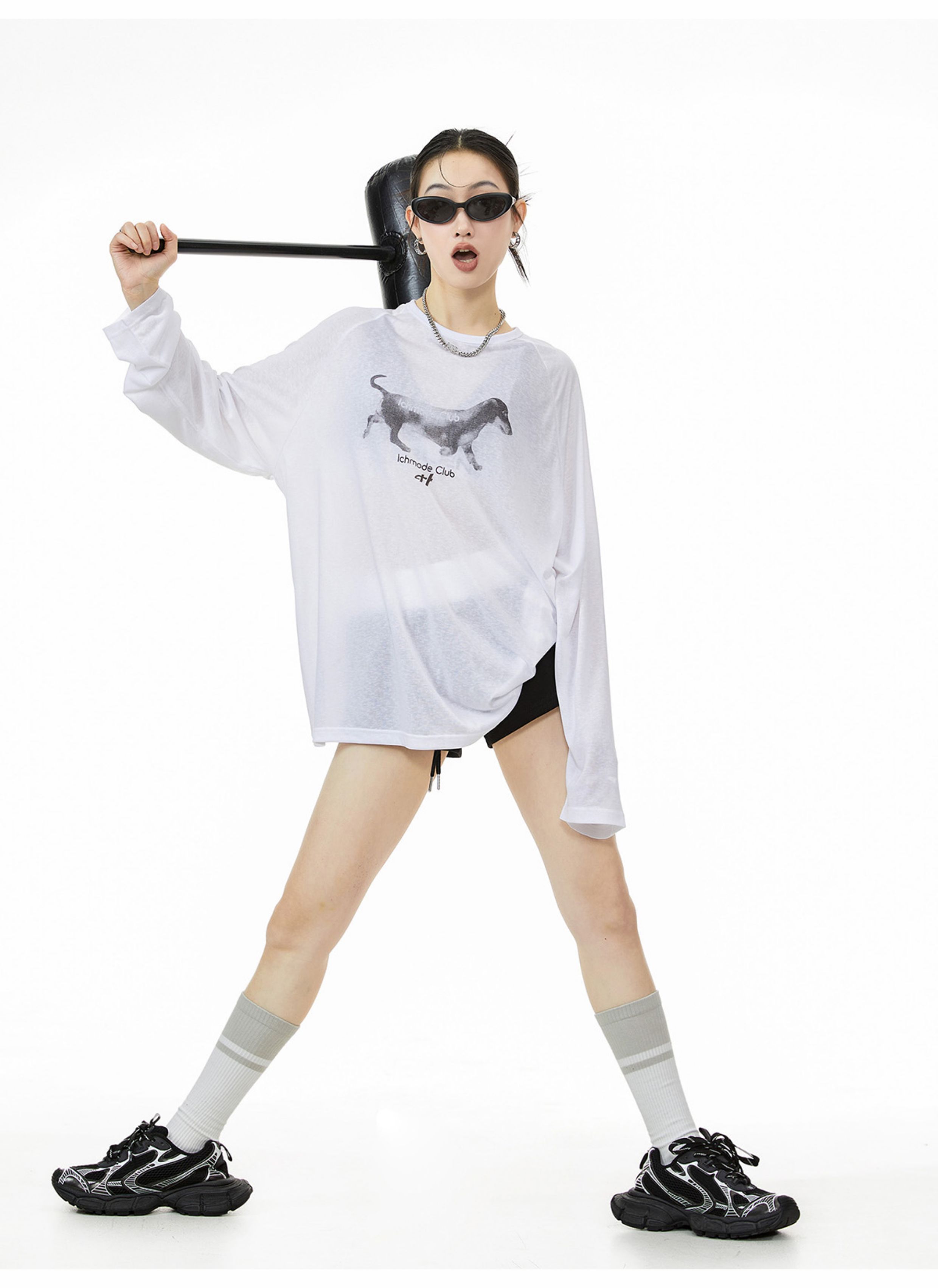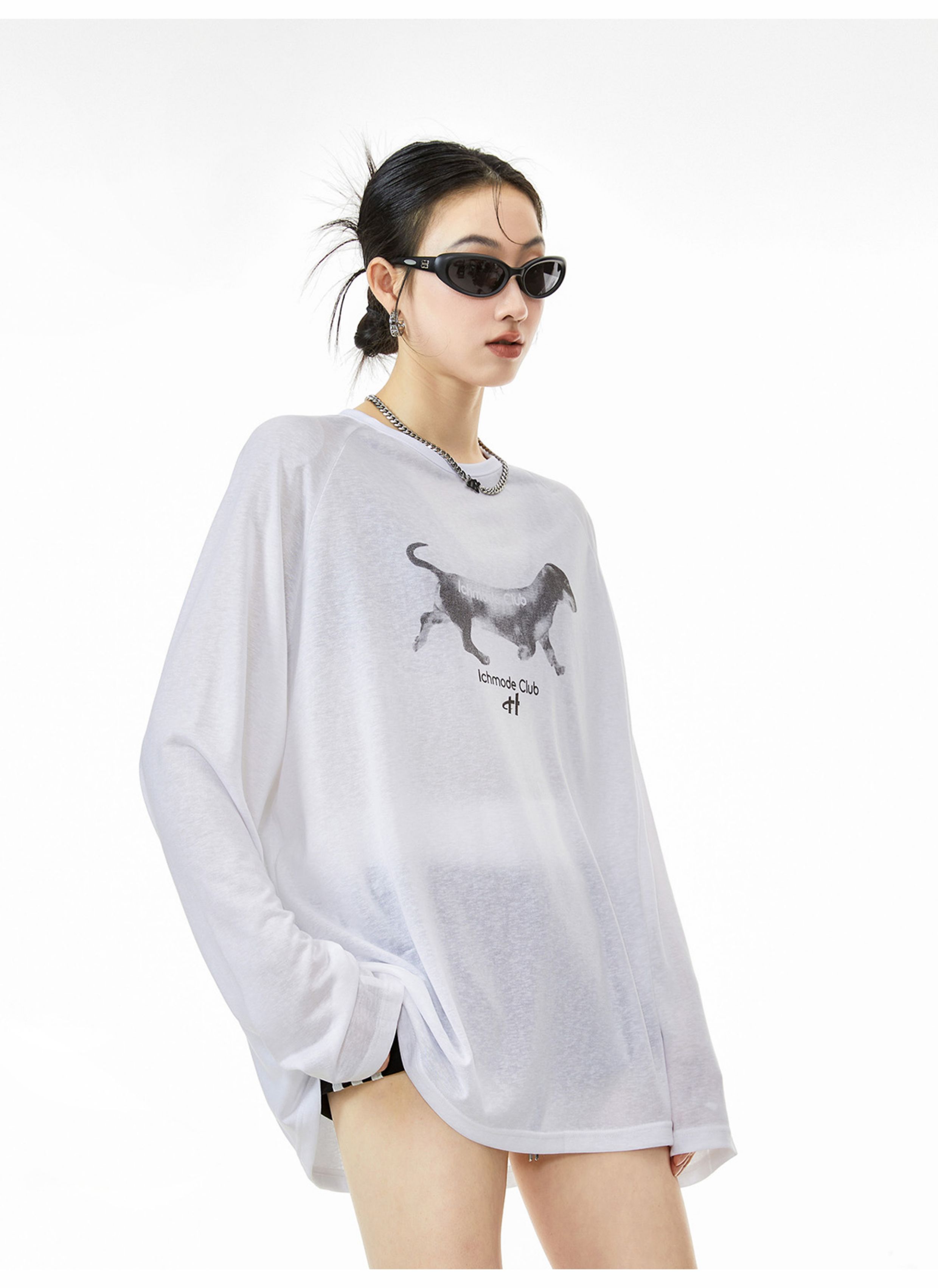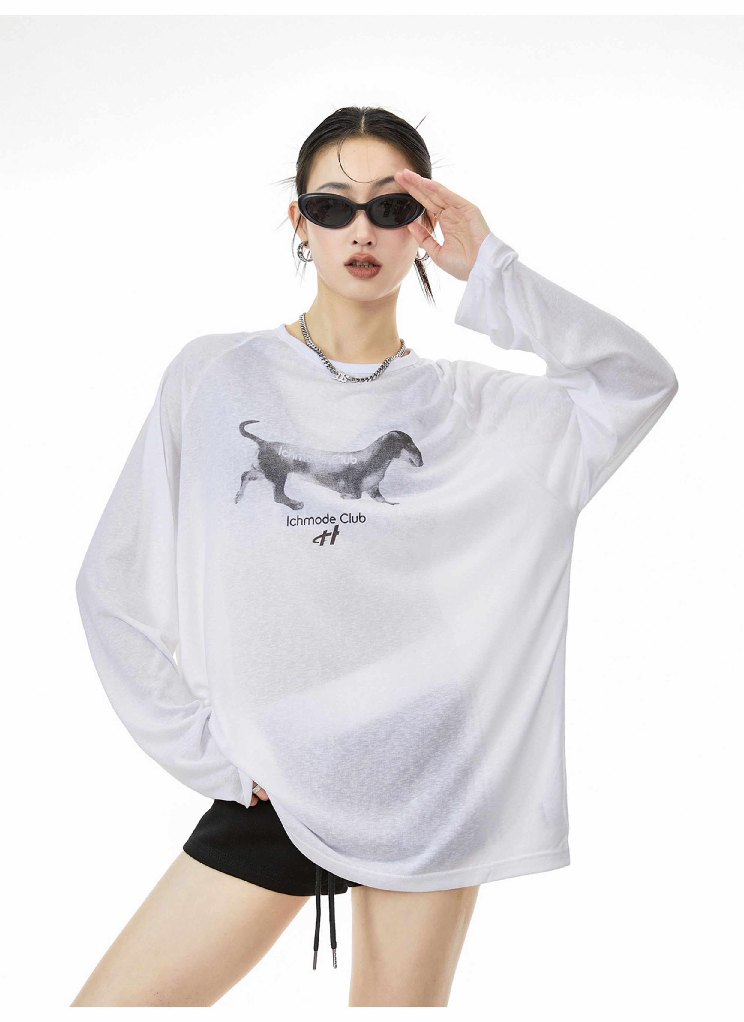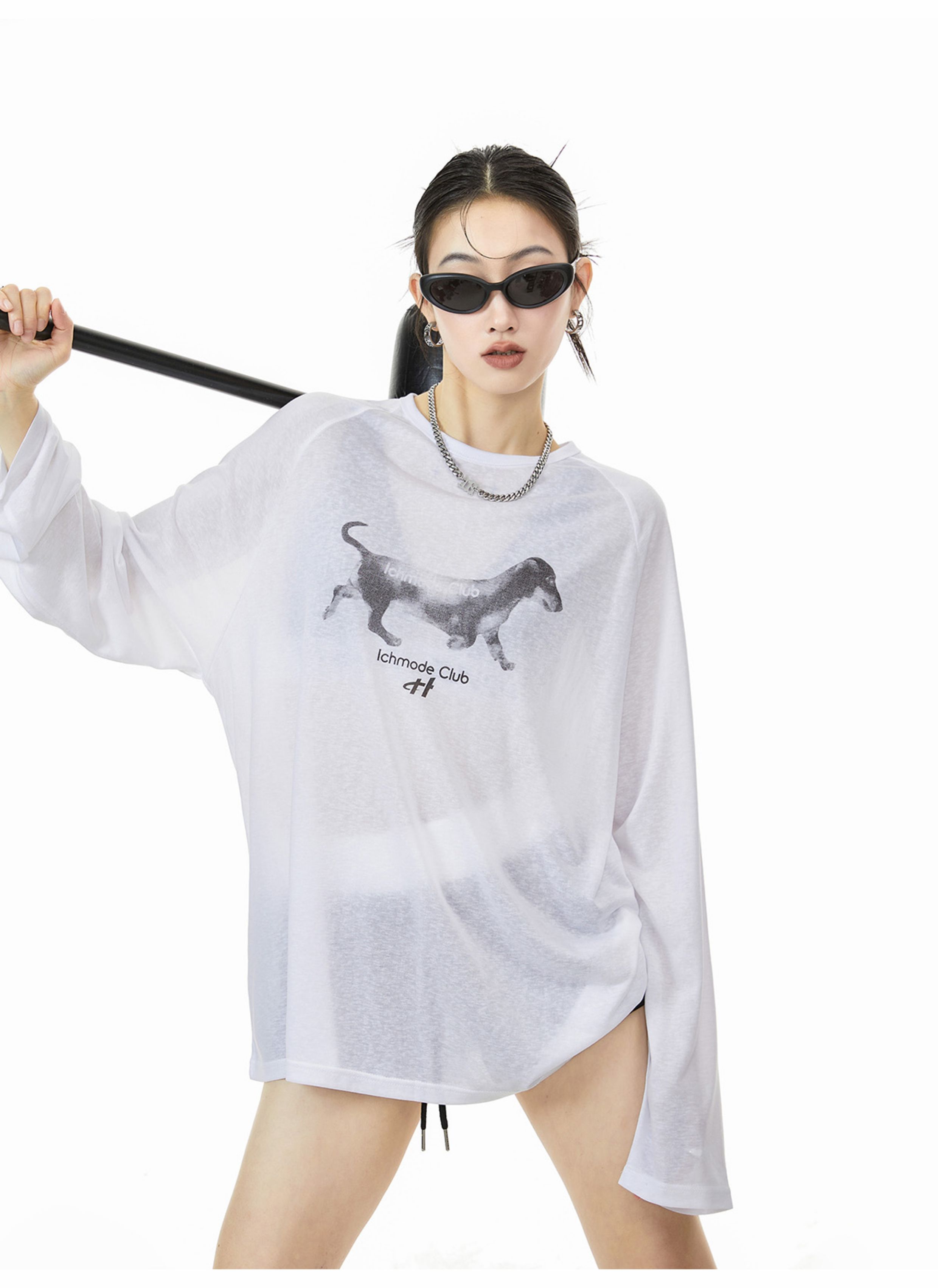 Ich Mode American-Style Physical Sunscreen Thin Cool Cover-Up Shirt for Women, New Summer Loose Long-Sleeved T-Shirt Top