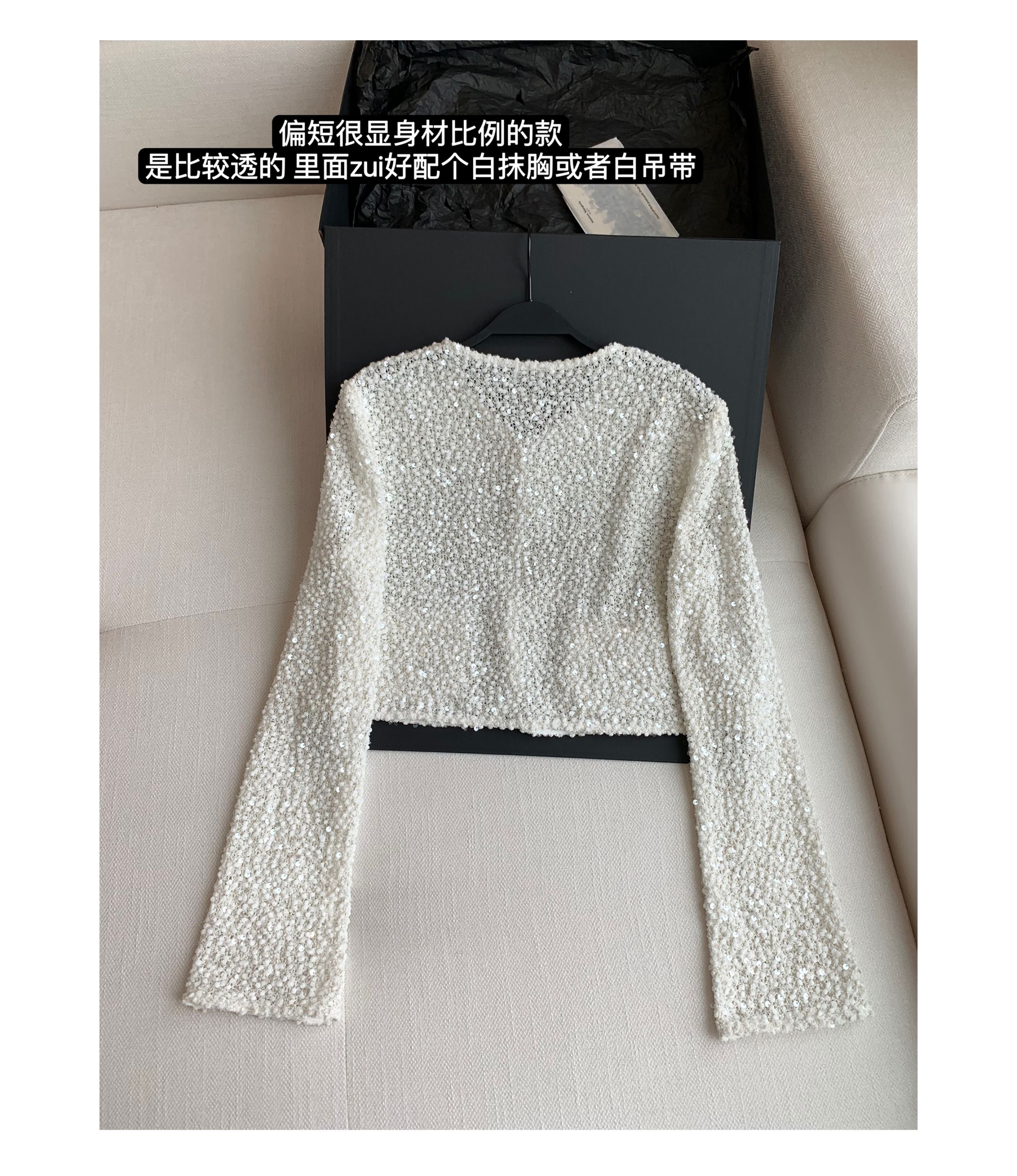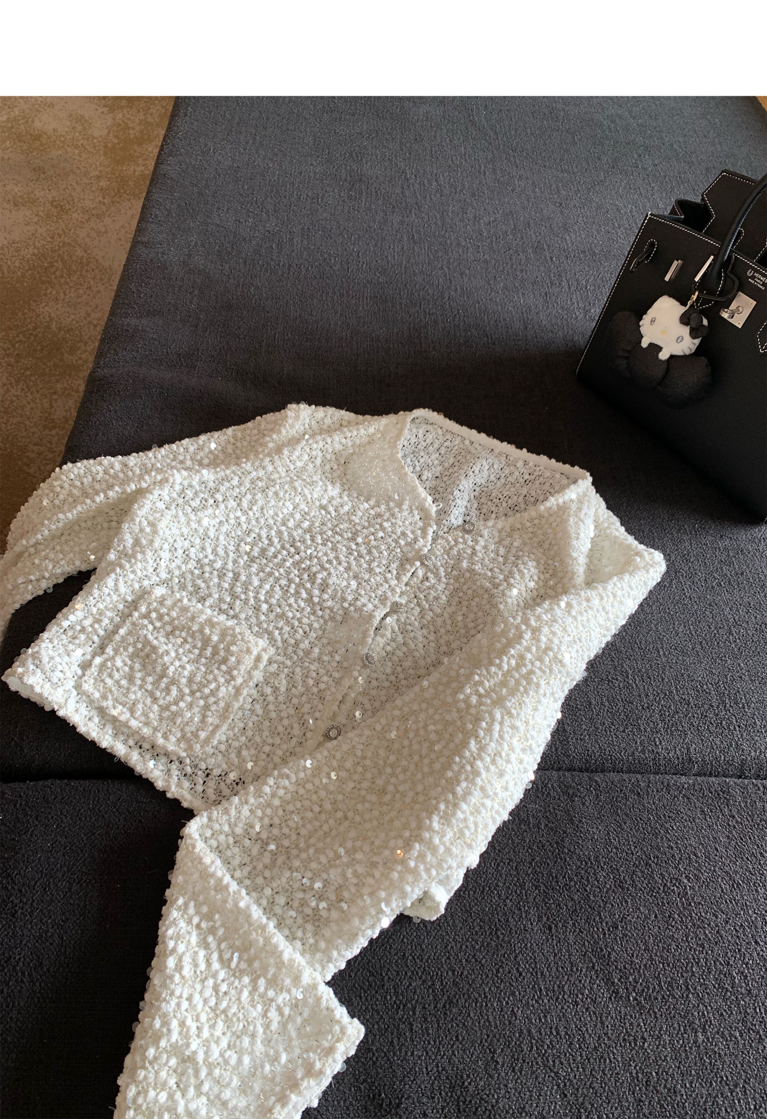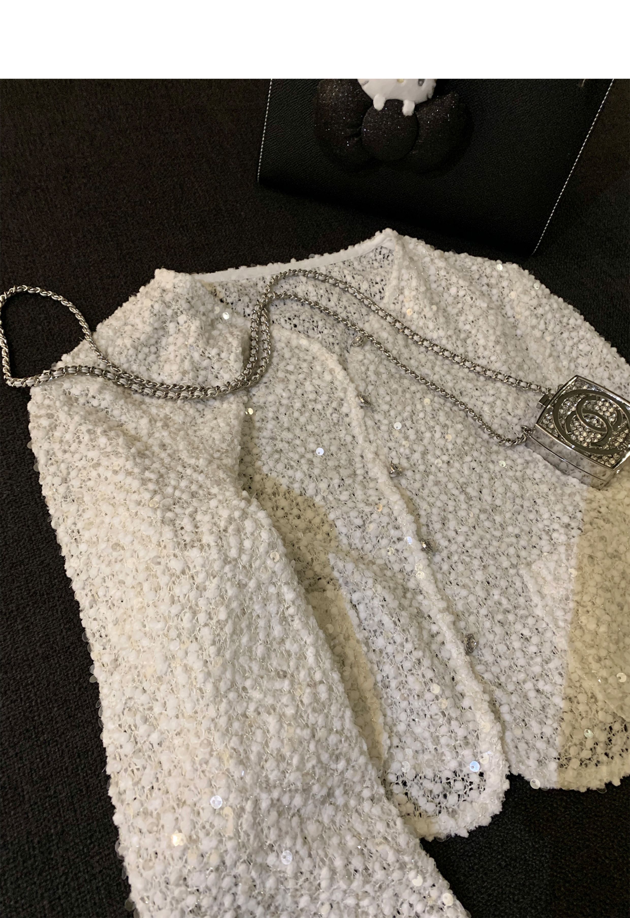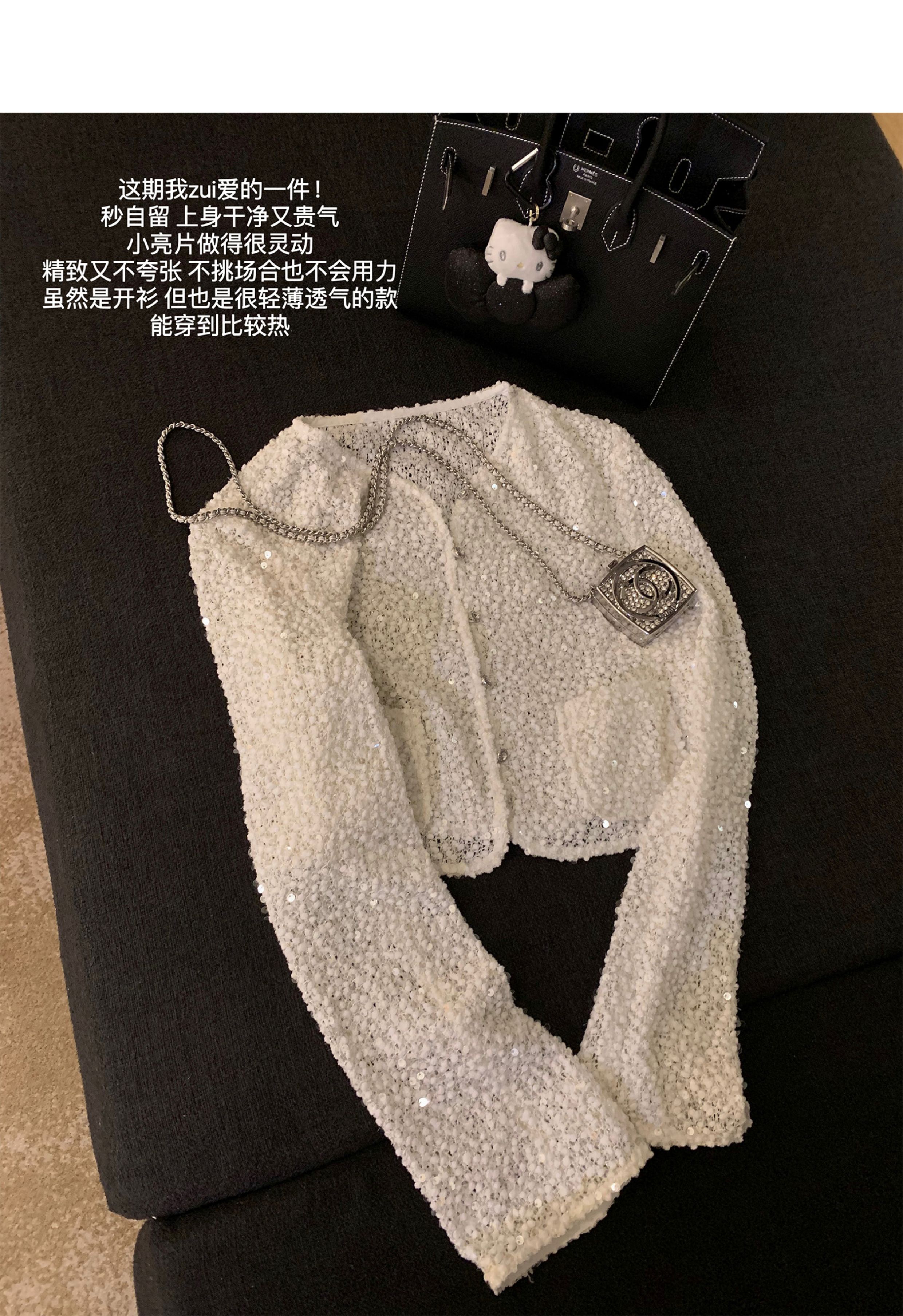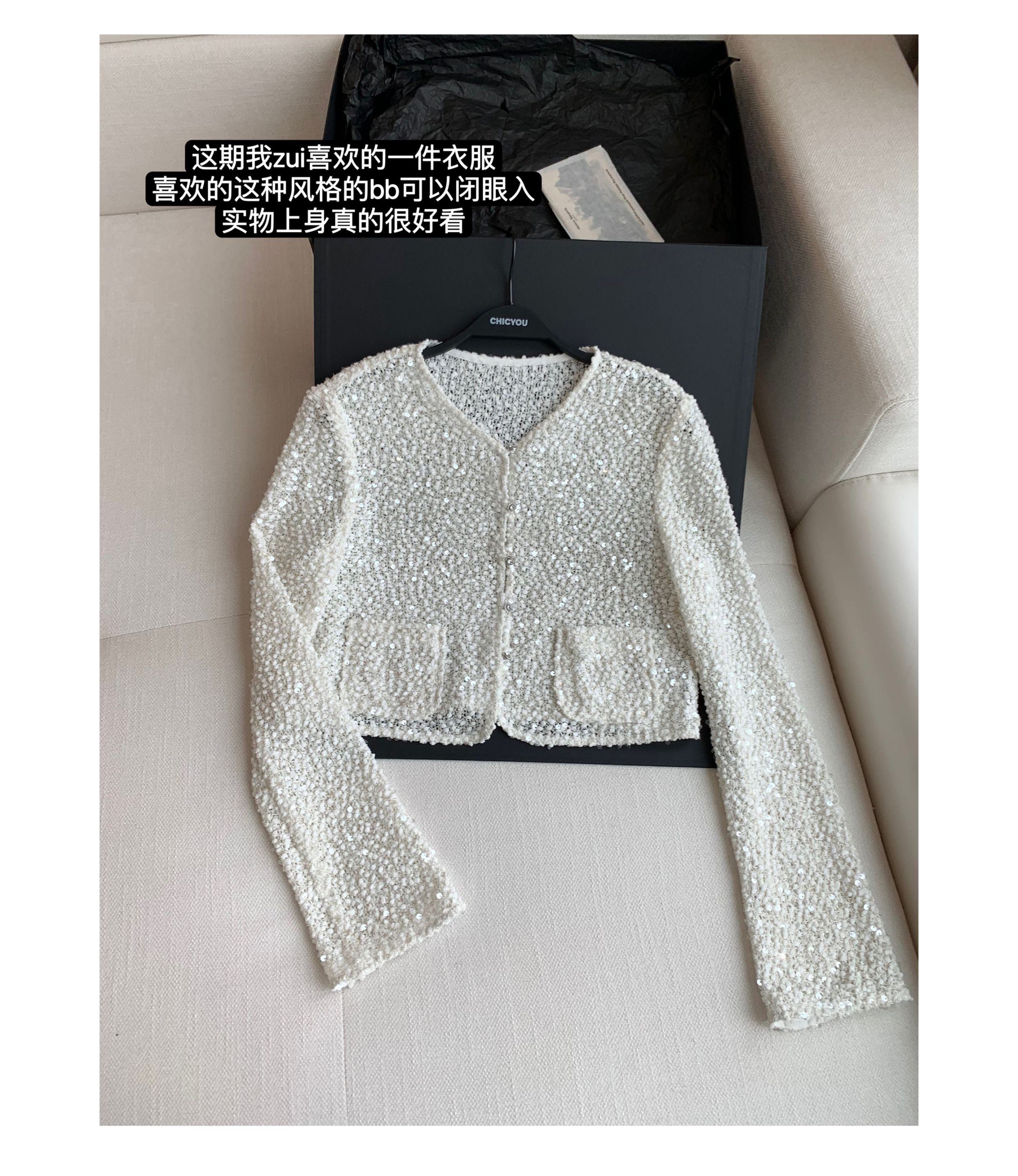 [in Stock] Chicyou White Transparent Sequin Chanel-Style Top, Lightweight, Breathable, Slimming, Short Cardigan