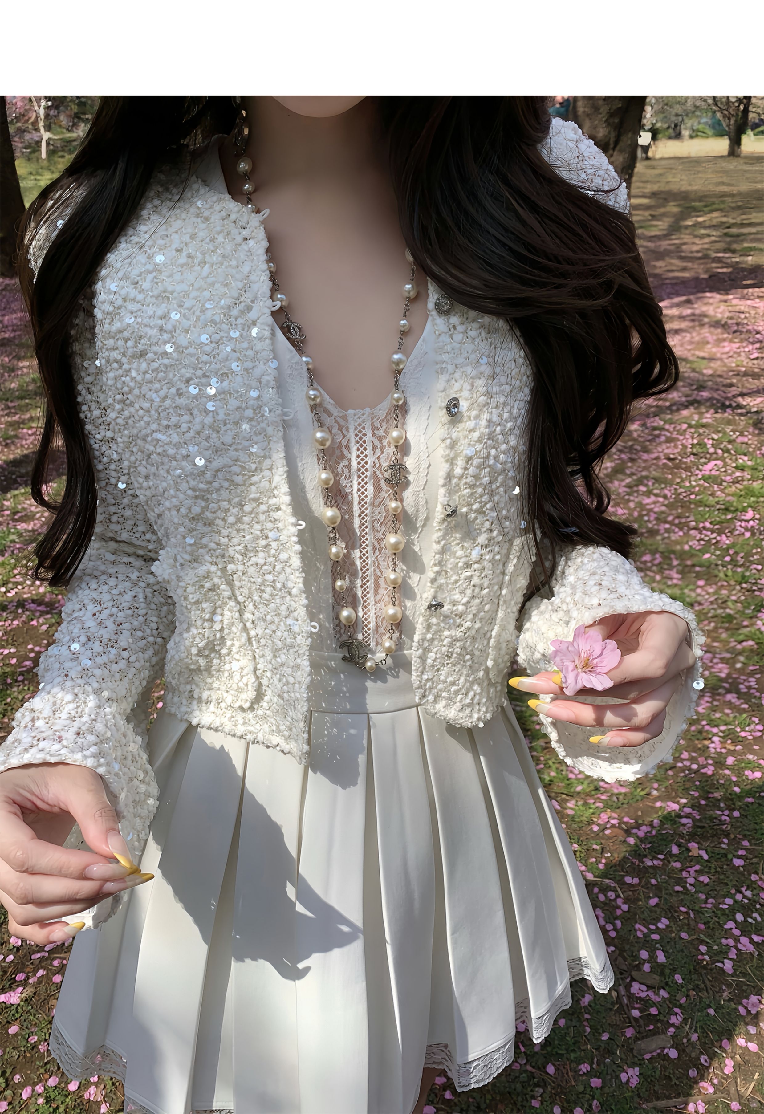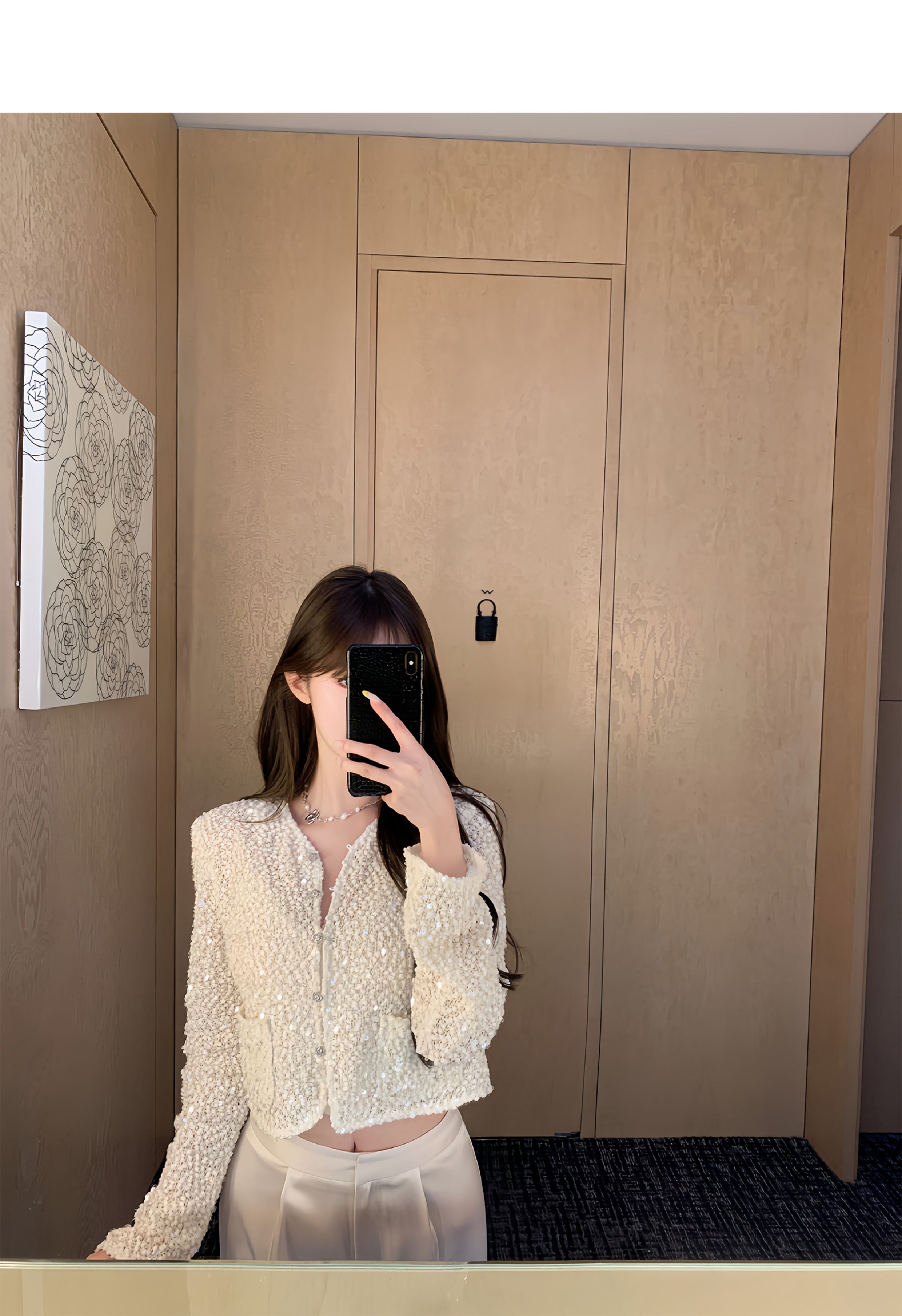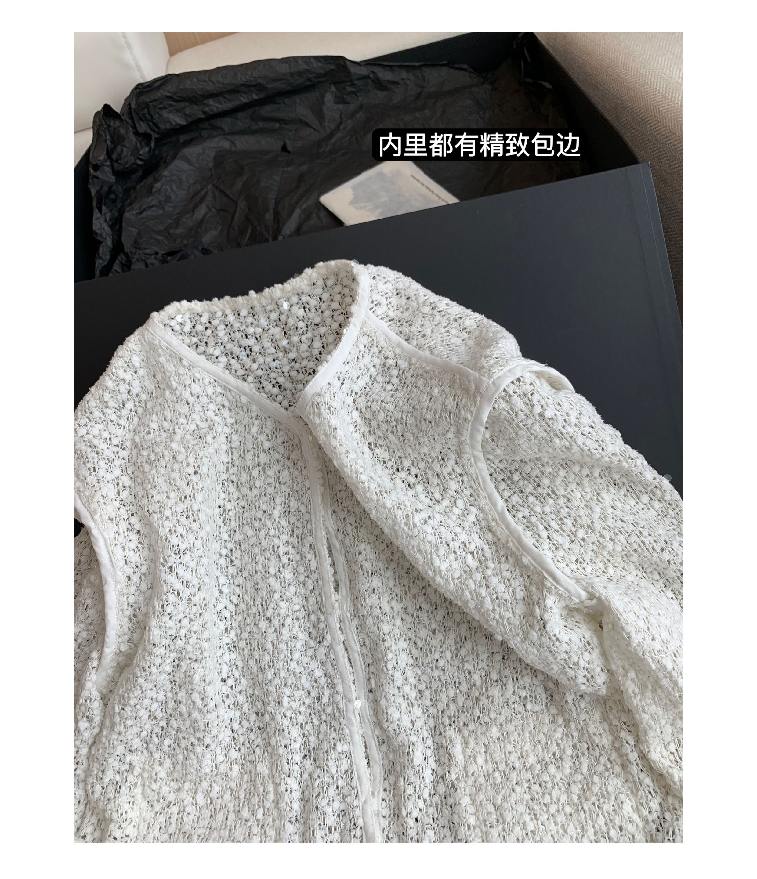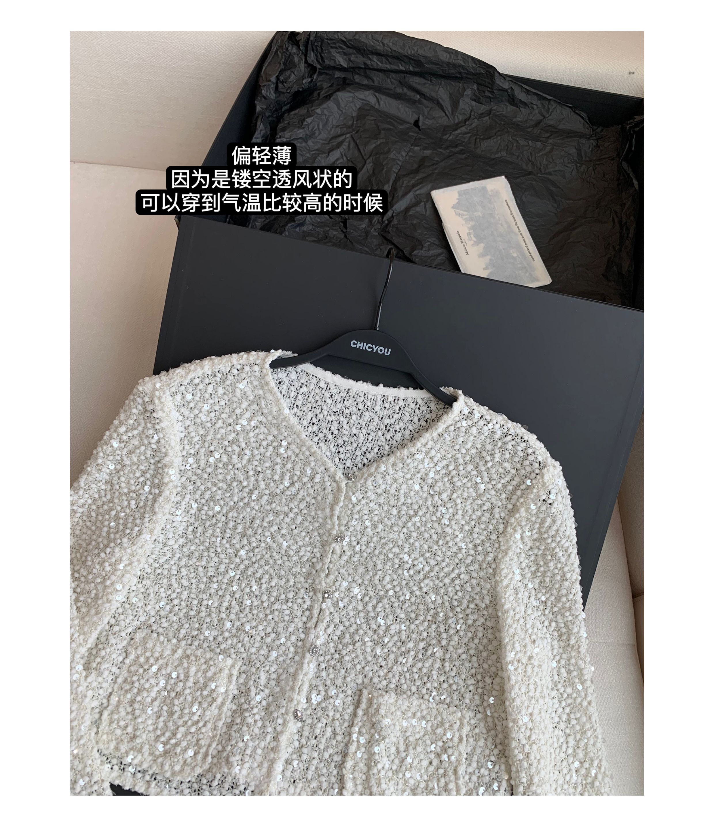 [in Stock] Chicyou White Transparent Sequin Chanel-Style Top, Lightweight, Breathable, Slimming, Short Cardigan