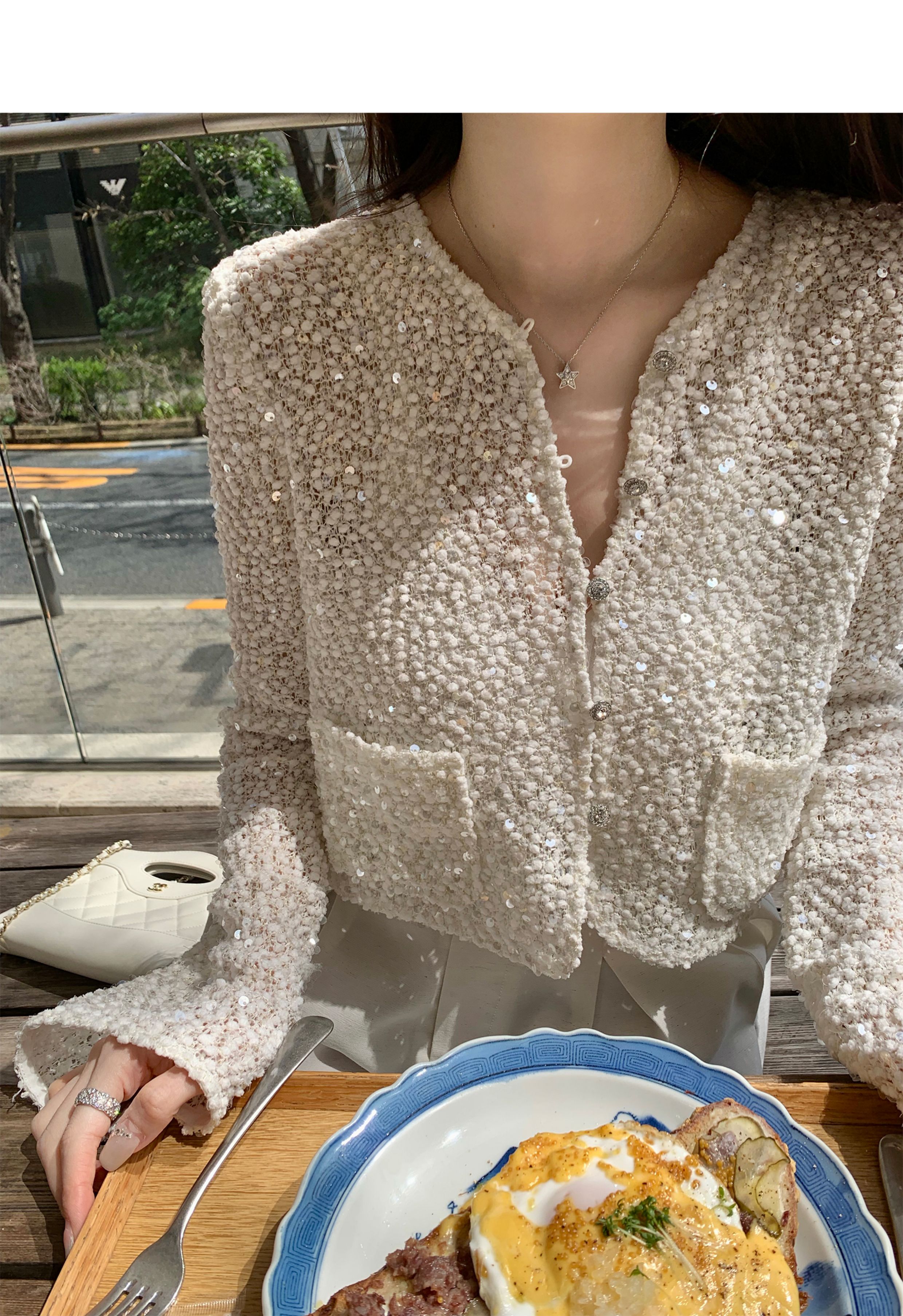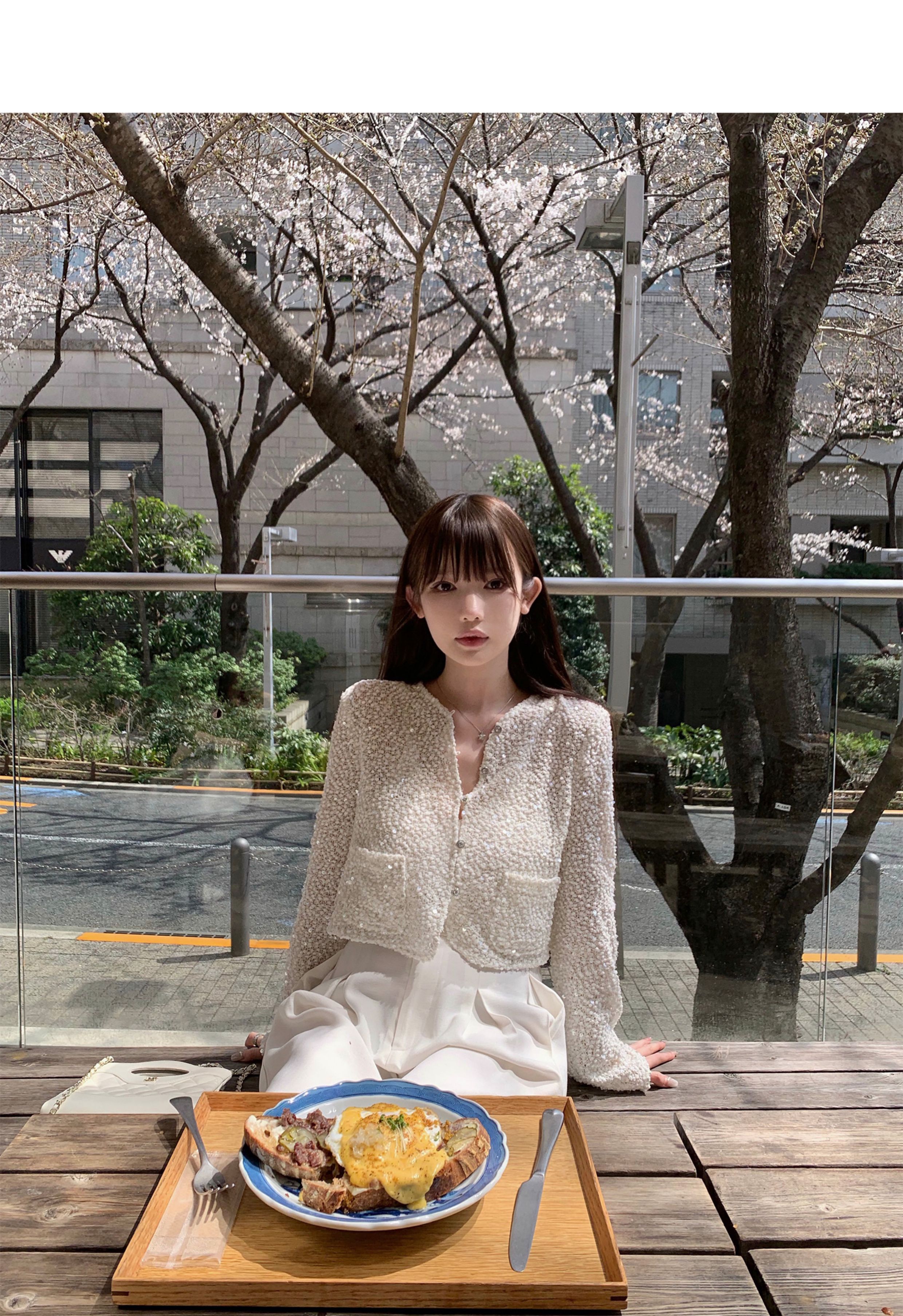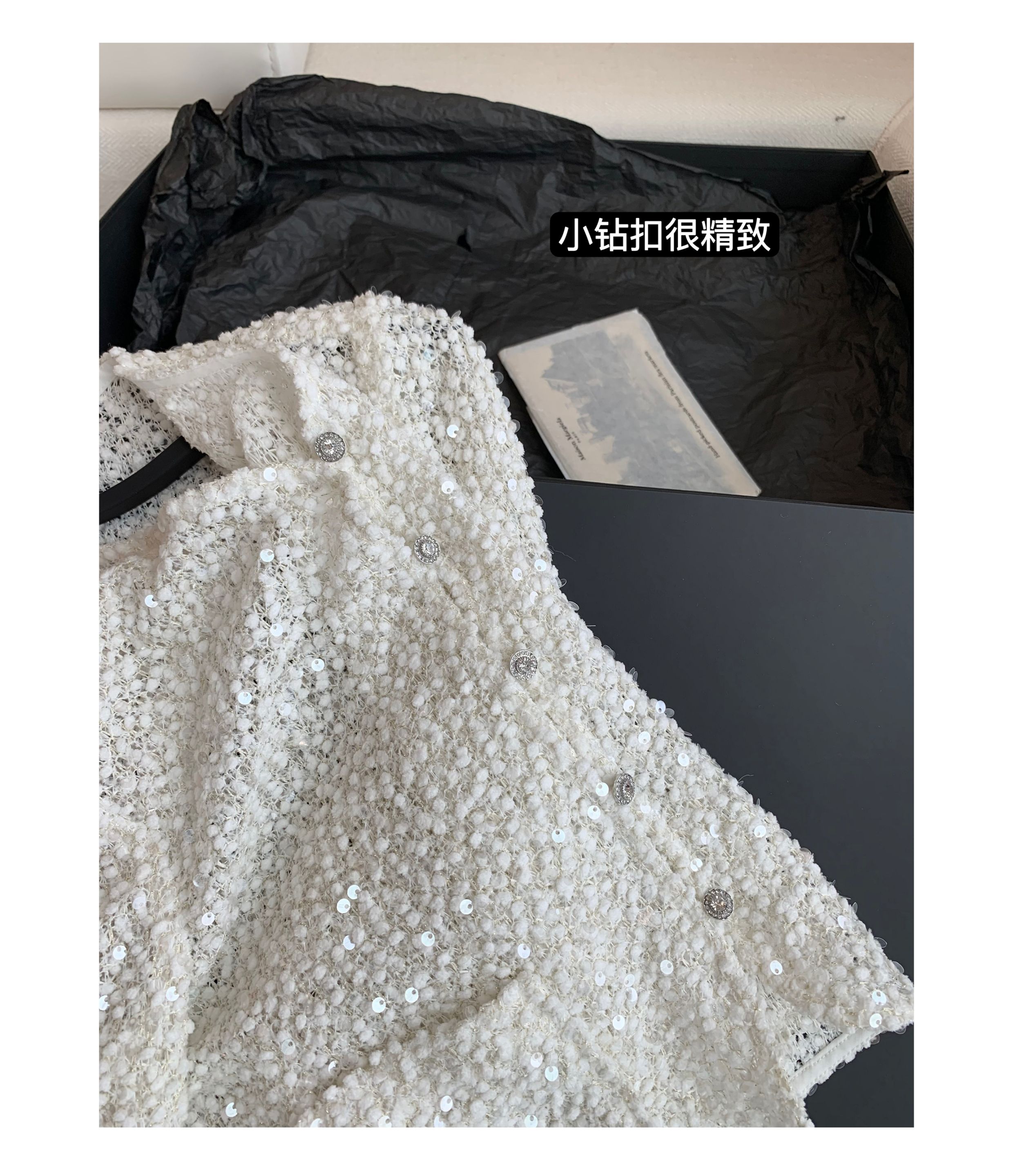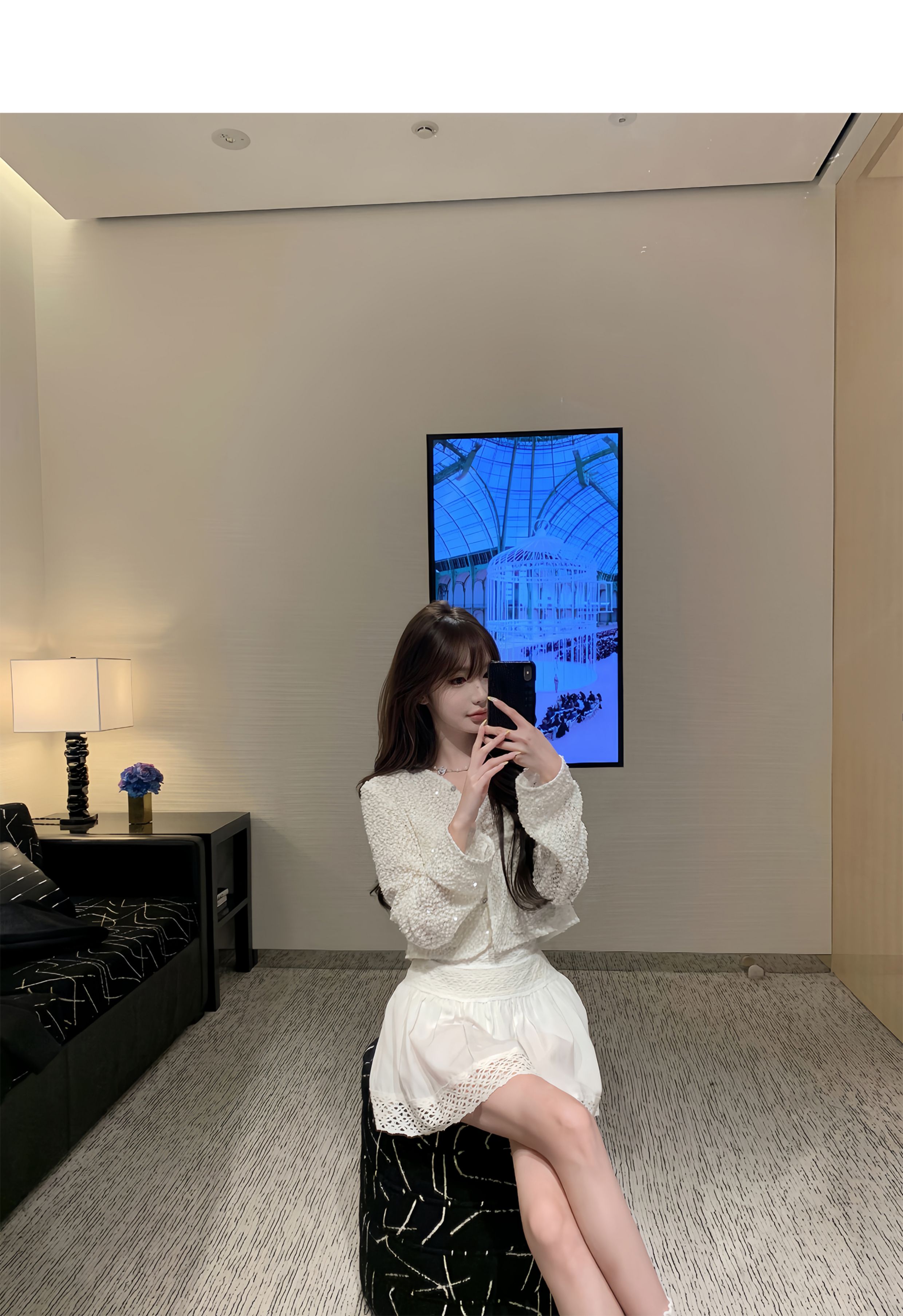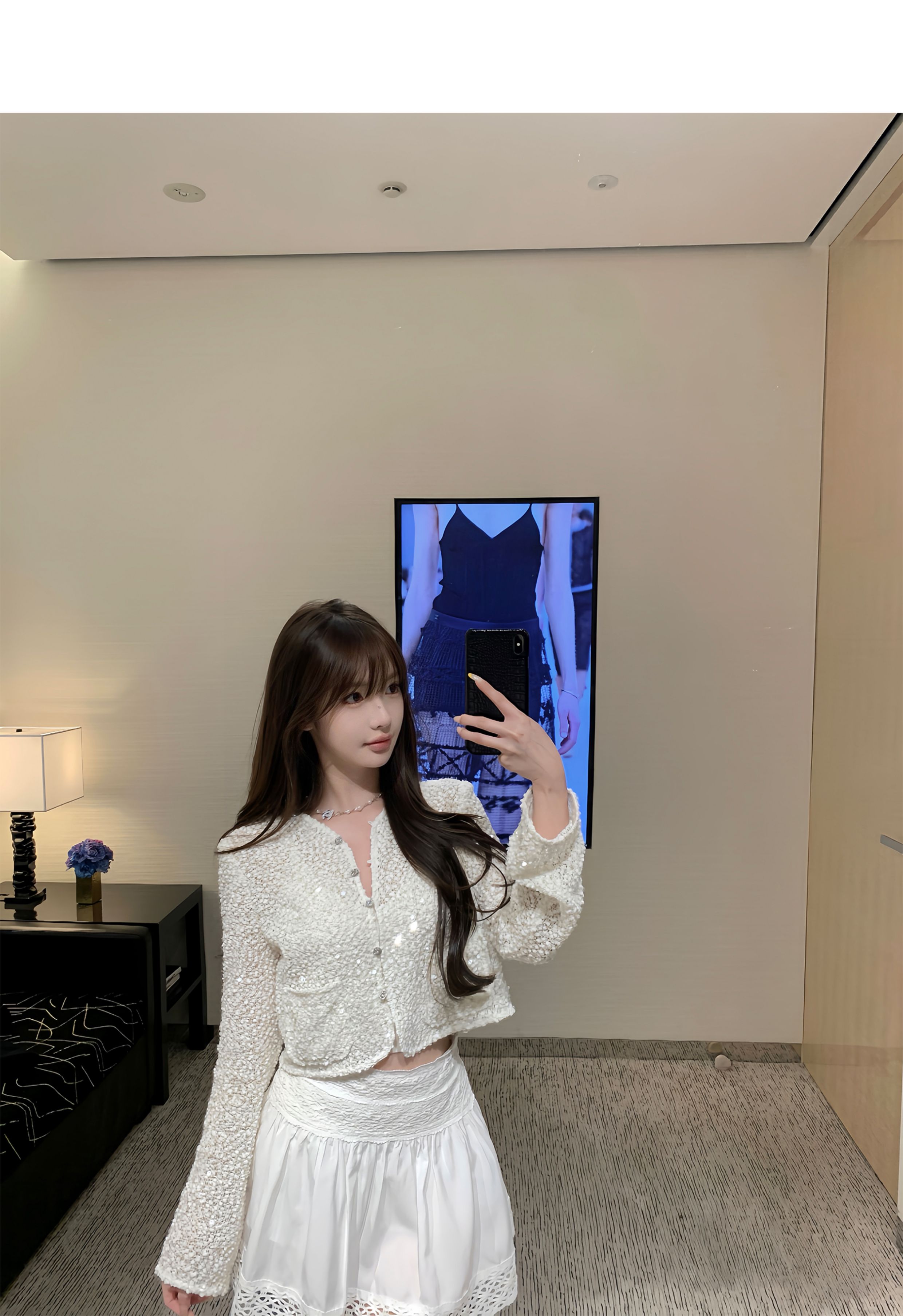 [in Stock] Chicyou White Transparent Sequin Chanel-Style Top, Lightweight, Breathable, Slimming, Short Cardigan